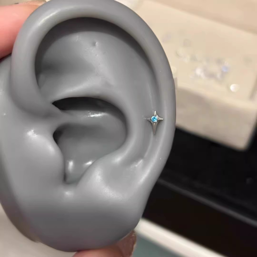 F136钛合金唇钉替换头内螺旋爆闪四芒星十字外牙配件耳骨钉埋钉头