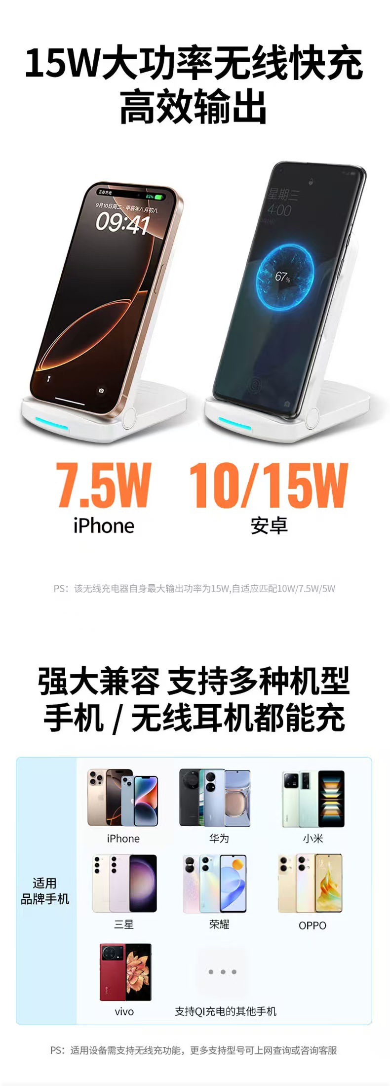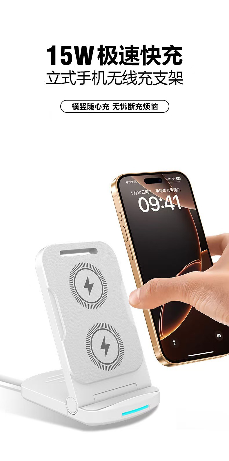 新款手机支架折叠无线快充15W办公桌面便携无线充电器工厂直销