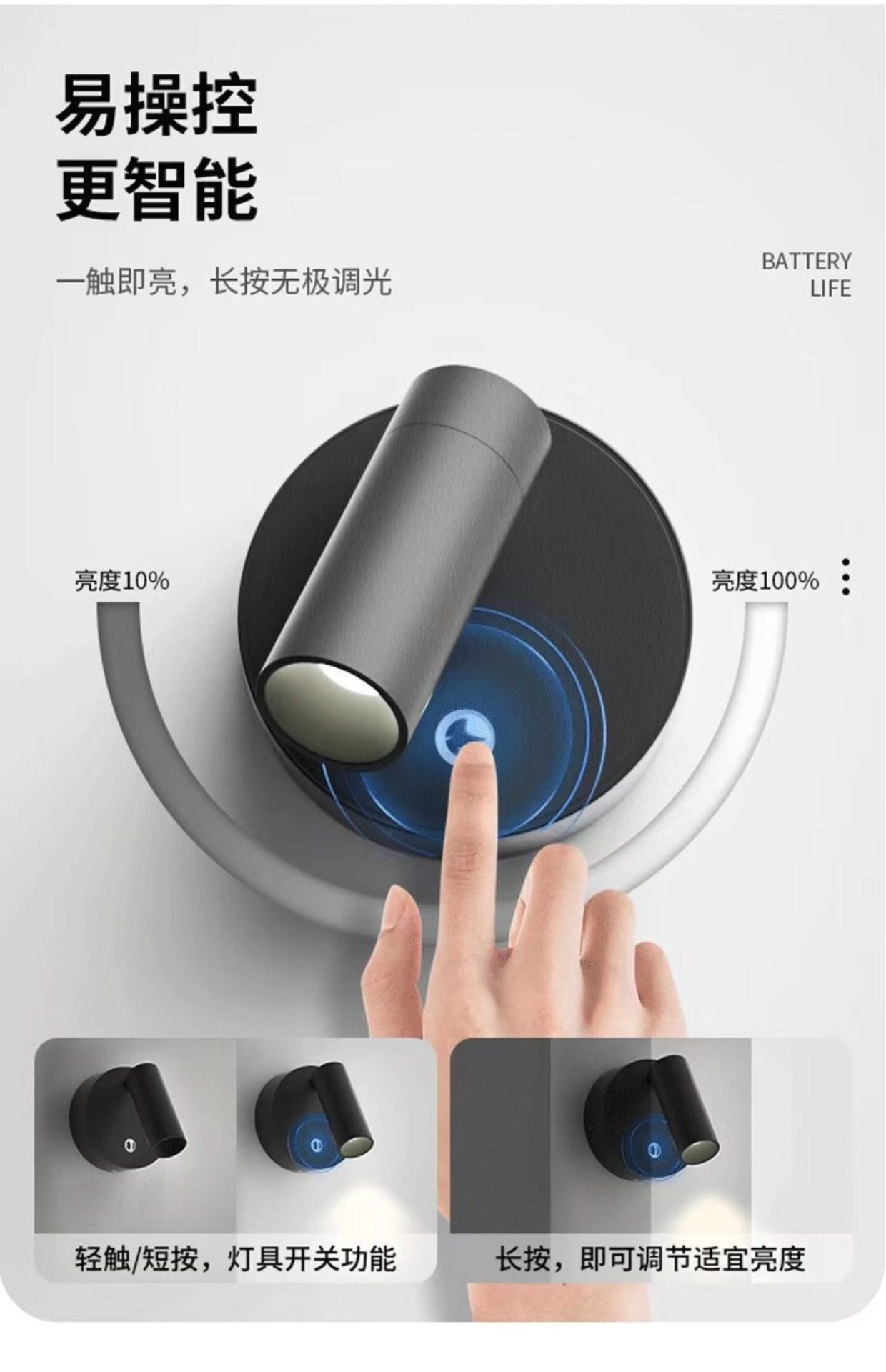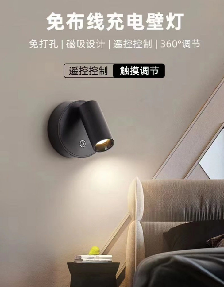 充电磁吸射灯usb无线免打孔触摸过道玄关山丘小夜灯洗墙壁灯