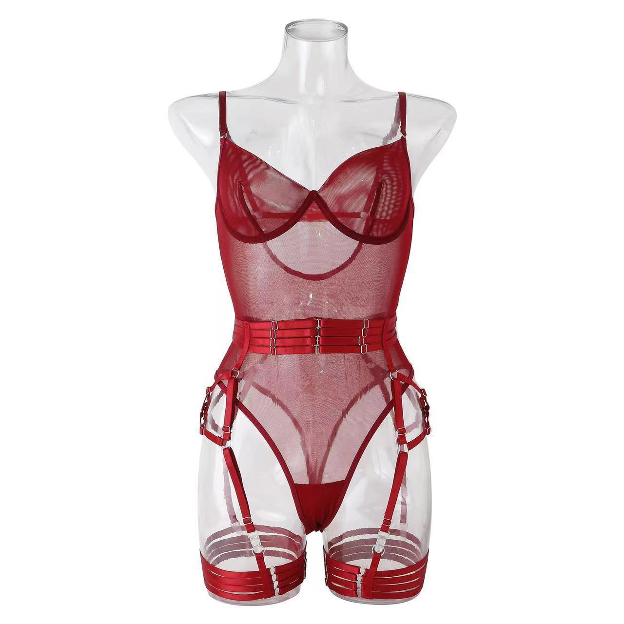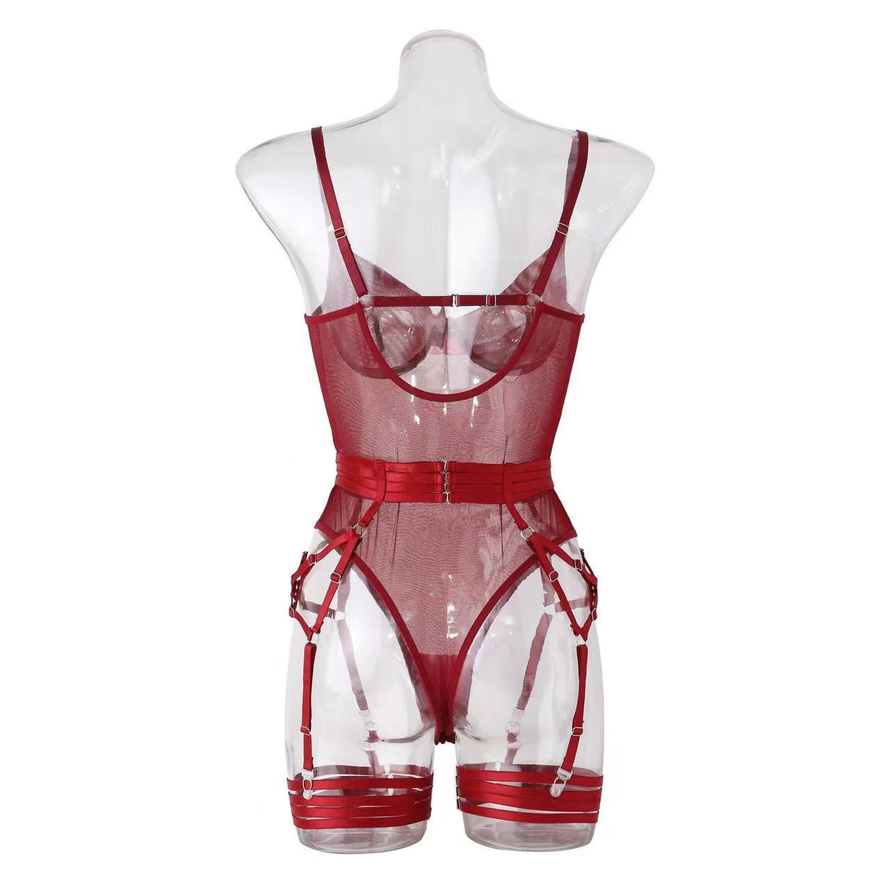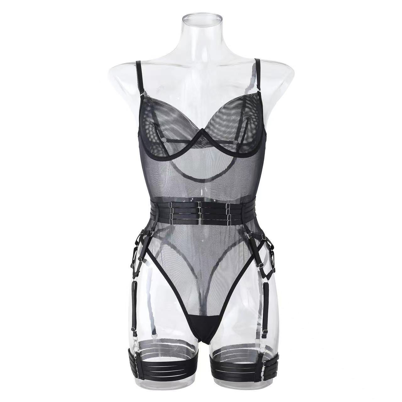 欧美跨境速卖通全托管热销情趣内衣绑带拼接修身带手套三件套现货