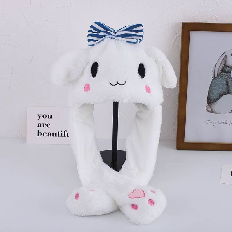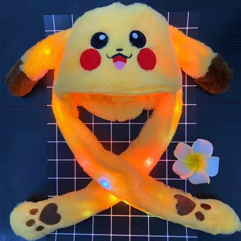 跨境热销抖音发光毛茸茸卡通风清新甜美耳朵会动毛绒帽一捏耳朵会