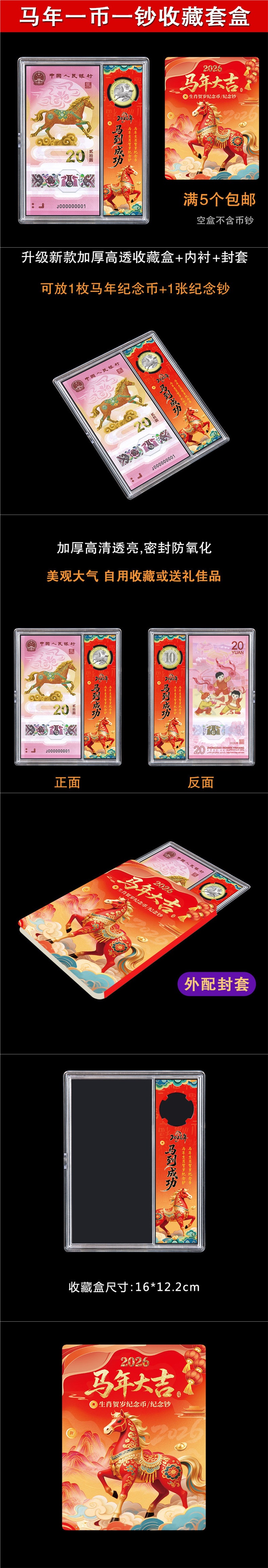 马年纪念钞收藏盒1币1钞生肖纪念币保护盒纸币硬币收纳盒钱币礼盒