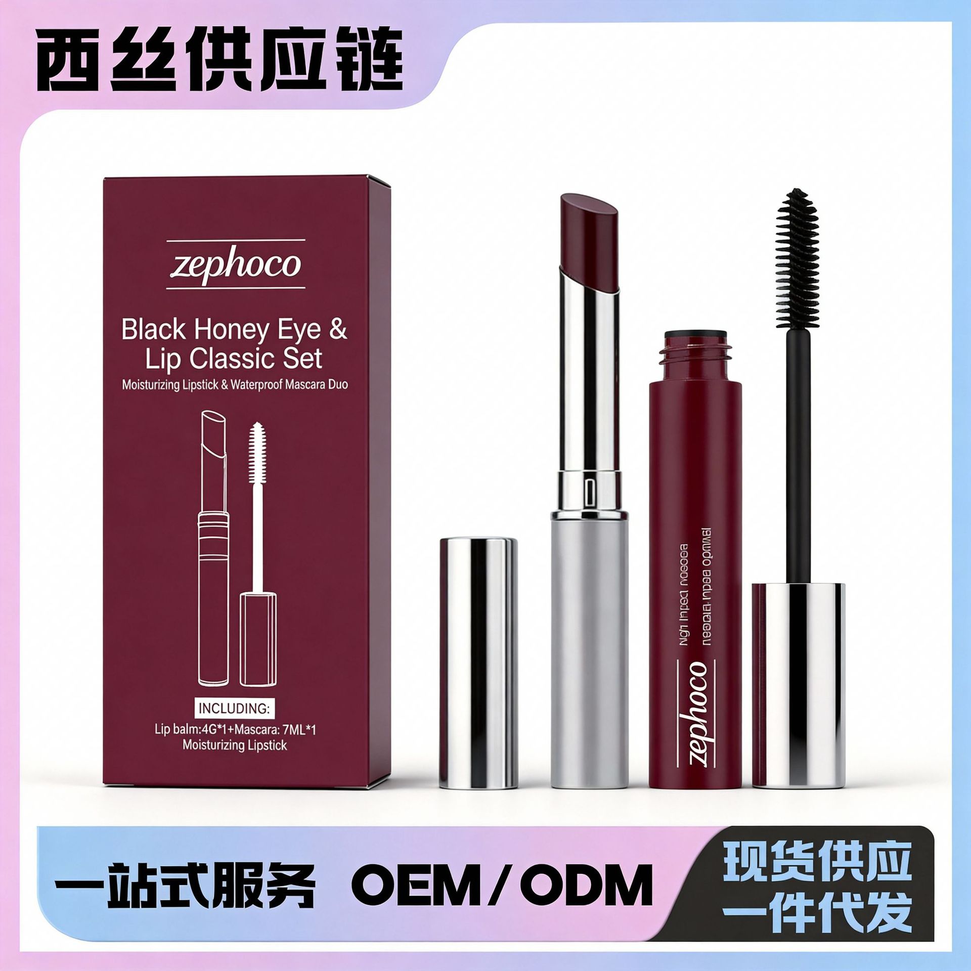 zephoco黑蜜眼唇经典棕色套装 卷翘睫毛膏滋润丝滑唇膏自然显色