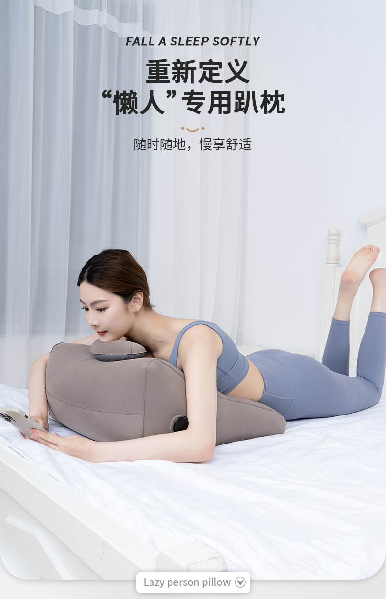 爆款居家休闲装备充气趴睡枕床上玩手机看书舒适神器充气靠枕腿垫