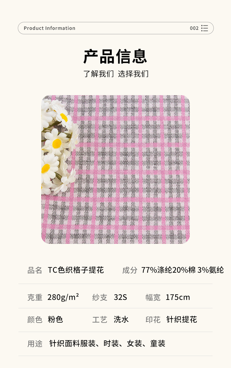 280g经典格子千鸟纹针织面料TC混纺色织提花布女装童装连衣裙布料,批发价,价格:45,厂家直销,280g经典格子千鸟纹针织面料TC混纺色织提花布女装童装连衣裙布料,免费拿样。