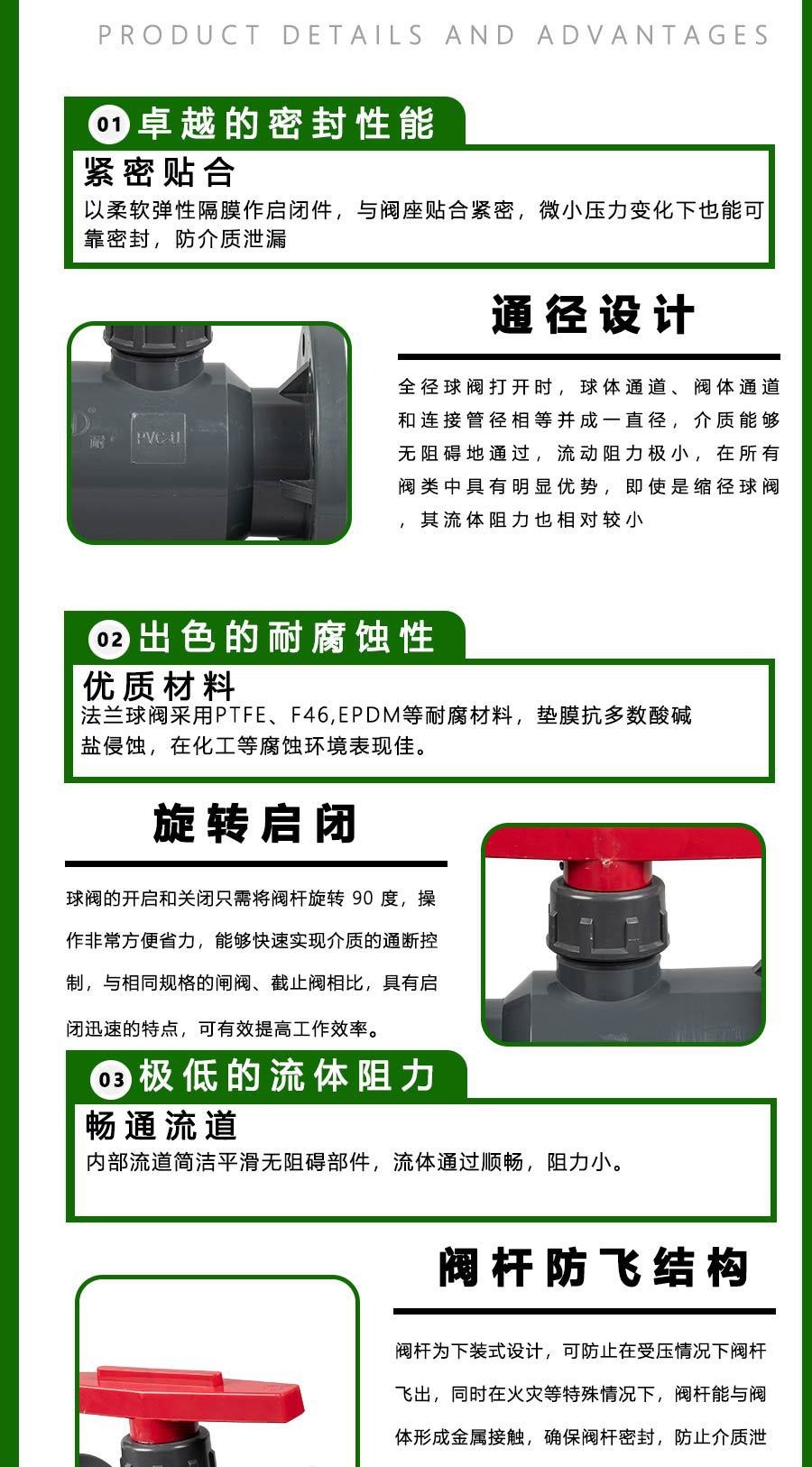 UPVC法兰球阀塑料一体式法兰阀门耐酸碱耐腐蚀化工级聚丙烯球阀