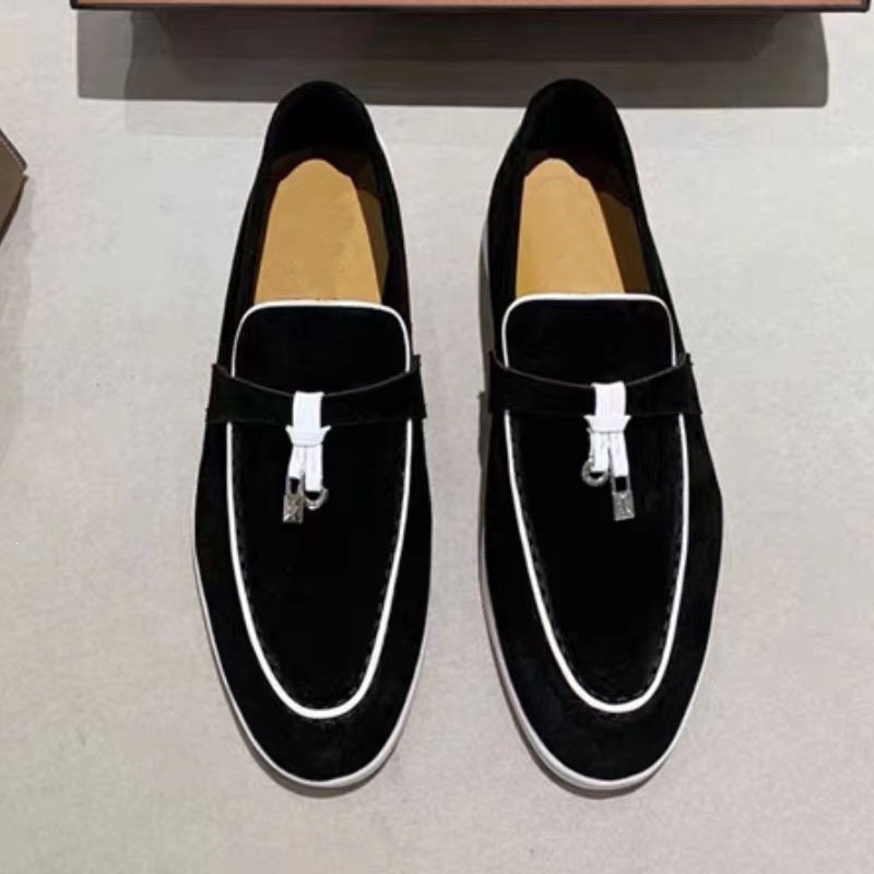 推荐理由:欧洲站外贸吊坠流苏一脚蹬平底软底绒面乐福鞋休闲男真皮女鞋跨境