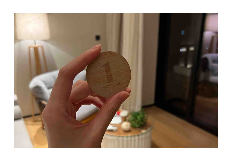 激光雕刻LOGO圆形NFC木质钥匙扣便携