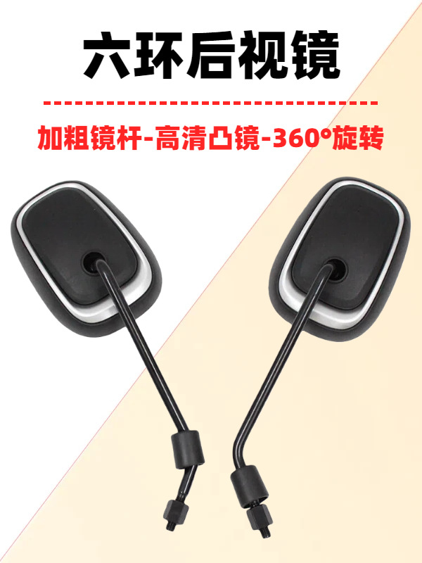 电动车后视镜电瓶车摩托车方形反光镜六环8mm正牙凸面镜倒车镜