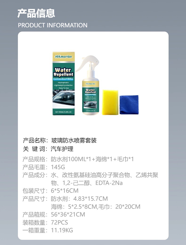 Hikmarion 玻璃防水喷雾套装 汽车车窗玻璃清洁去污视野洁净用品,批发价,价格:8,厂家直销,Hikmarion 玻璃防水喷雾套装 汽车车窗玻璃清洁去污视野洁净用品,免费拿样。