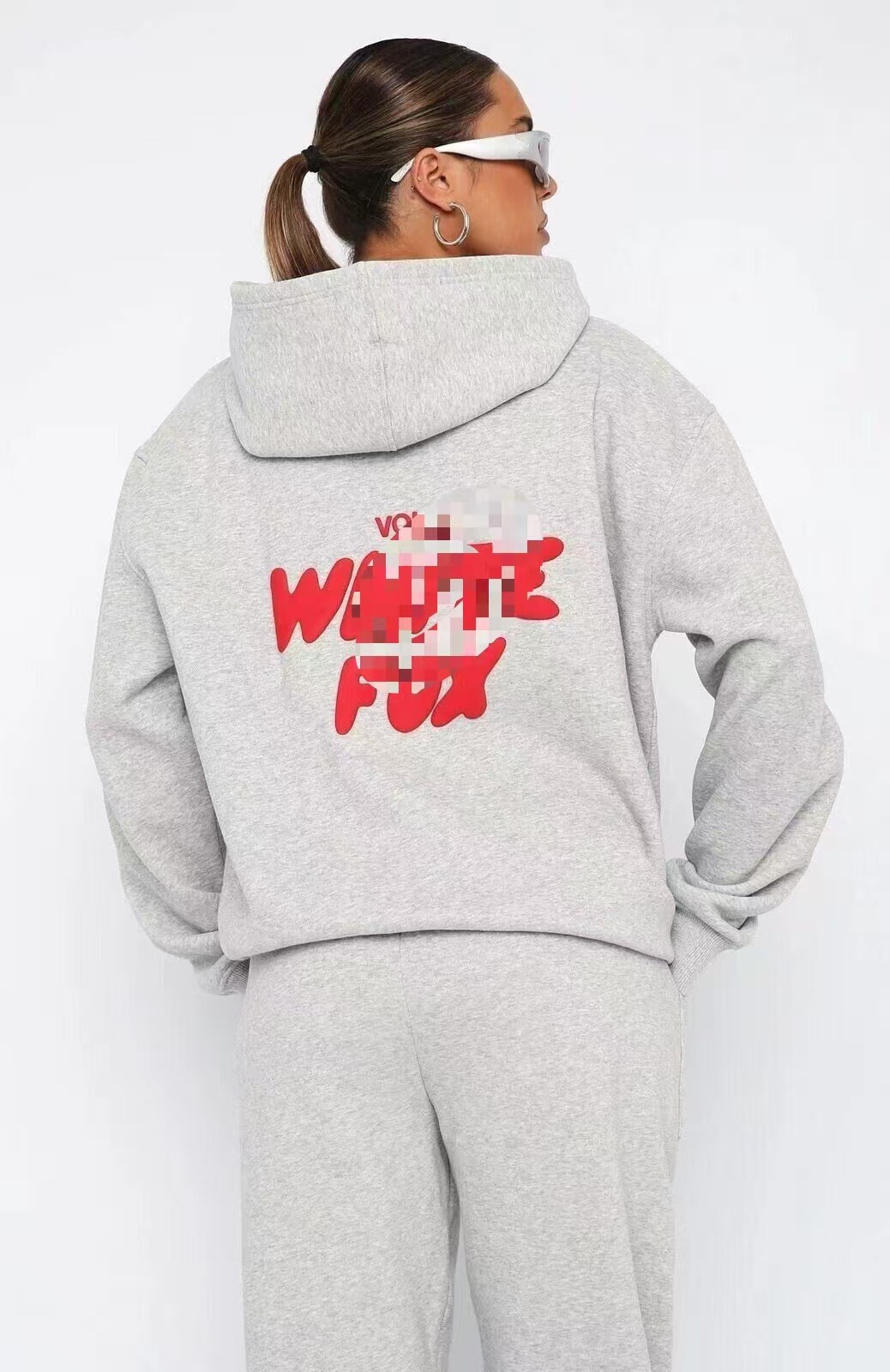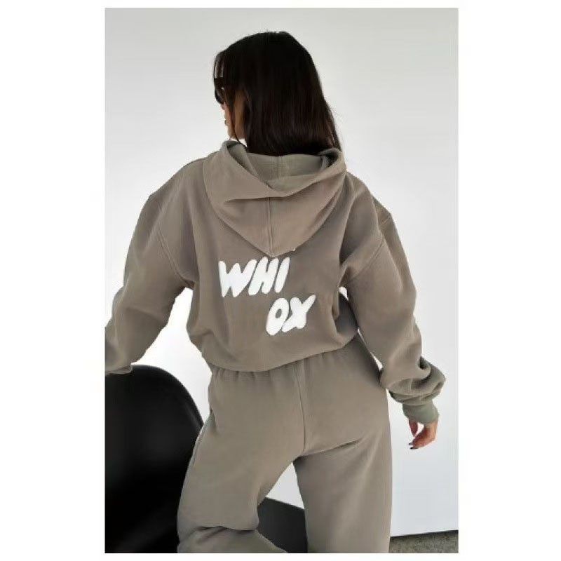 欧美跨境秋冬时尚运动LOGO宽松连帽加绒加厚长袖卫衣厂家批发