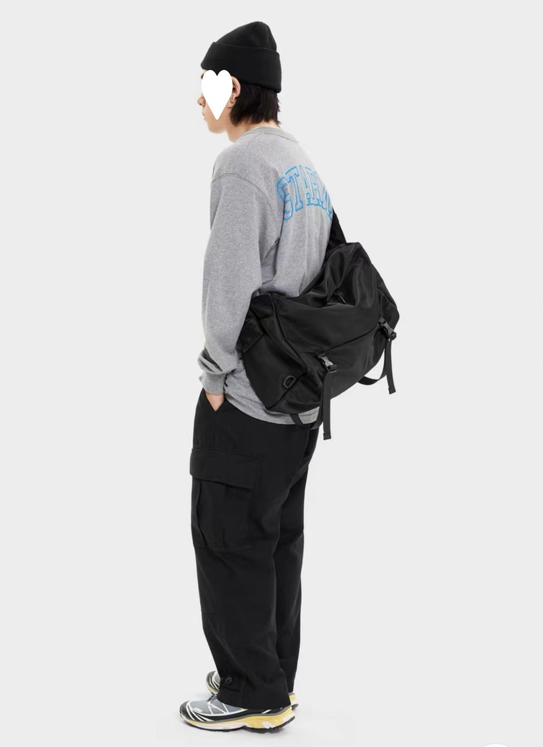 日系大容量斜挎包男运动健身包潮工装机能单肩背包原版黑色其他
