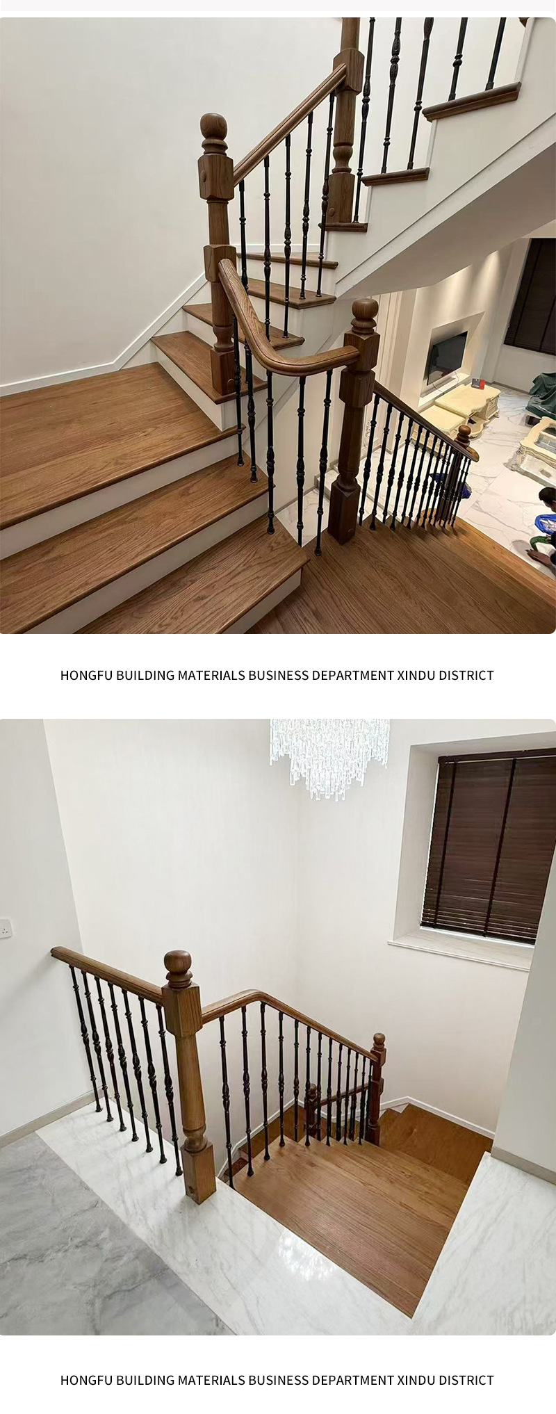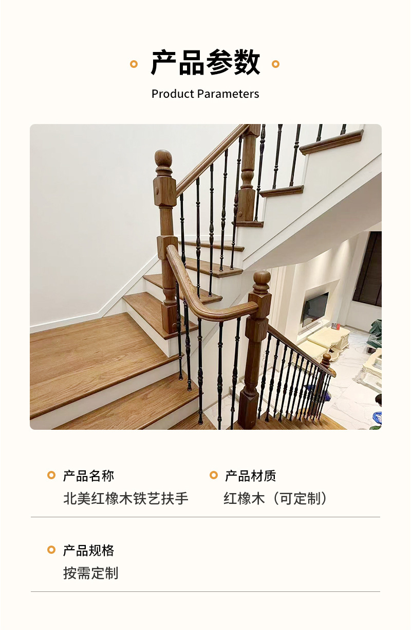 北美红橡材质铁艺楼梯扶手家用实木栏杆室内围栏别墅自建房扶手