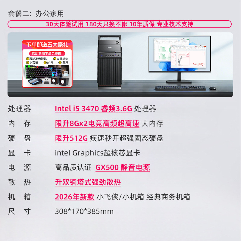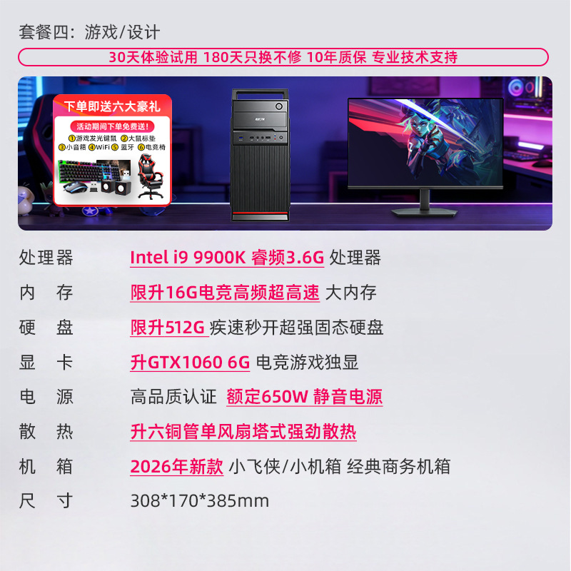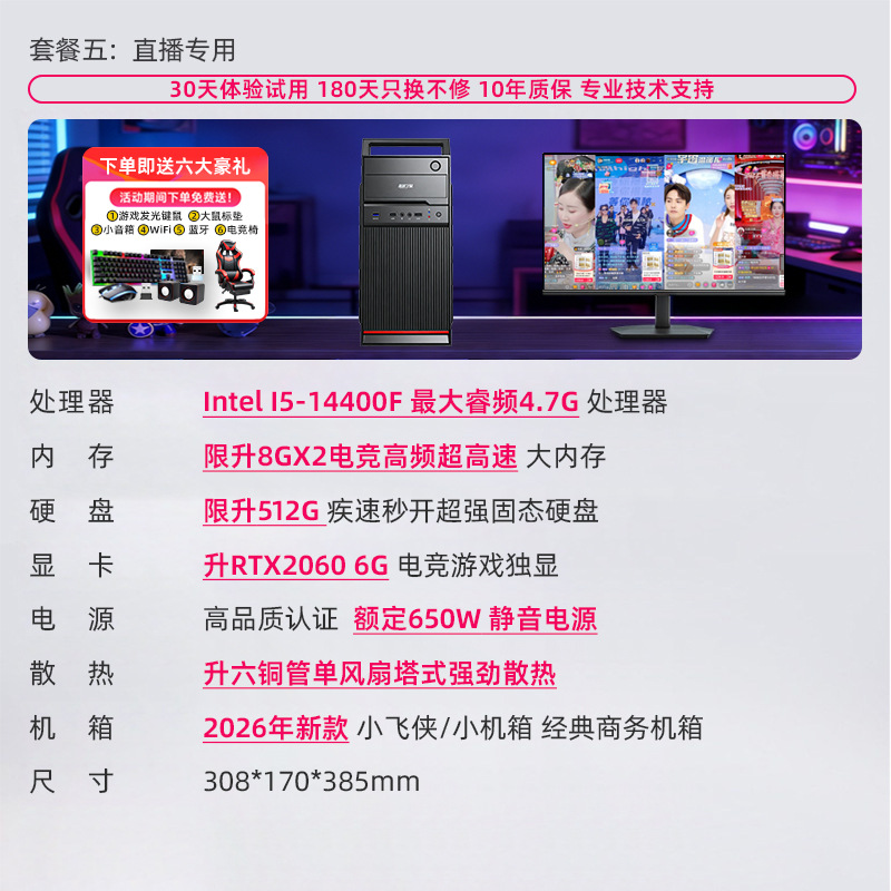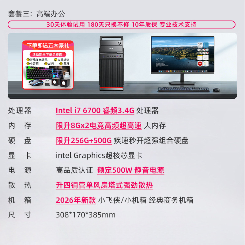 办公电脑主机酷睿i3i5i7i9/6700/900/14400F20601060企业商务家用