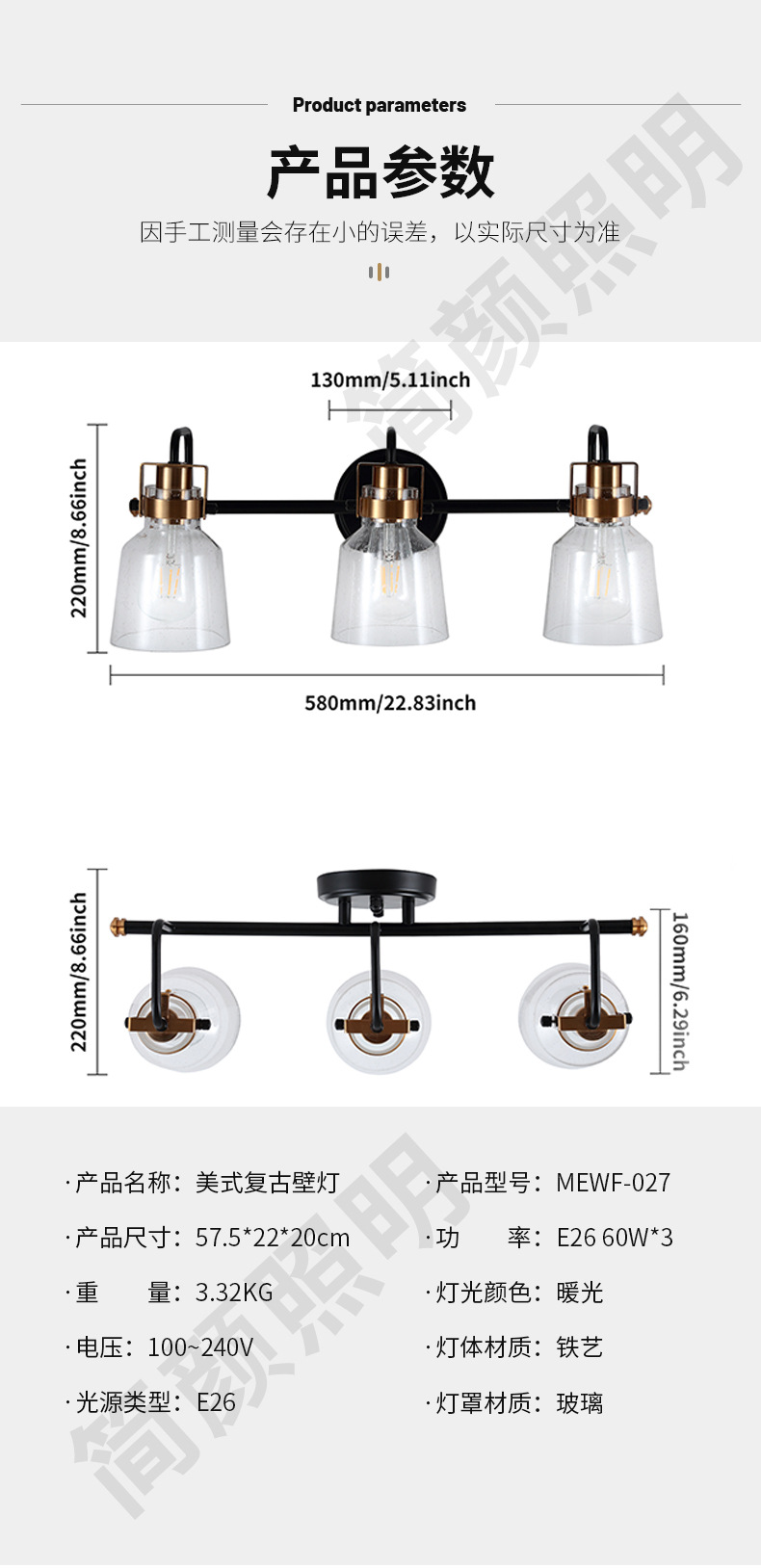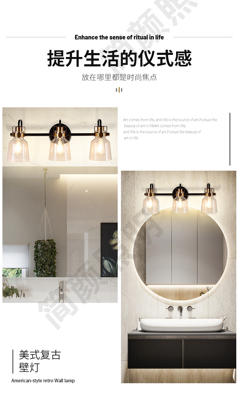 美式玻璃壁灯玄关室内复古墙面高级感浴室镜前灯氛围感壁灯过道,批发价,价格:139,厂家直销,美式玻璃壁灯玄关室内复古墙面高级感浴室镜前灯氛围感壁灯过道,免费拿样。