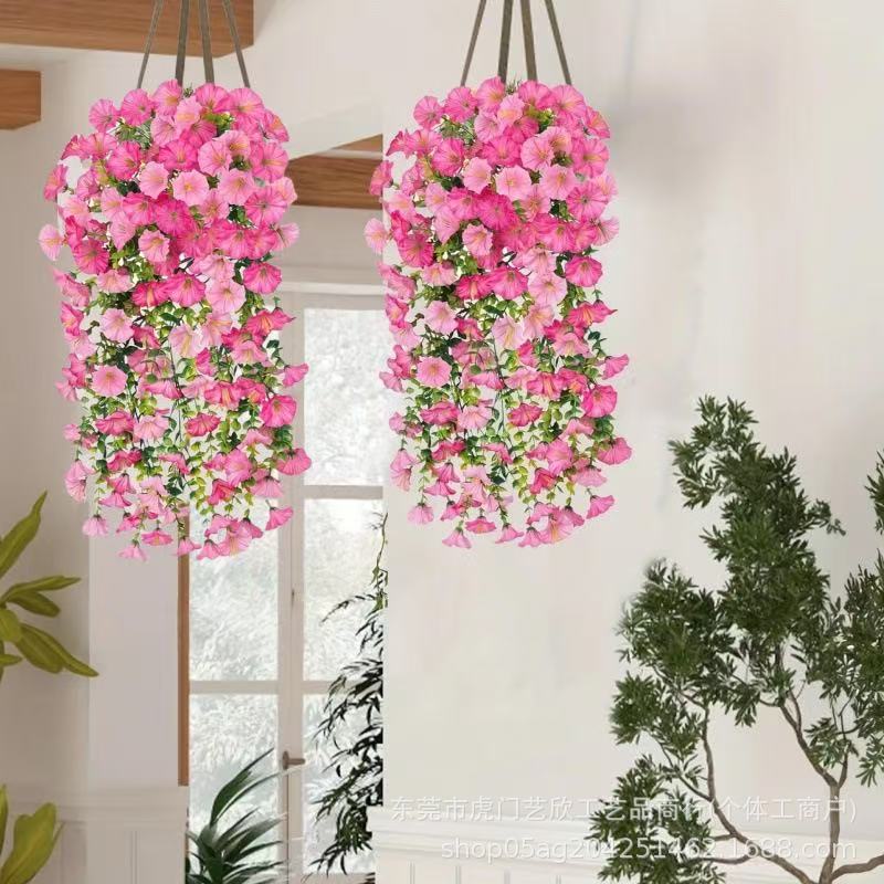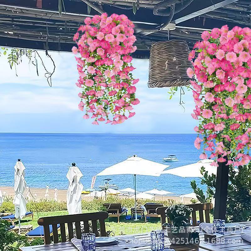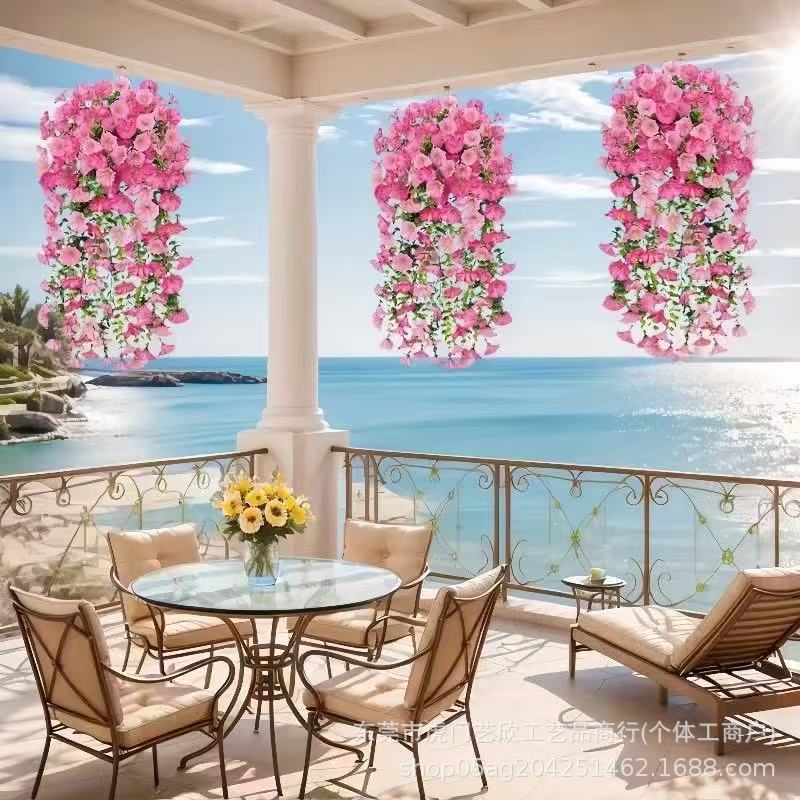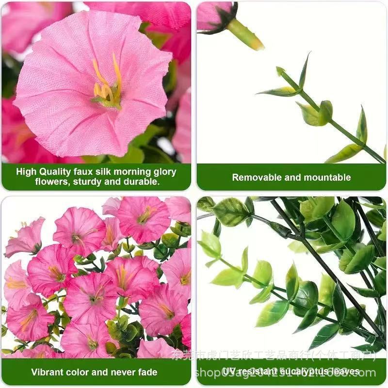 跨境亚马逊仿真花尤加利牵牛花绢花家居婚礼户外庭院壁挂藤条假花