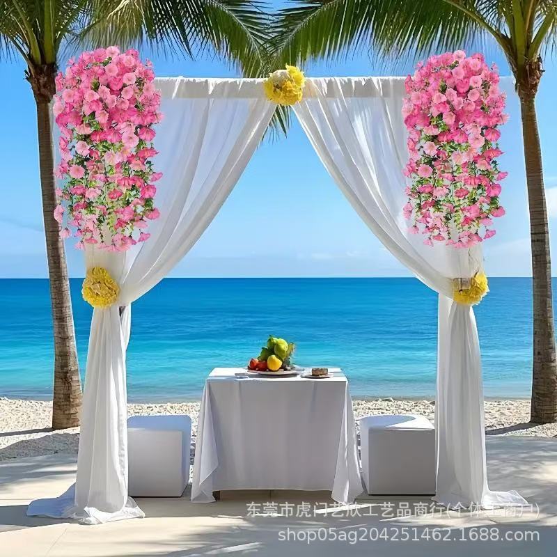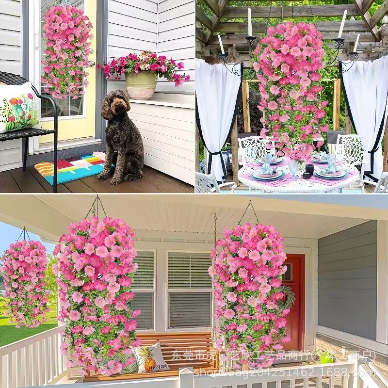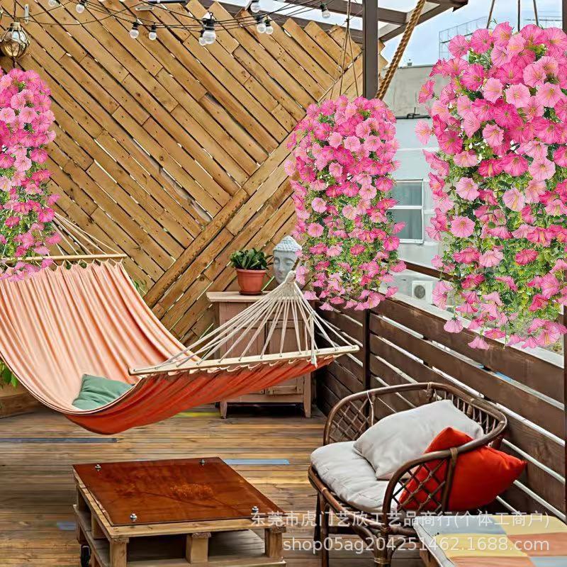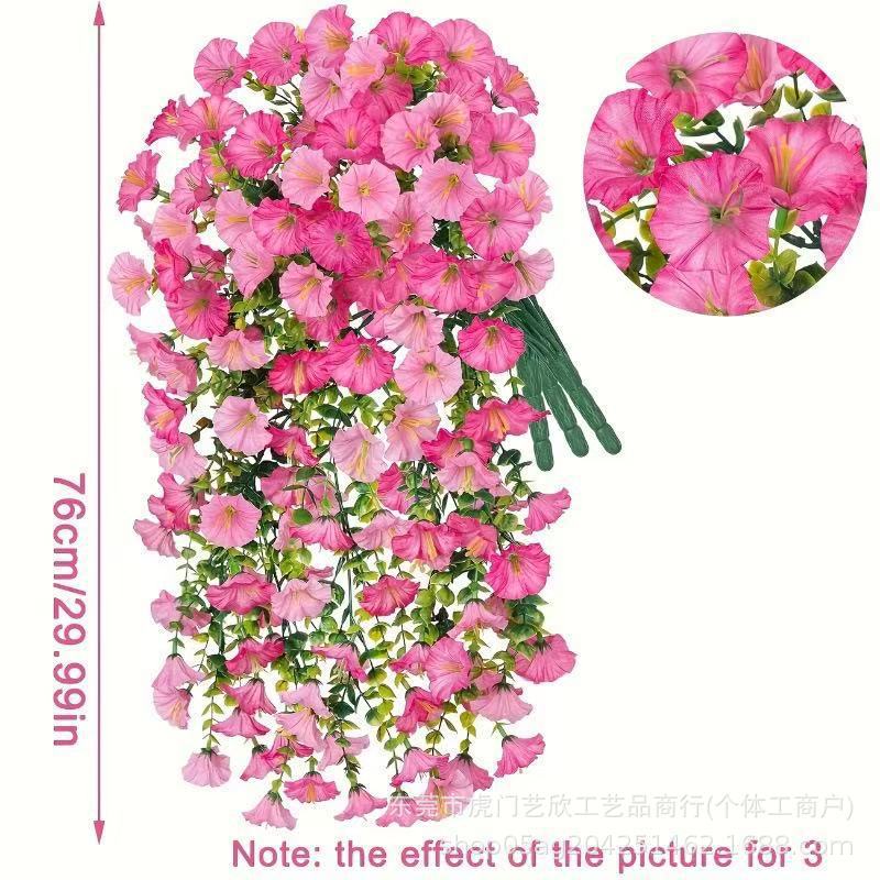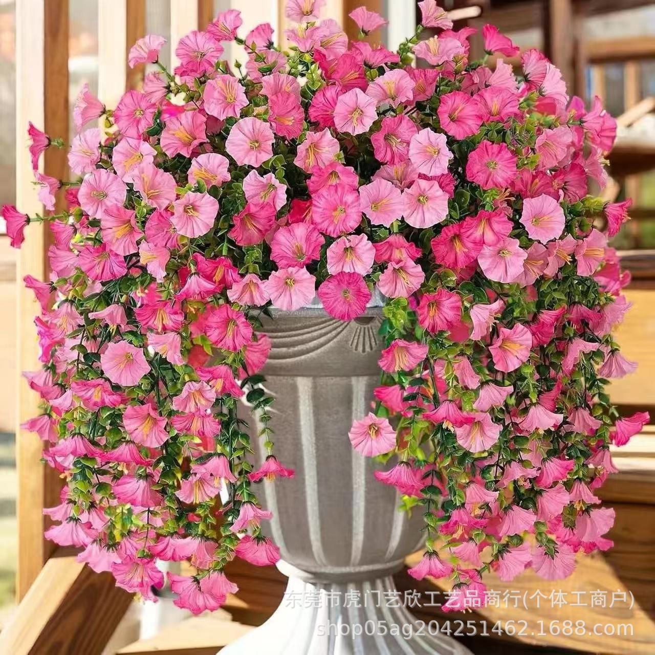 跨境亚马逊仿真花尤加利牵牛花绢花家居婚礼户外庭院壁挂藤条假花