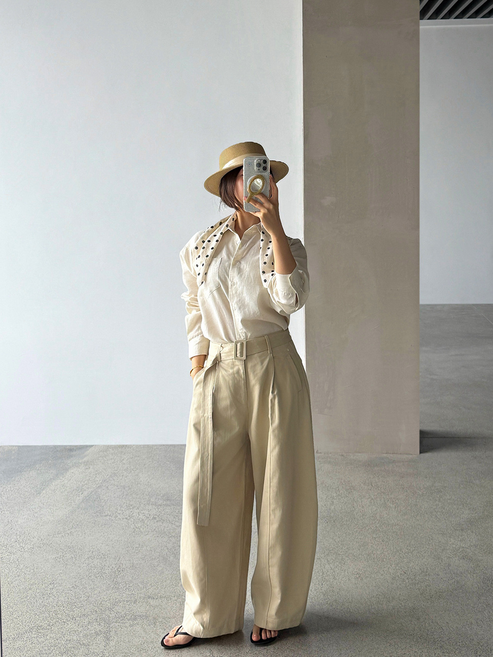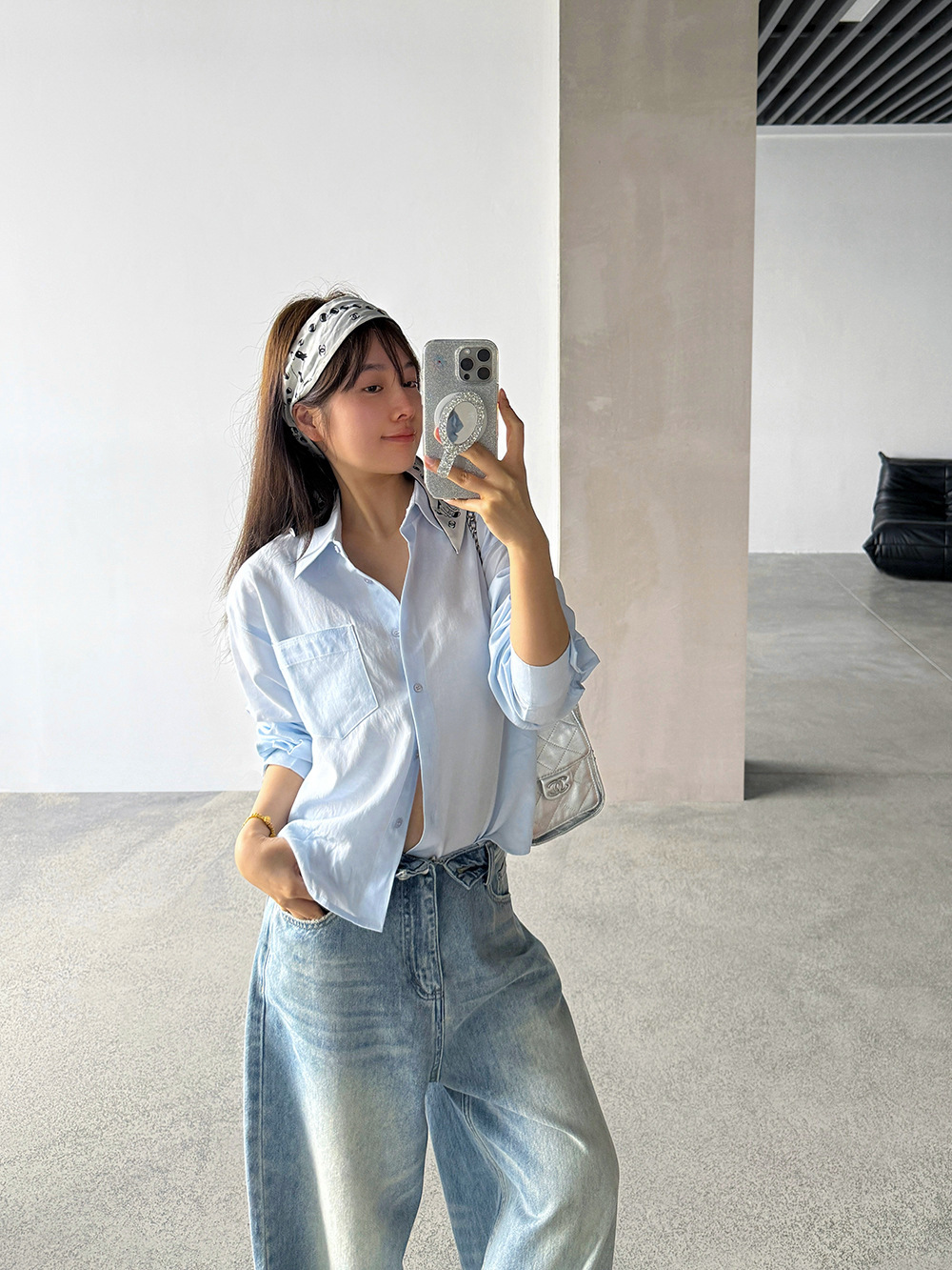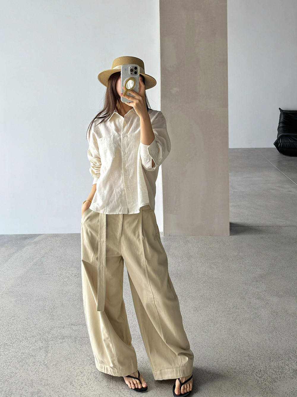 【王琪芝】老钱风亚麻天丝衬衫女春夏宽松休闲松弛感短衬衣WQ188