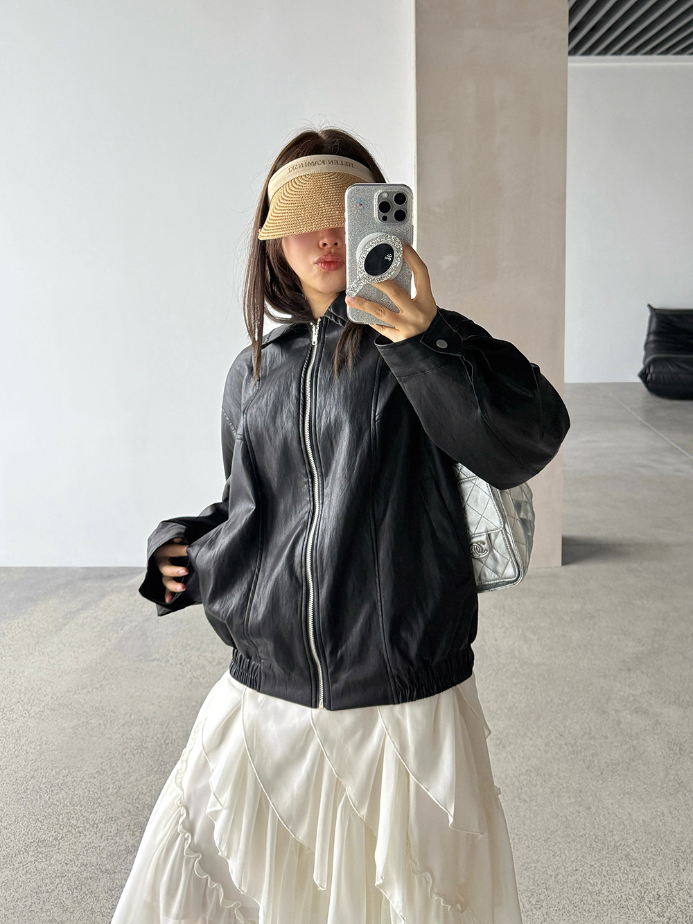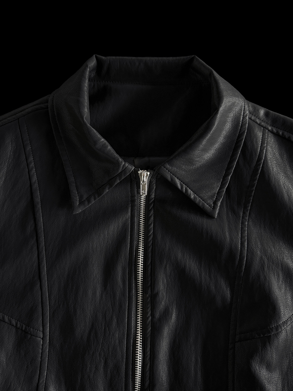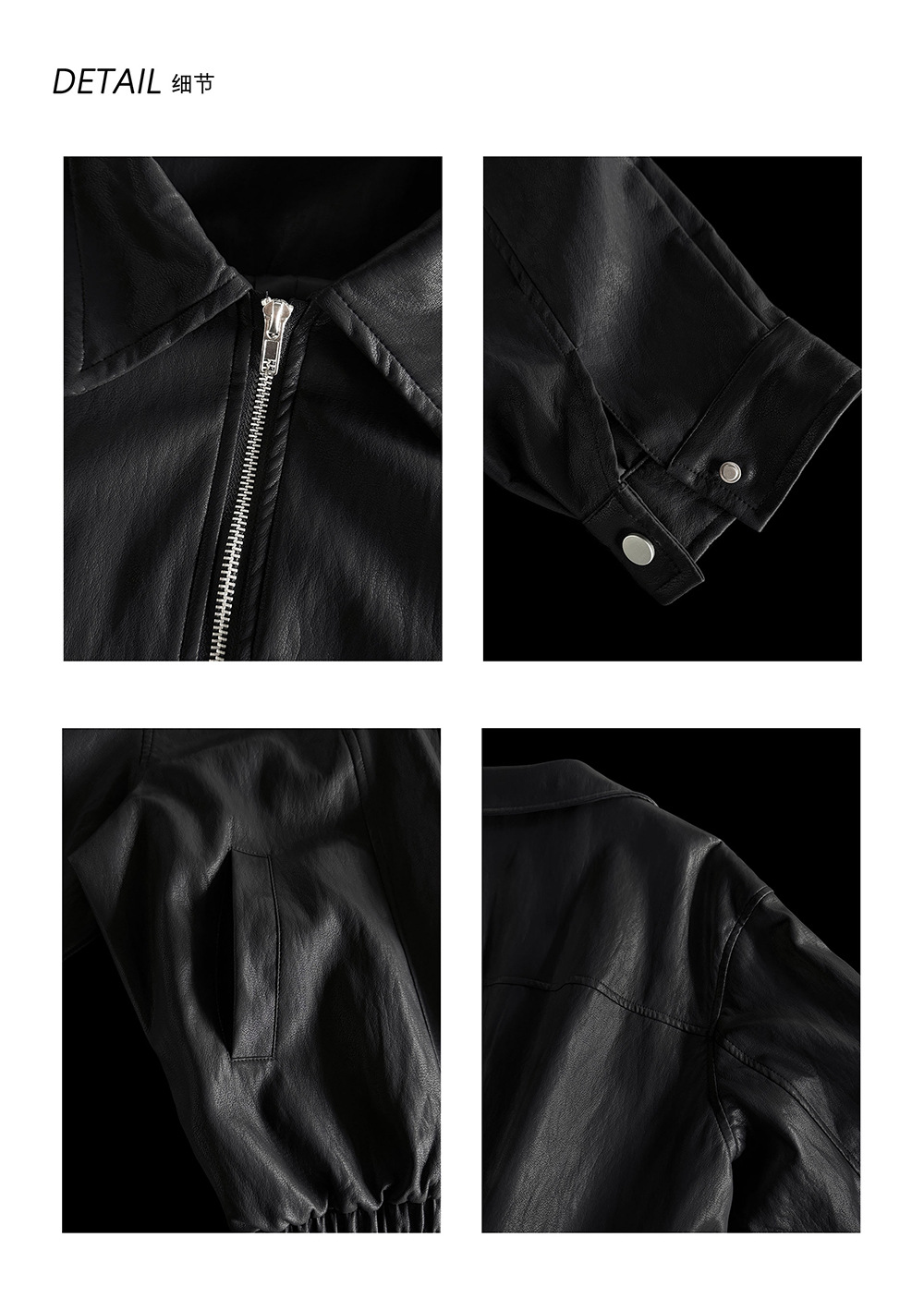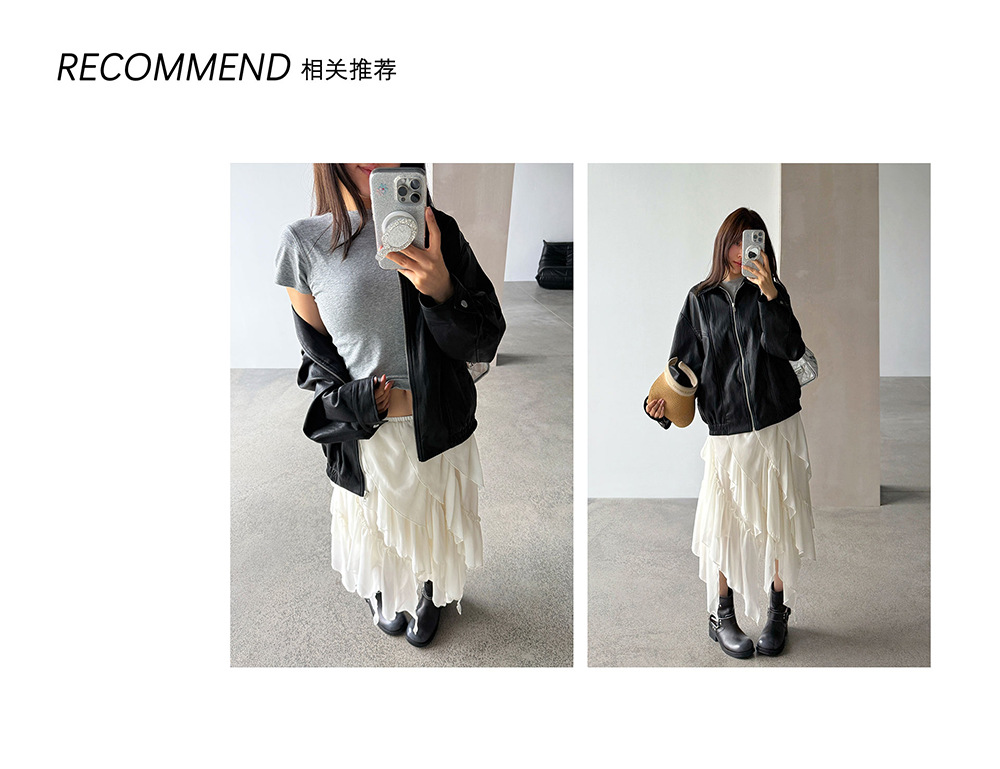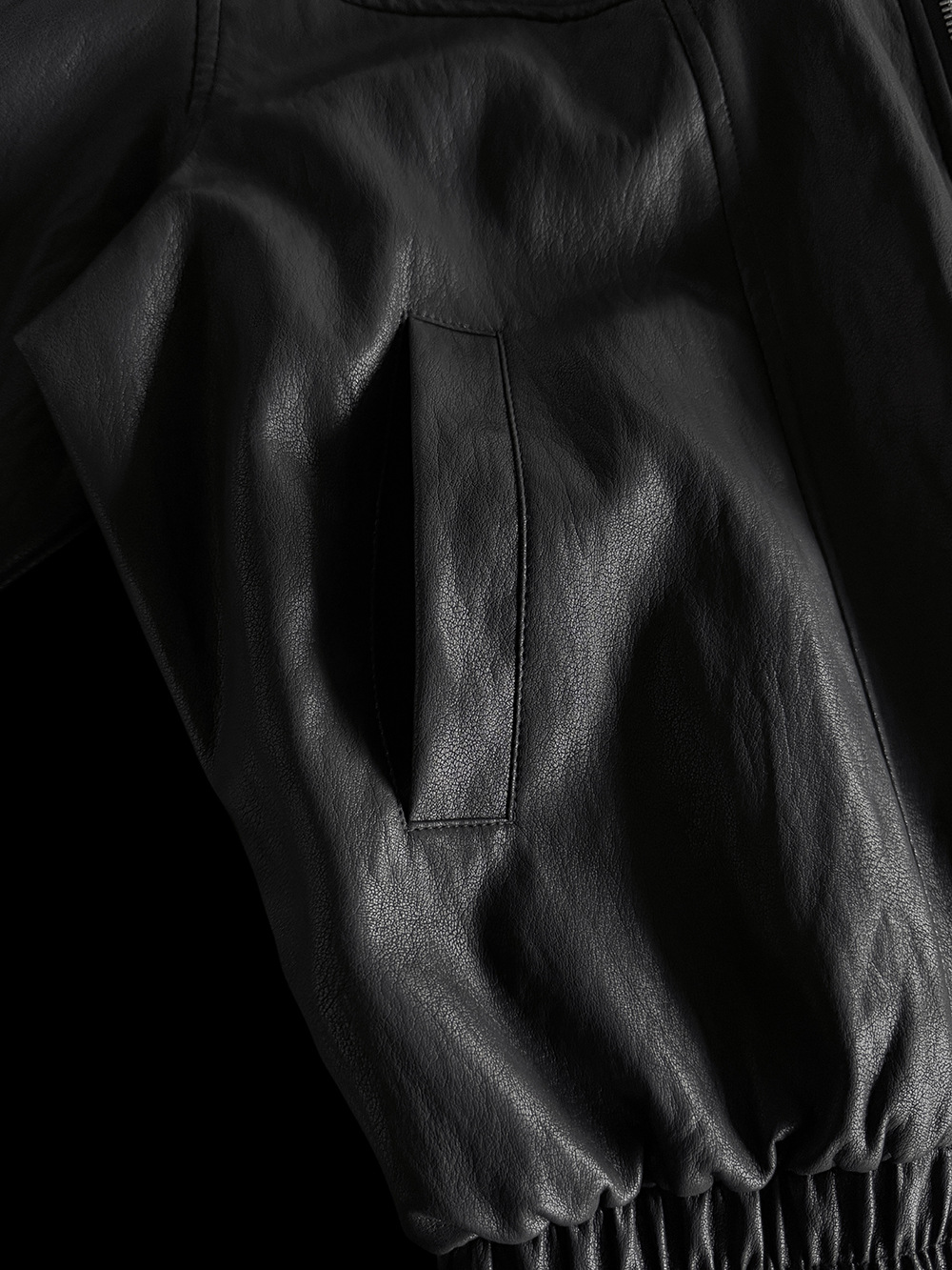 【王琪芝】早春极简翻领夹克皮衣女宽松复古潮流休闲夹克衫WQ187