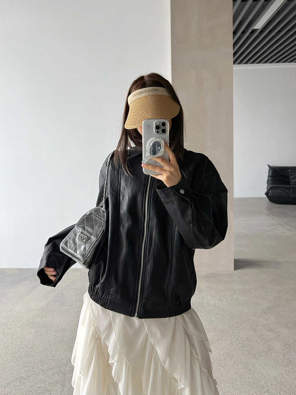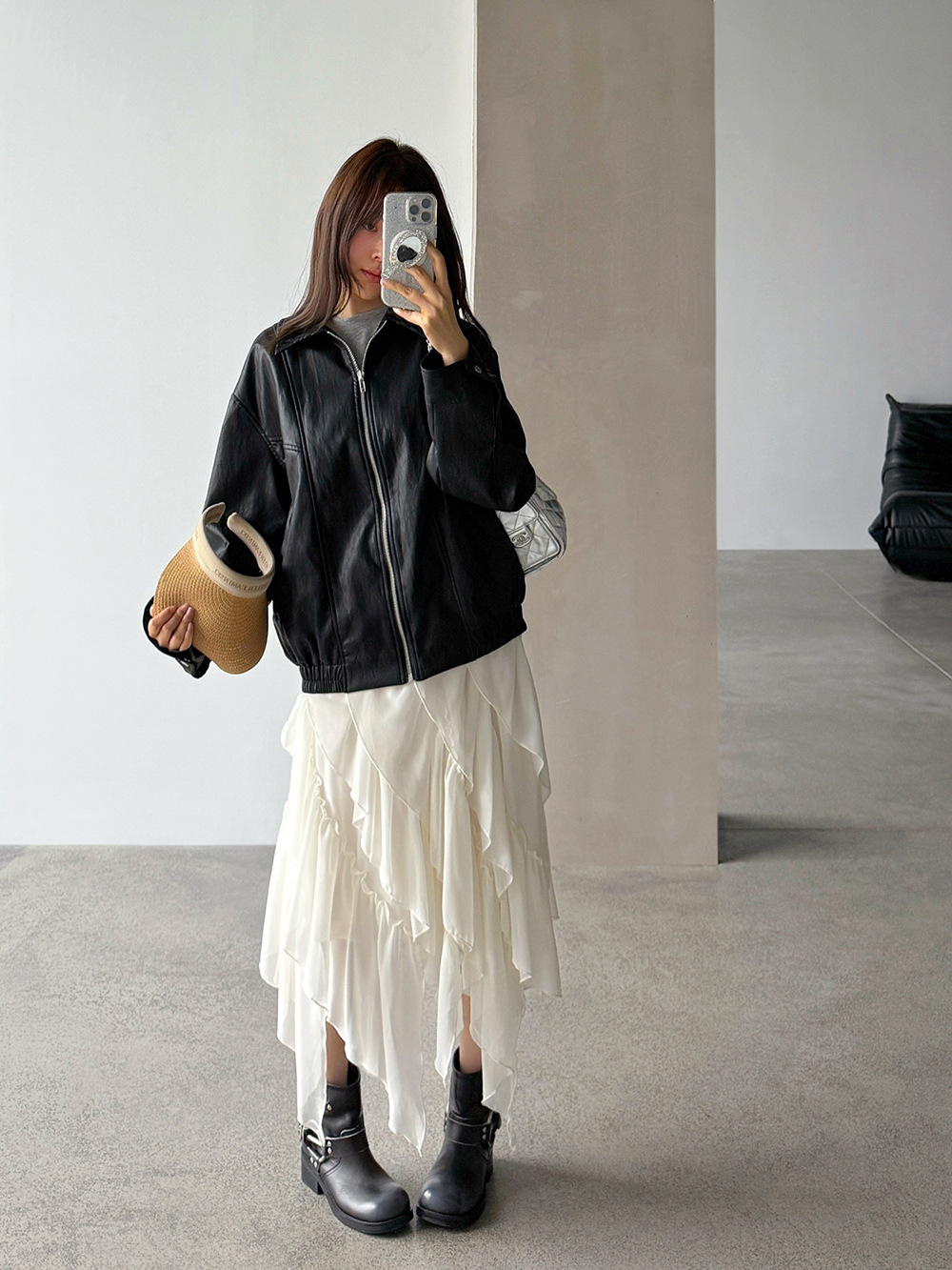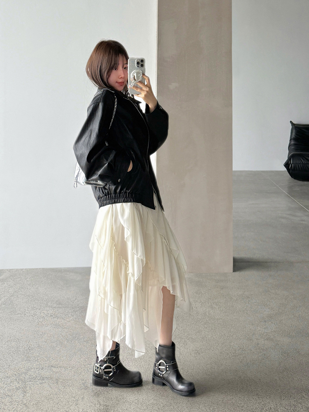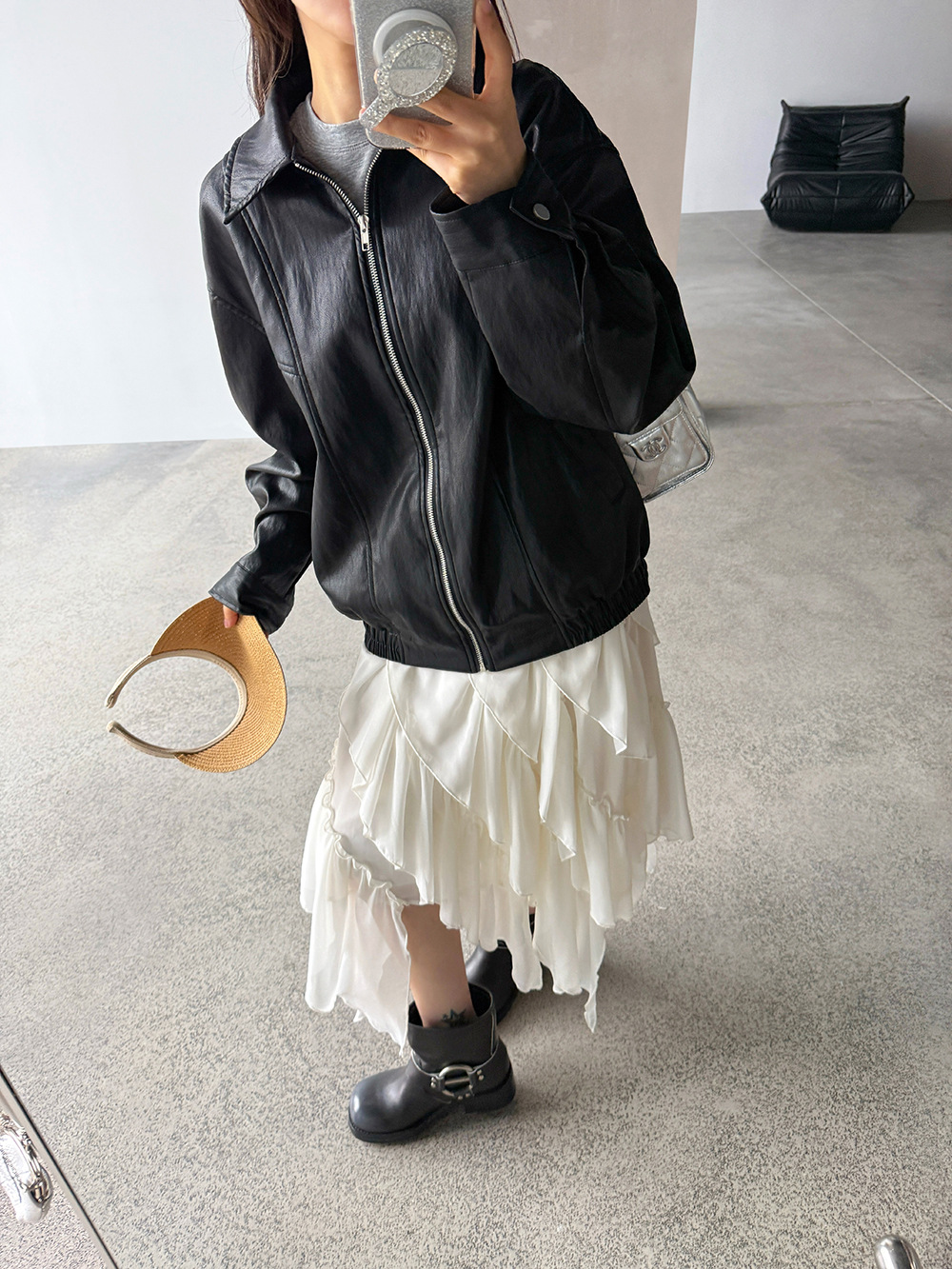 【王琪芝】早春极简翻领夹克皮衣女宽松复古潮流休闲夹克衫WQ187