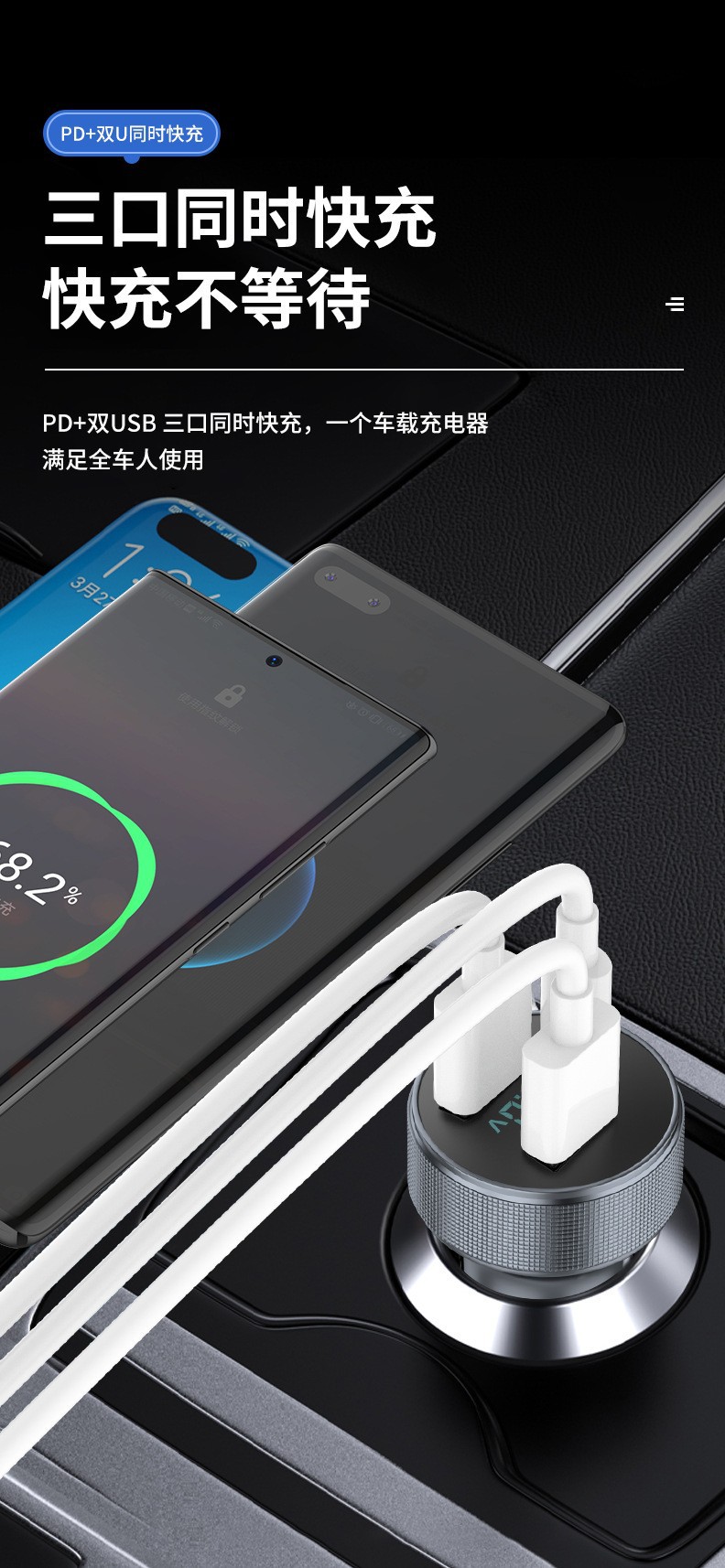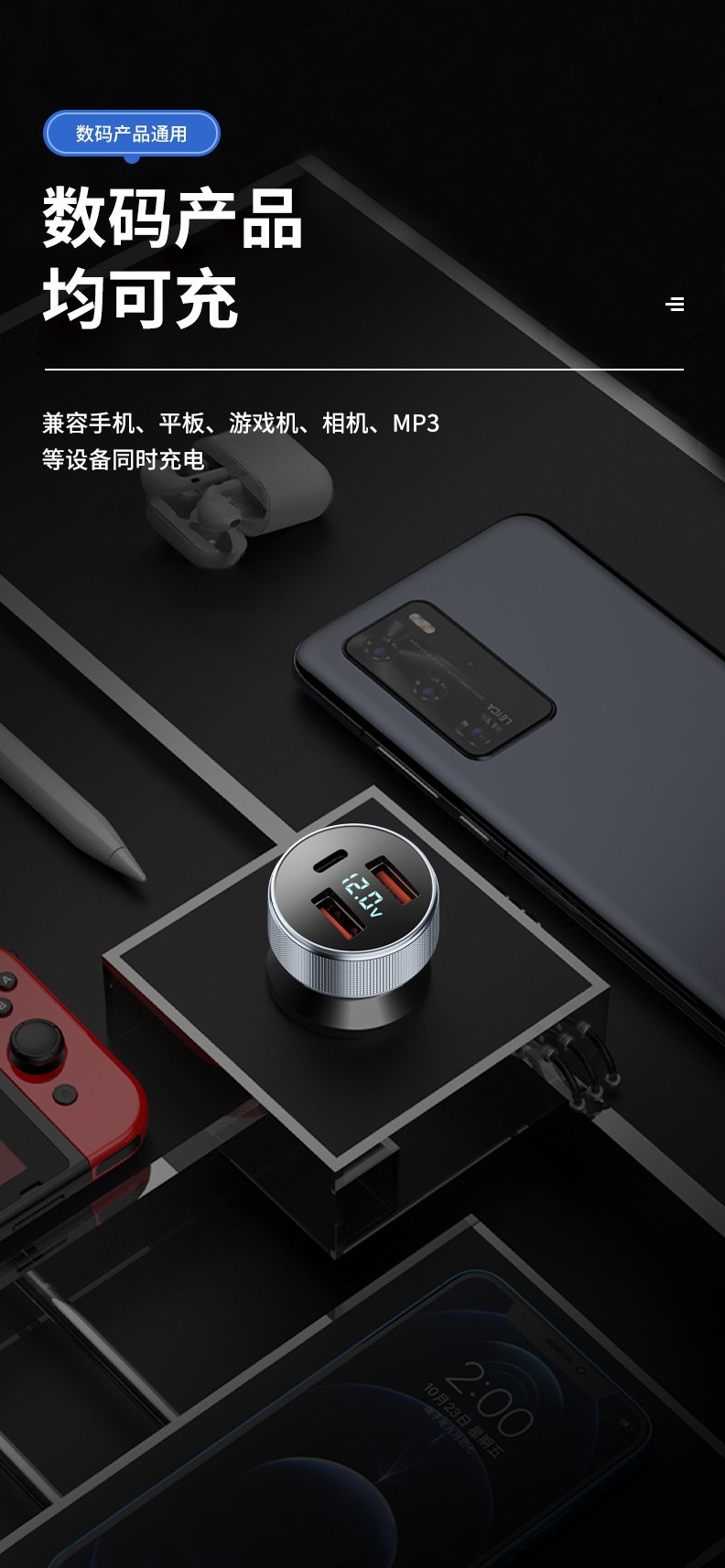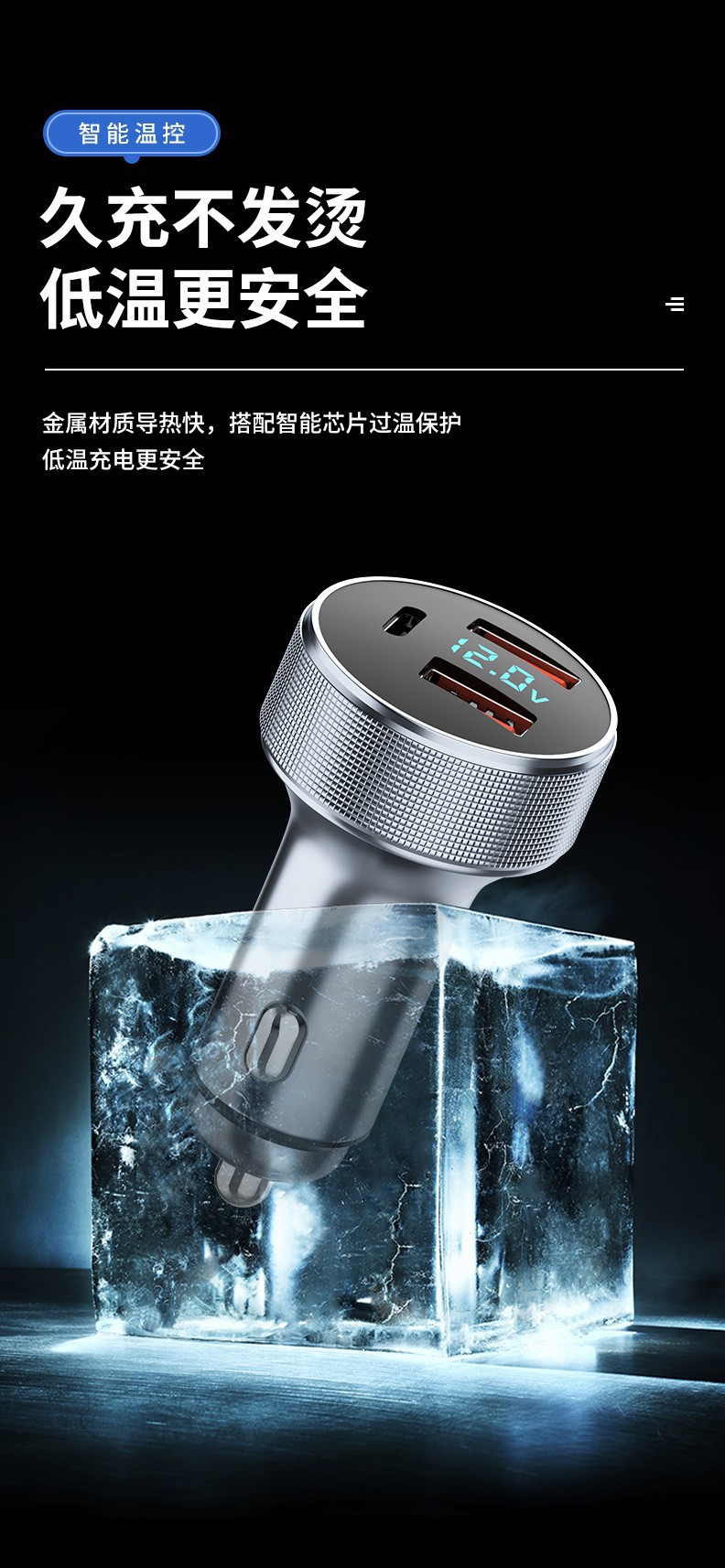 金属数显车充100W超级快充铝合金全兼容协议PD30W车载手机充电器