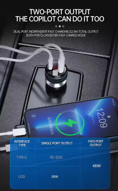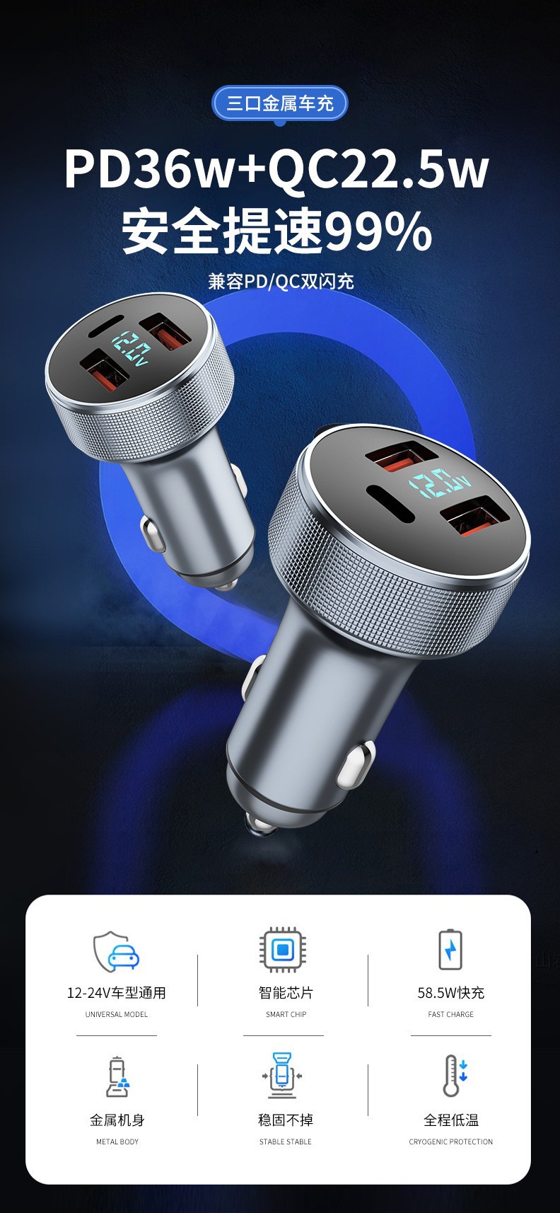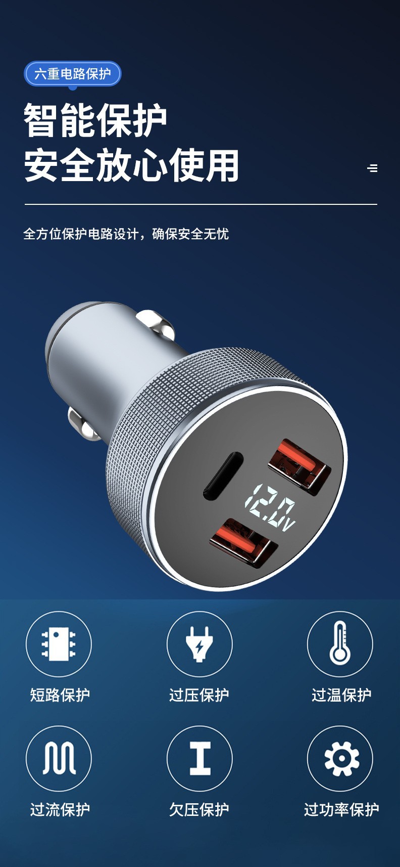 金属数显车充100W超级快充铝合金全兼容协议PD30W车载手机充电器,批发价,价格:0.8,厂家直销,金属数显车充100W超级快充铝合金全兼容协议PD30W车载手机充电器,免费拿样。