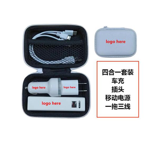 移动电源 车载充电器头数据线三合一商务旅行礼品套装 可印logo