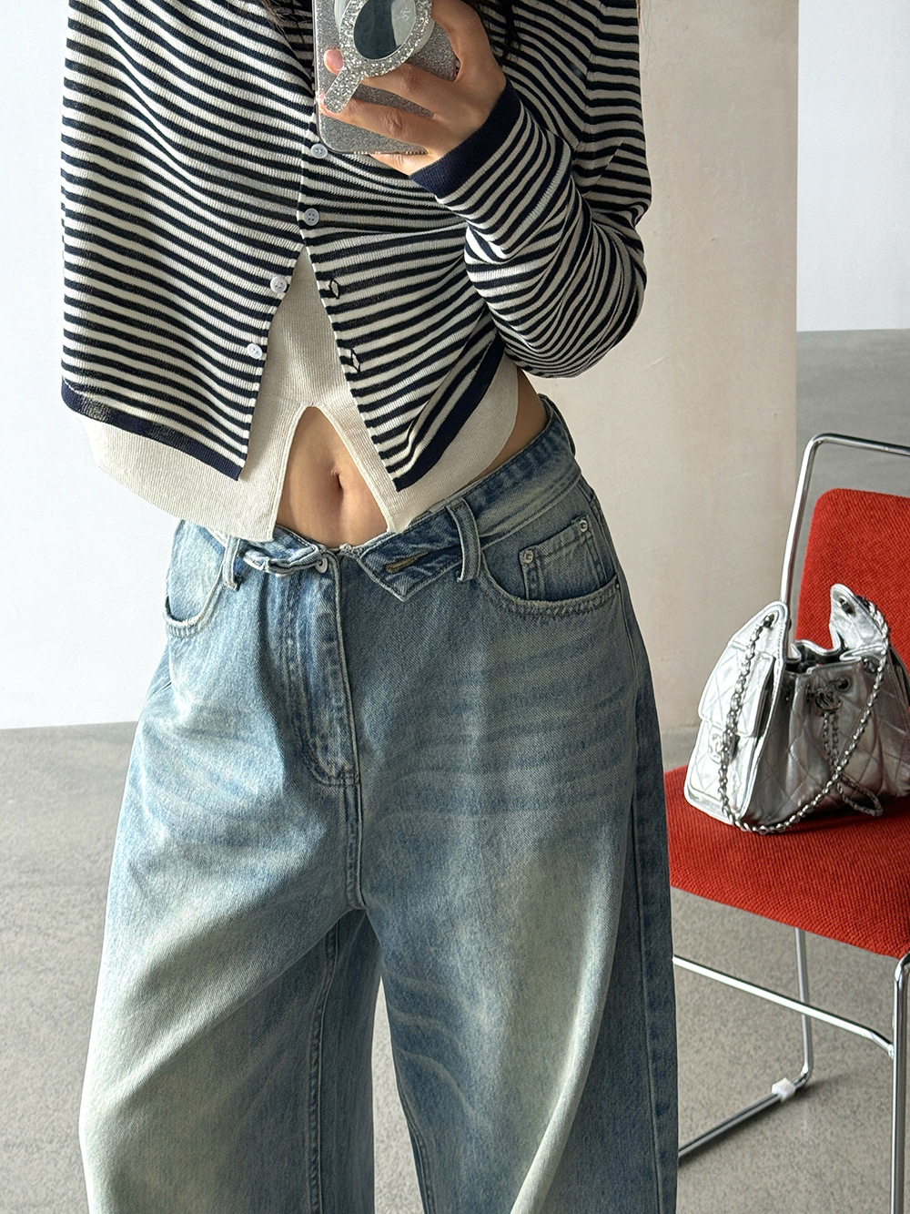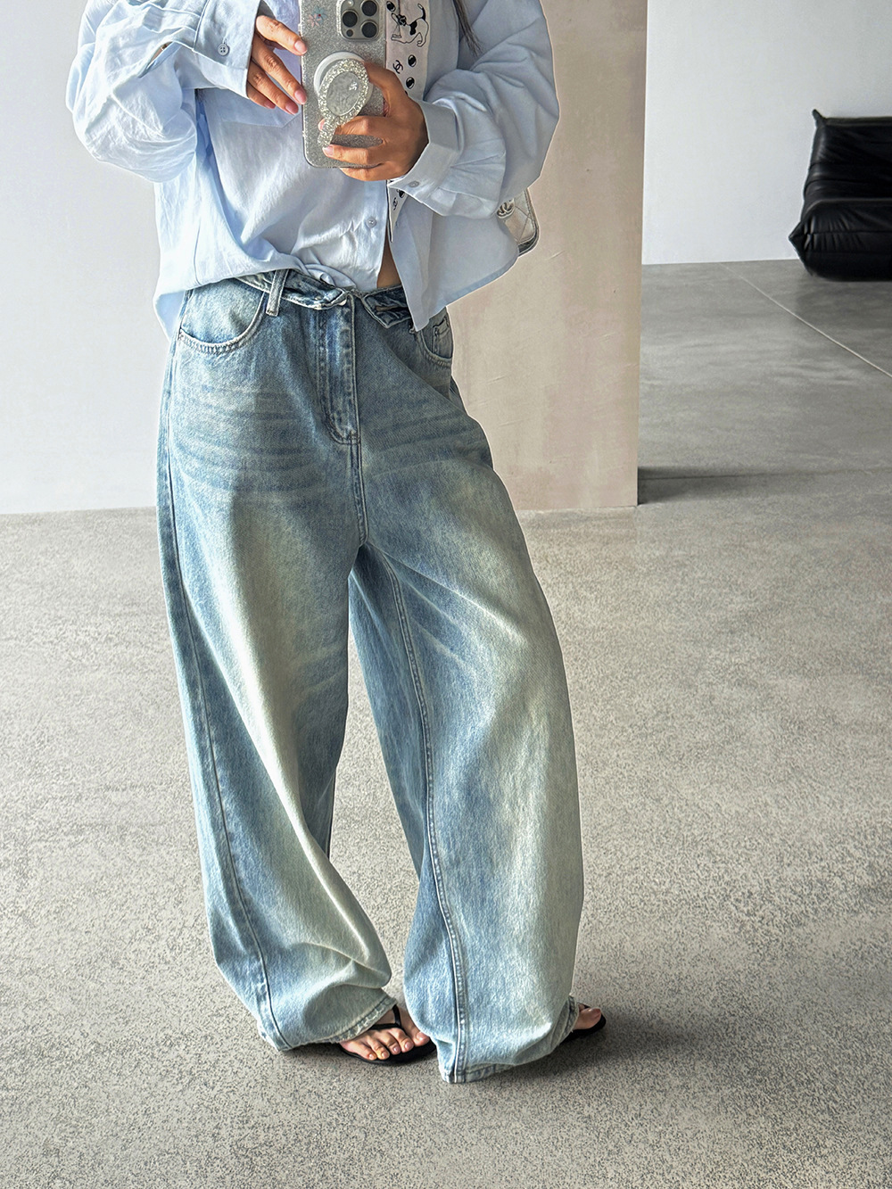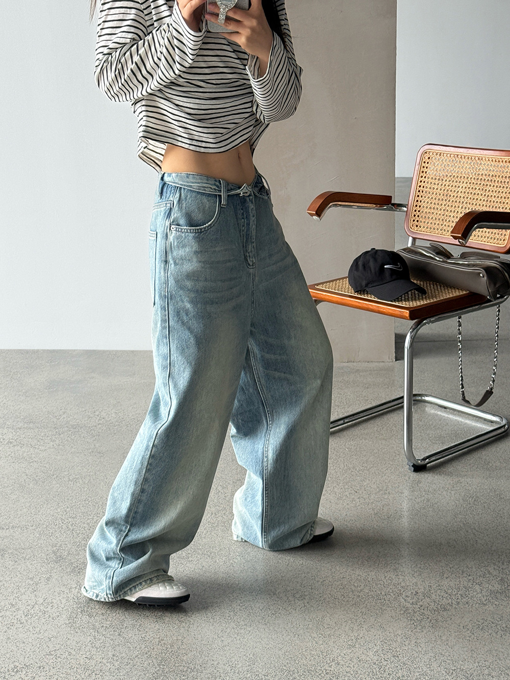 【王琪芝】 个性水洗直筒宽松牛仔裤女春夏休闲长裤WQ189宽松型