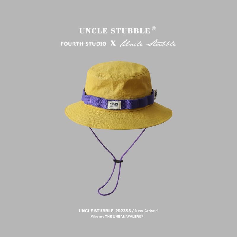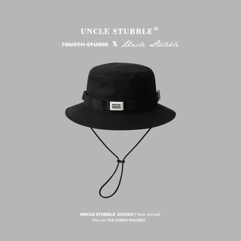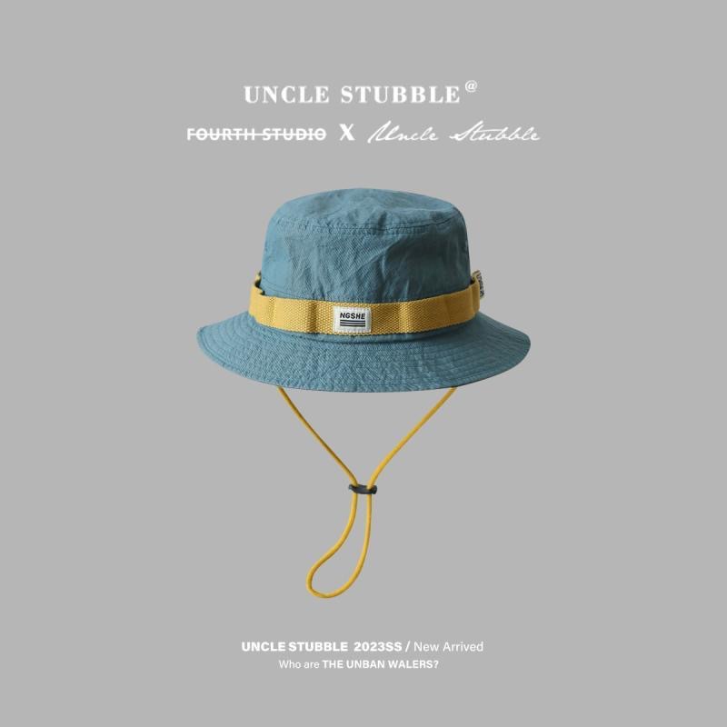 织带新款户外速干登山帽女抽绳防晒渔夫帽牛仔帽子显脸小刺绣盆帽