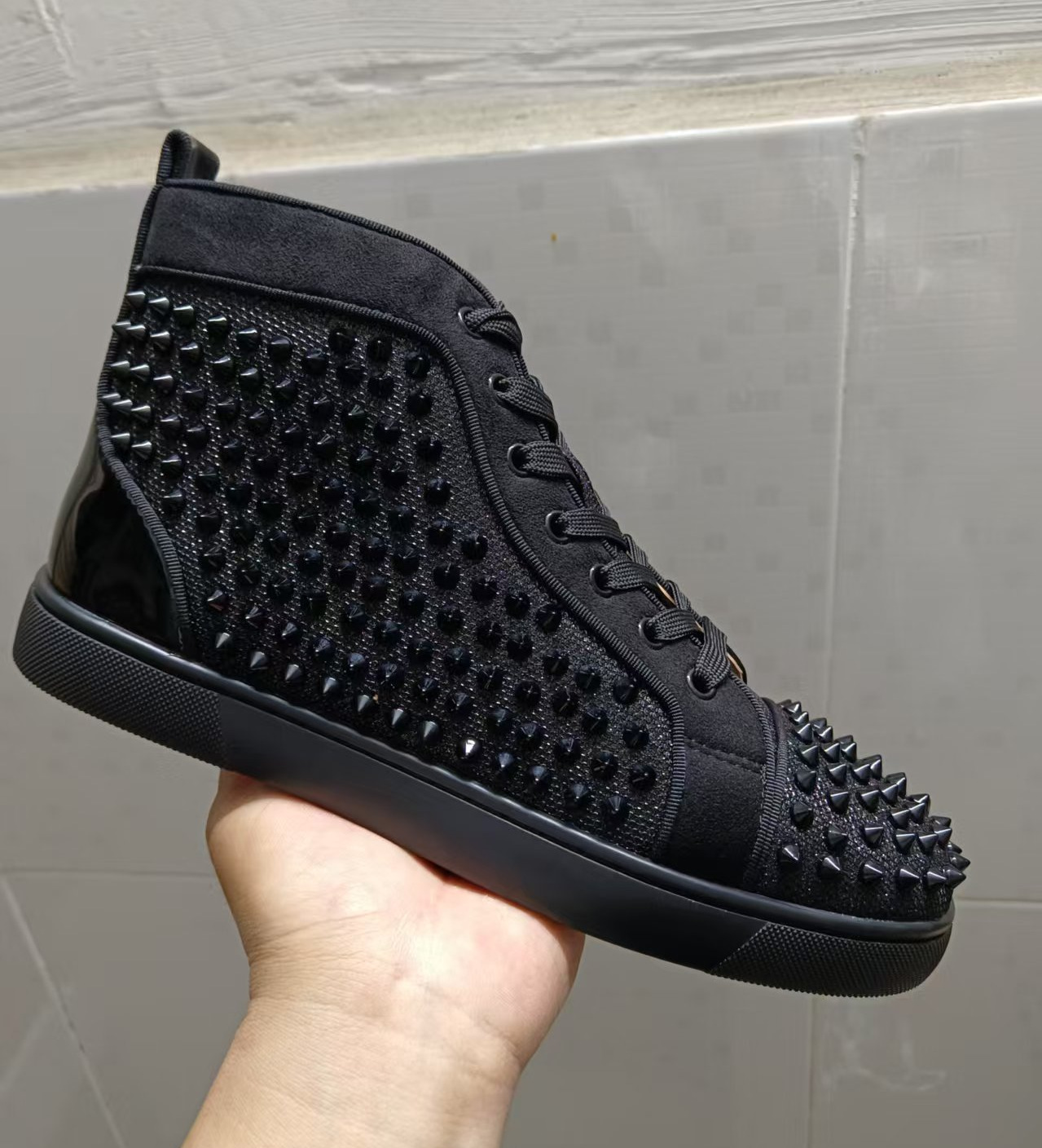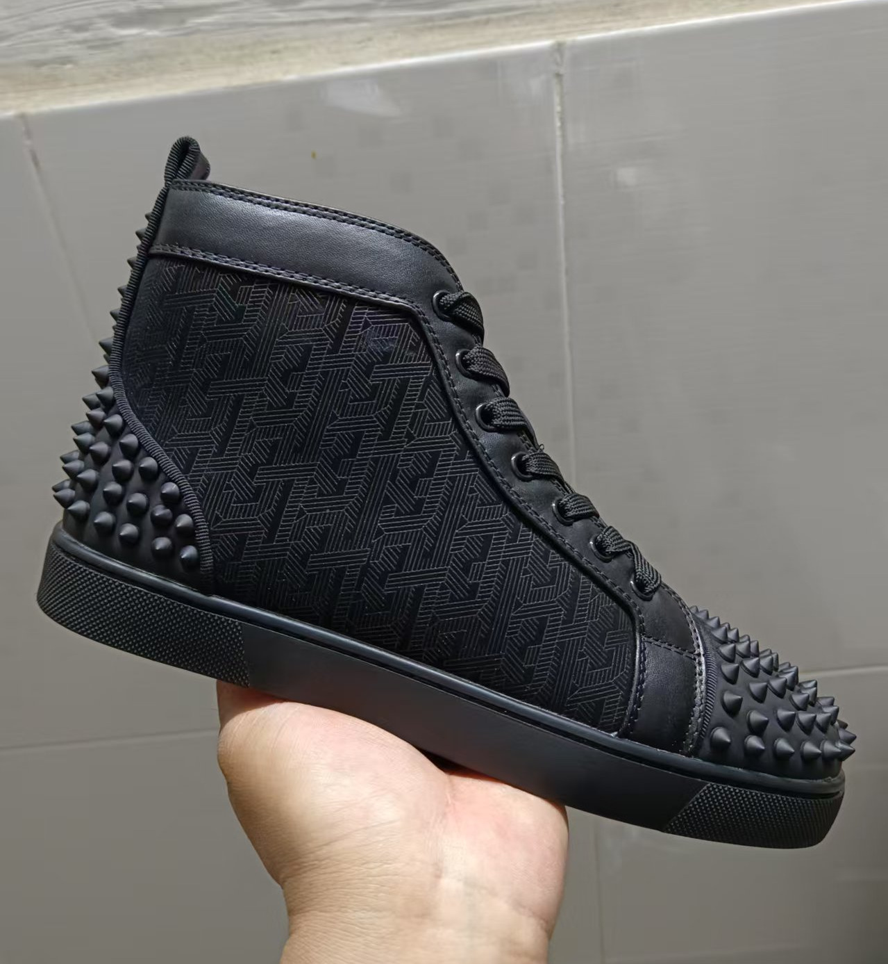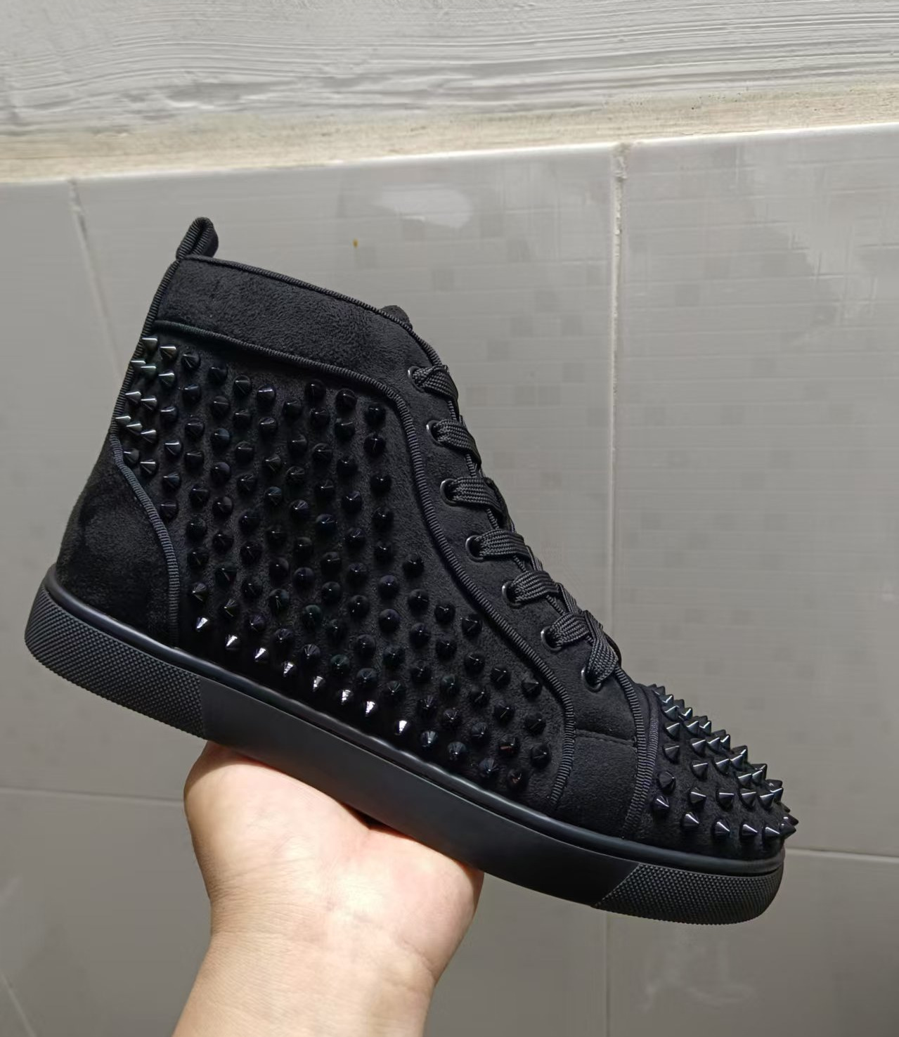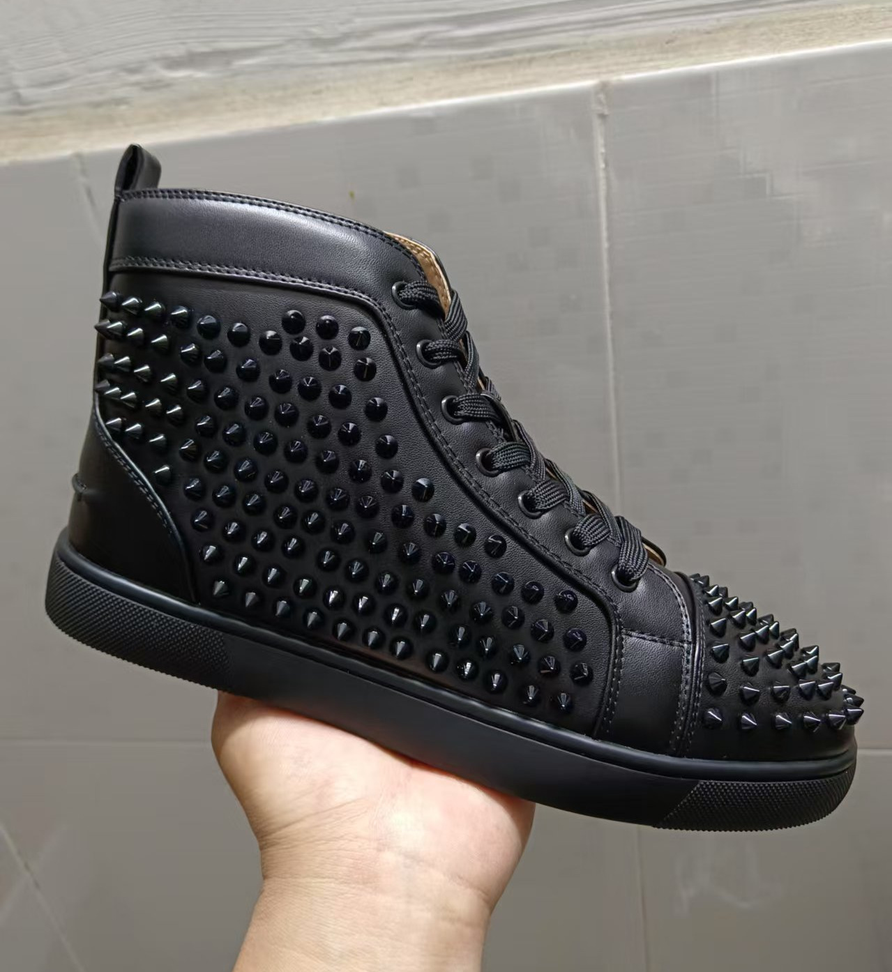 红底欧洲站休闲高帮印花板鞋男鞋潮牌铆钉黑色耐磨男士休闲鞋,批发价,价格:218,厂家直销,红底欧洲站休闲高帮印花板鞋男鞋潮牌铆钉黑色耐磨男士休闲鞋,免费拿样。