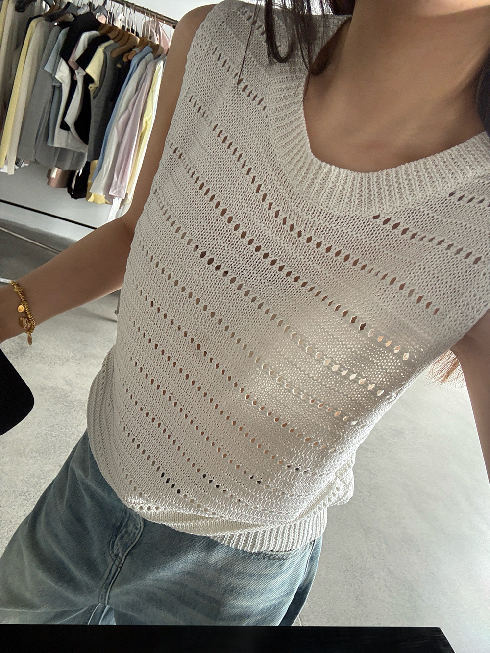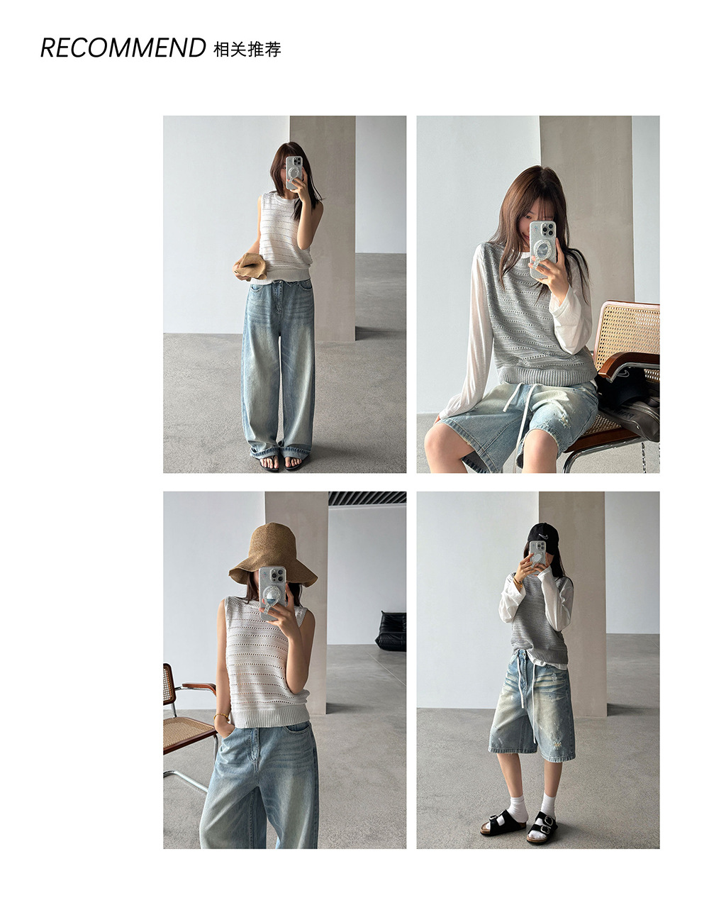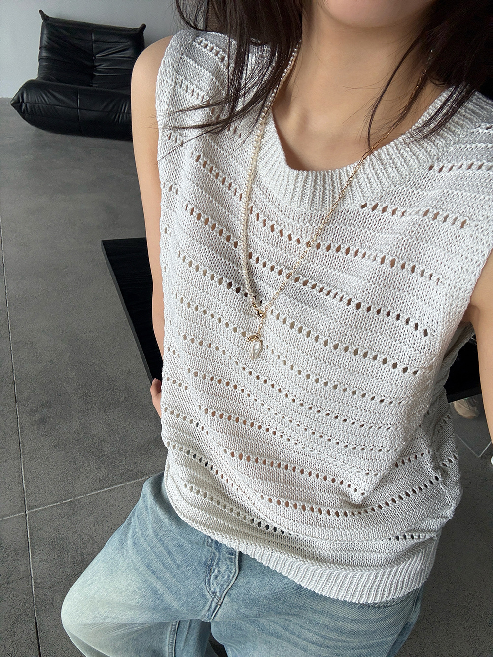 【王琪芝】极简休闲风无袖针织衫女春夏镂空感设计叠穿背心WQ193