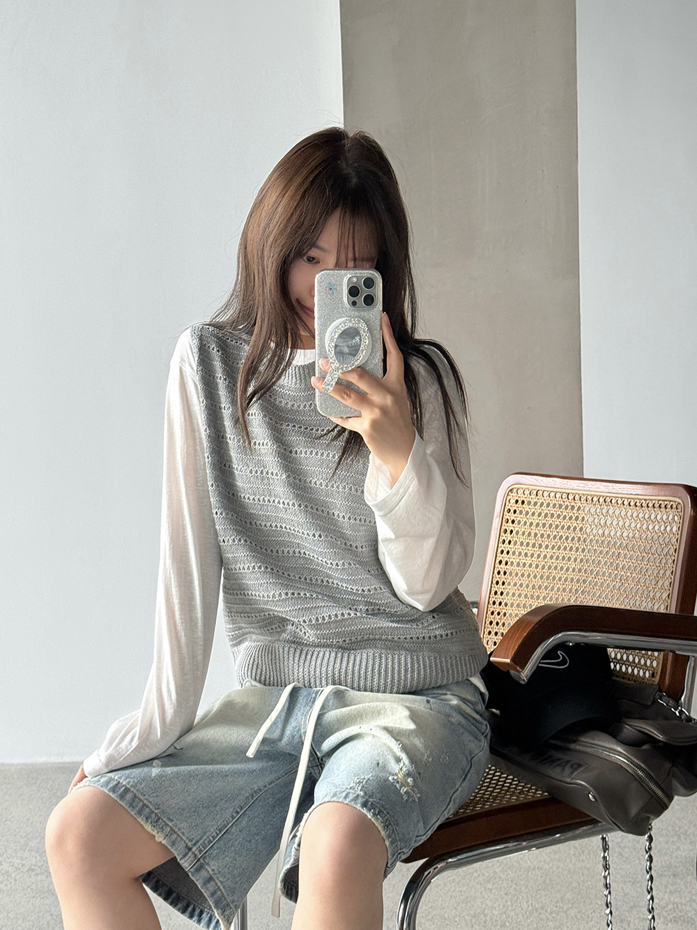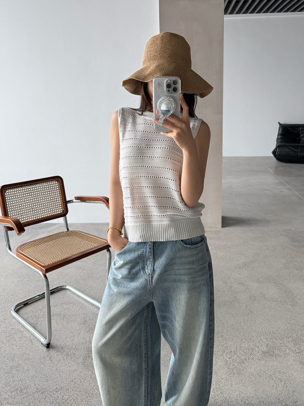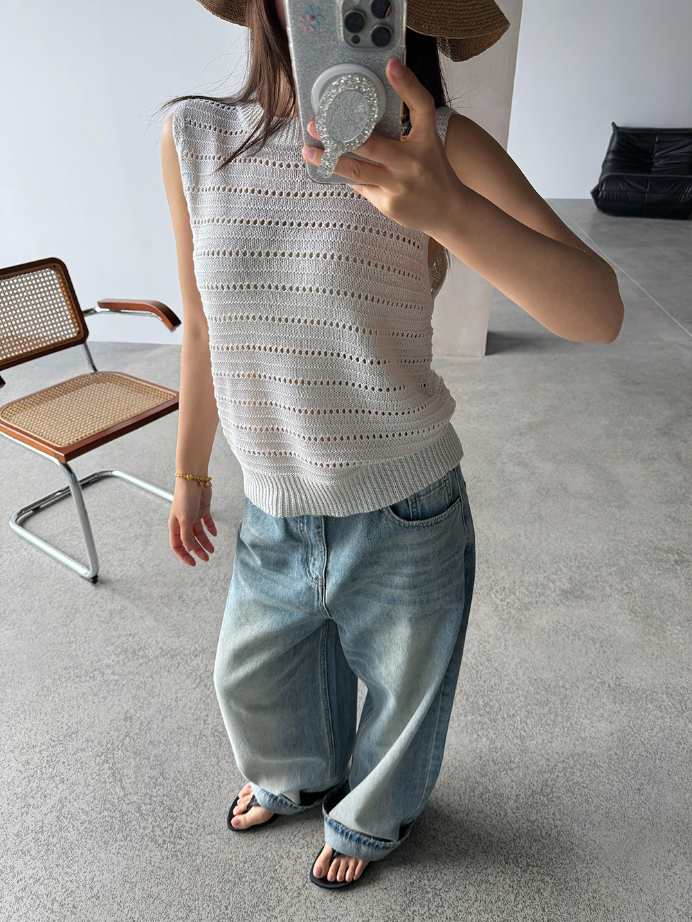 【王琪芝】极简休闲风无袖针织衫女春夏镂空感设计叠穿背心WQ193