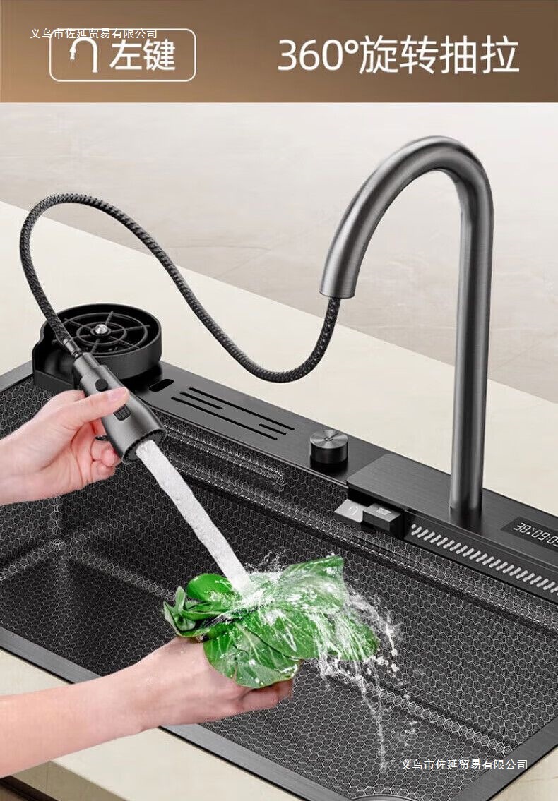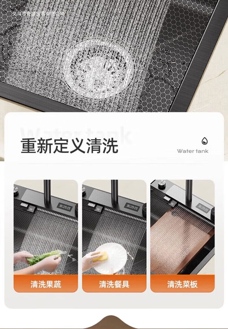净誉厨房水槽超厚5.0不锈钢大单槽鲨鱼数显带刀架洗菜盆全套整套