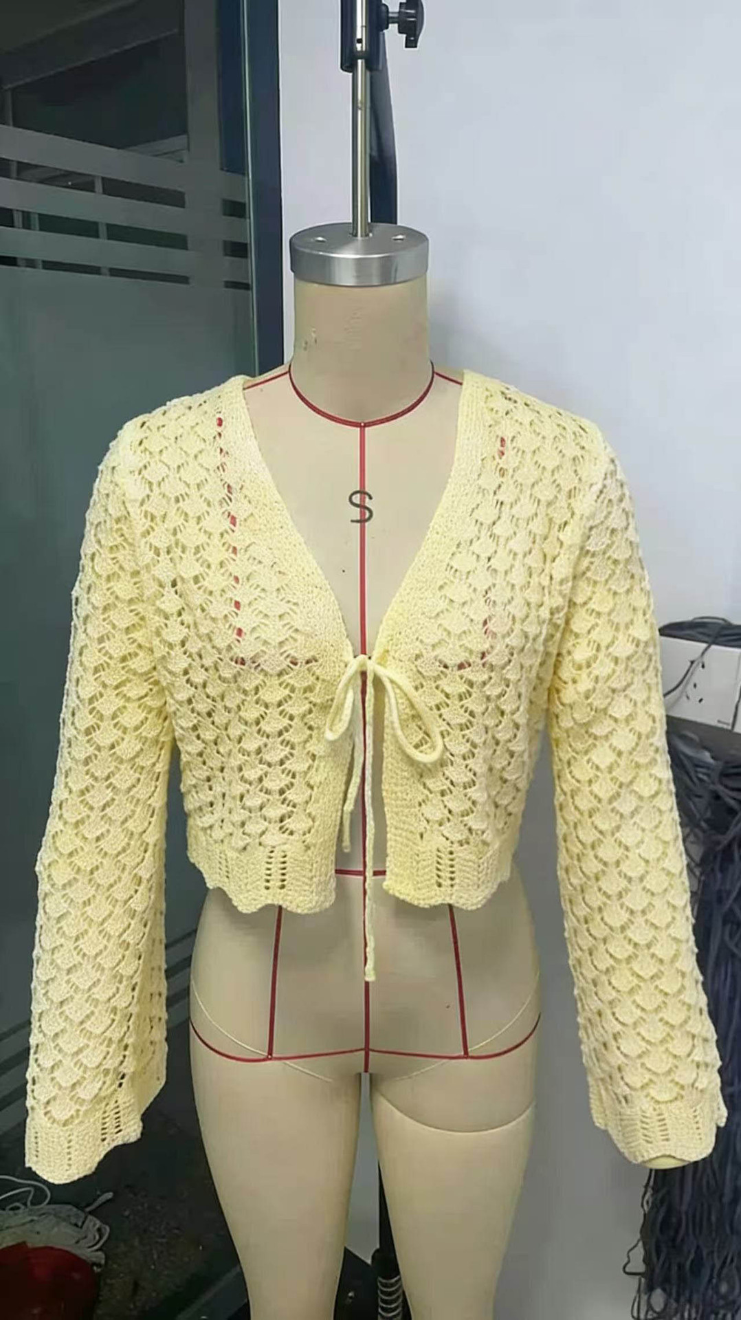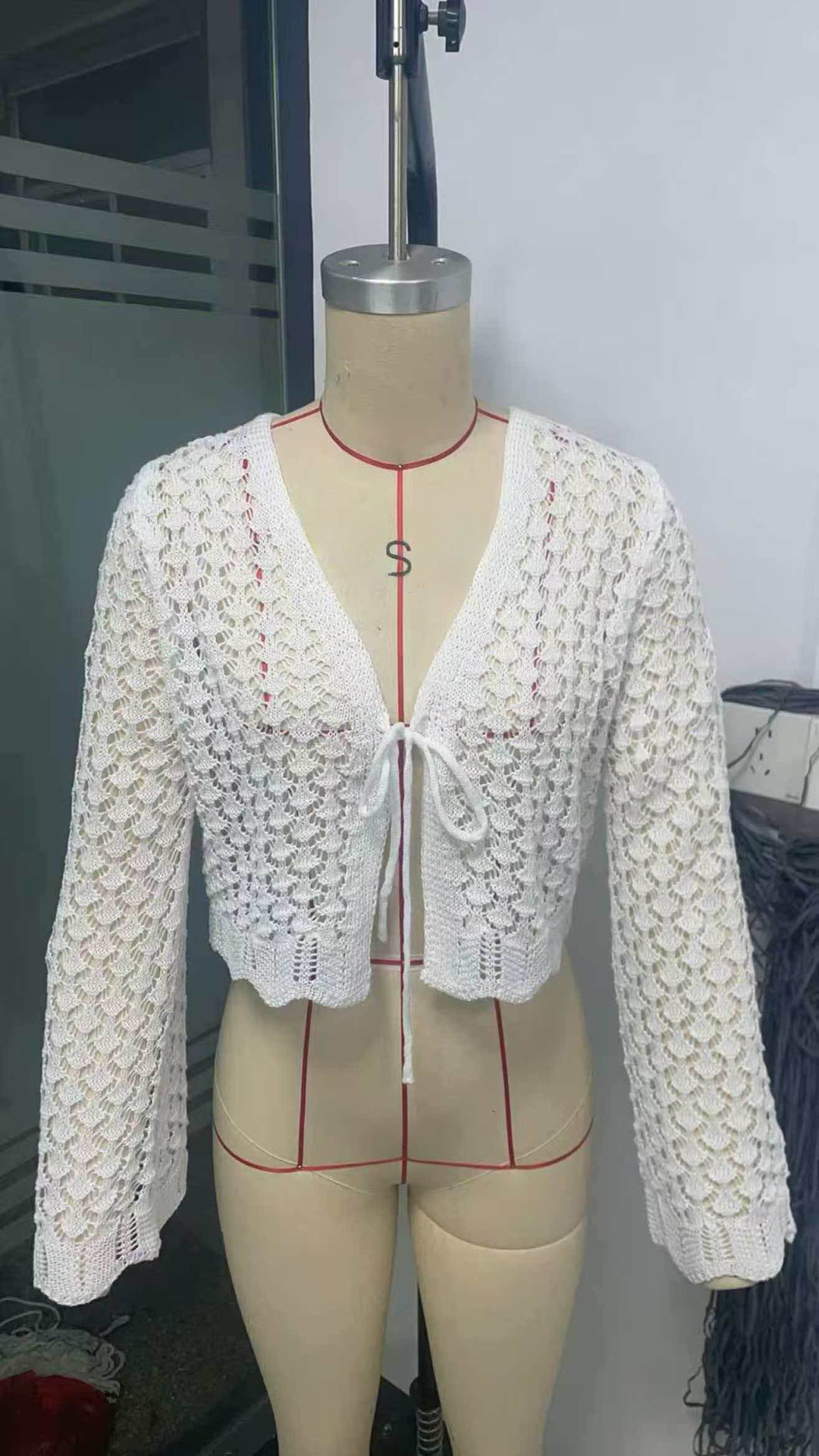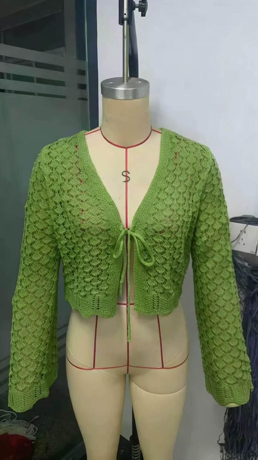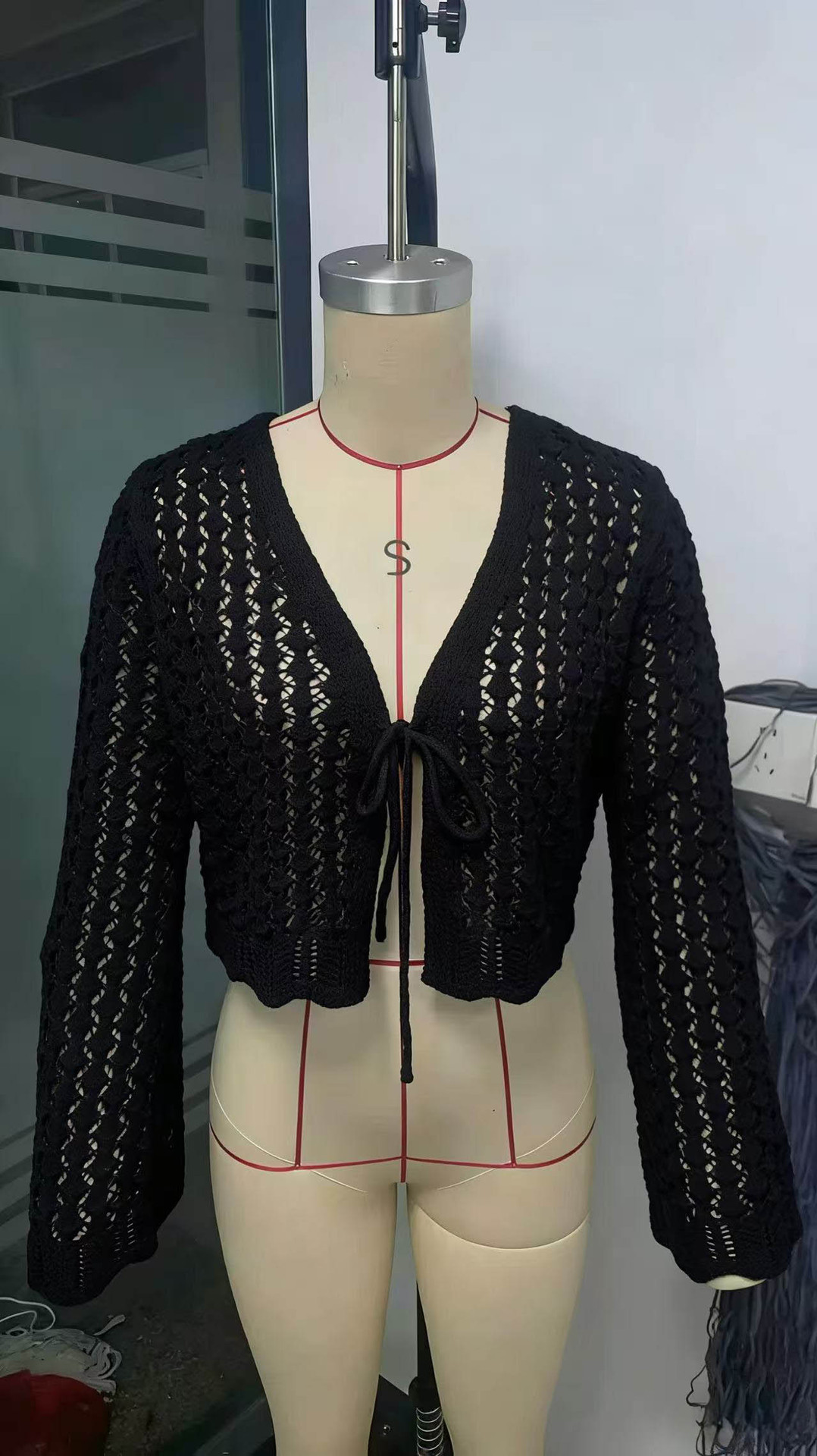2026亚马逊速卖通镂空绑带V领喇叭袖短款防晒针织开衫南油原创,批发价,价格:35,厂家直销,2026亚马逊速卖通镂空绑带V领喇叭袖短款防晒针织开衫南油原创,免费拿样。