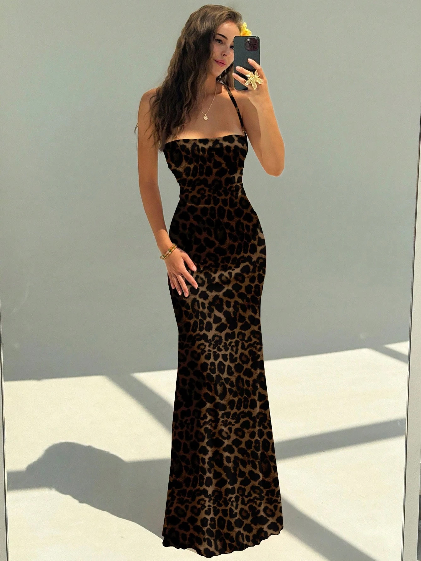 跨境亚马逊热卖欧美吊带抹胸性感露背豹纹连衣裙2026夏新款辣妹修