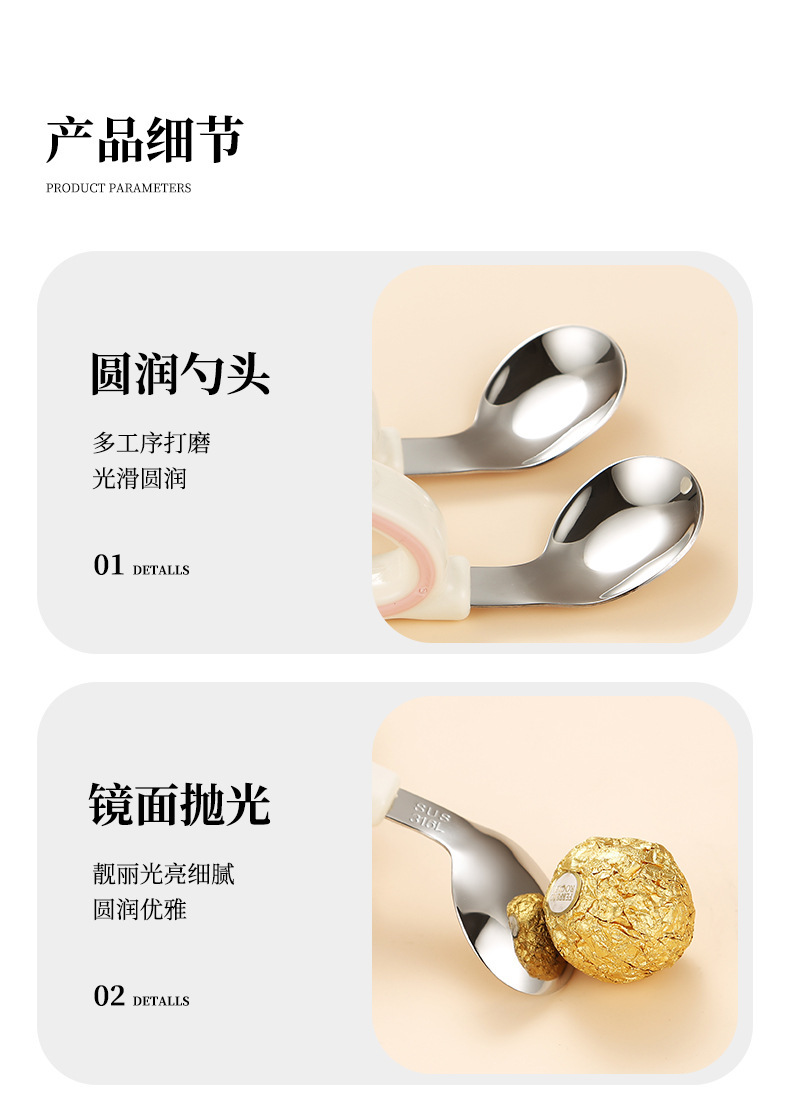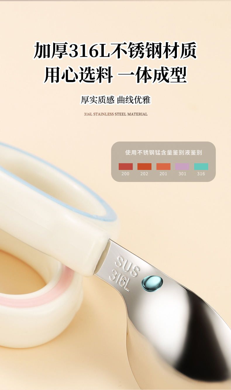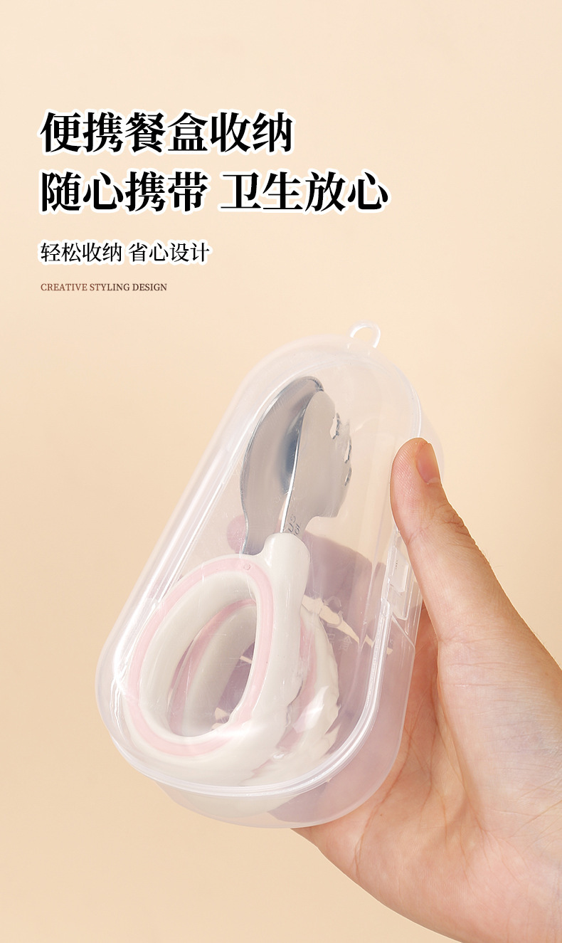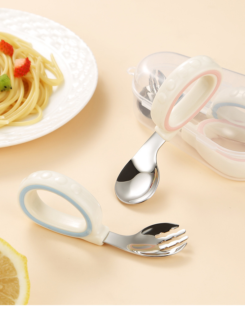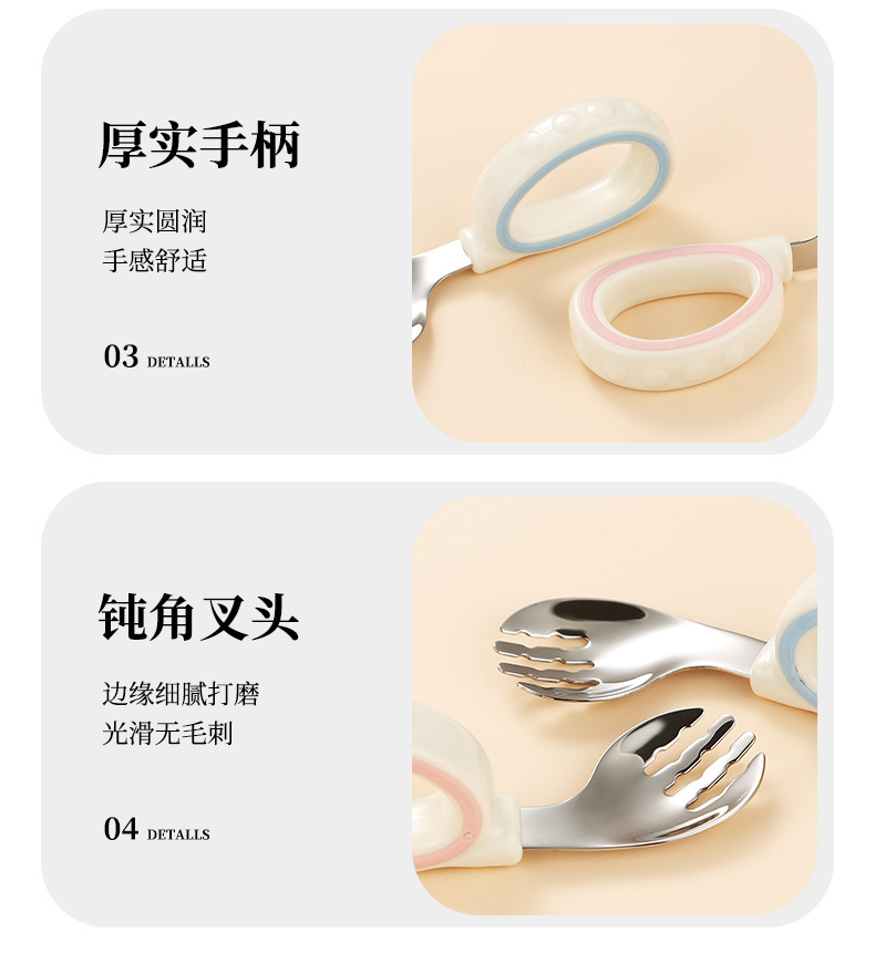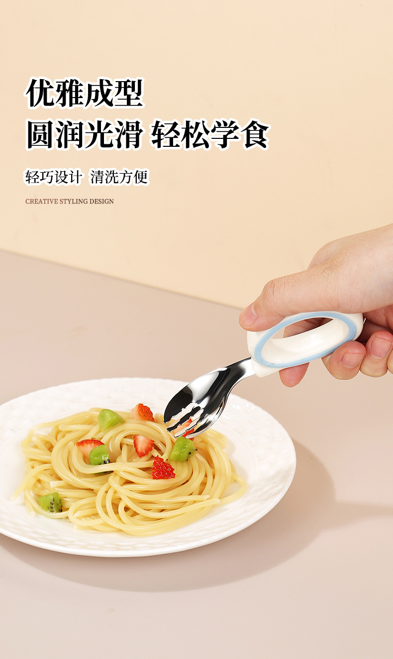 316L不锈钢儿童勺子叉子创意环柄宝宝辅食勺叉婴儿学吃饭训练餐具
