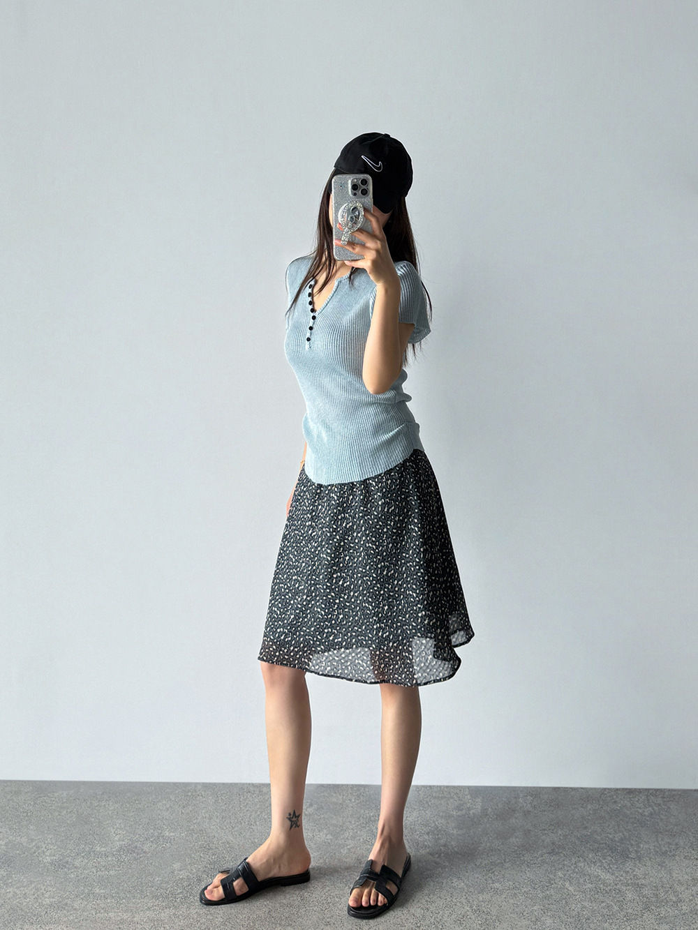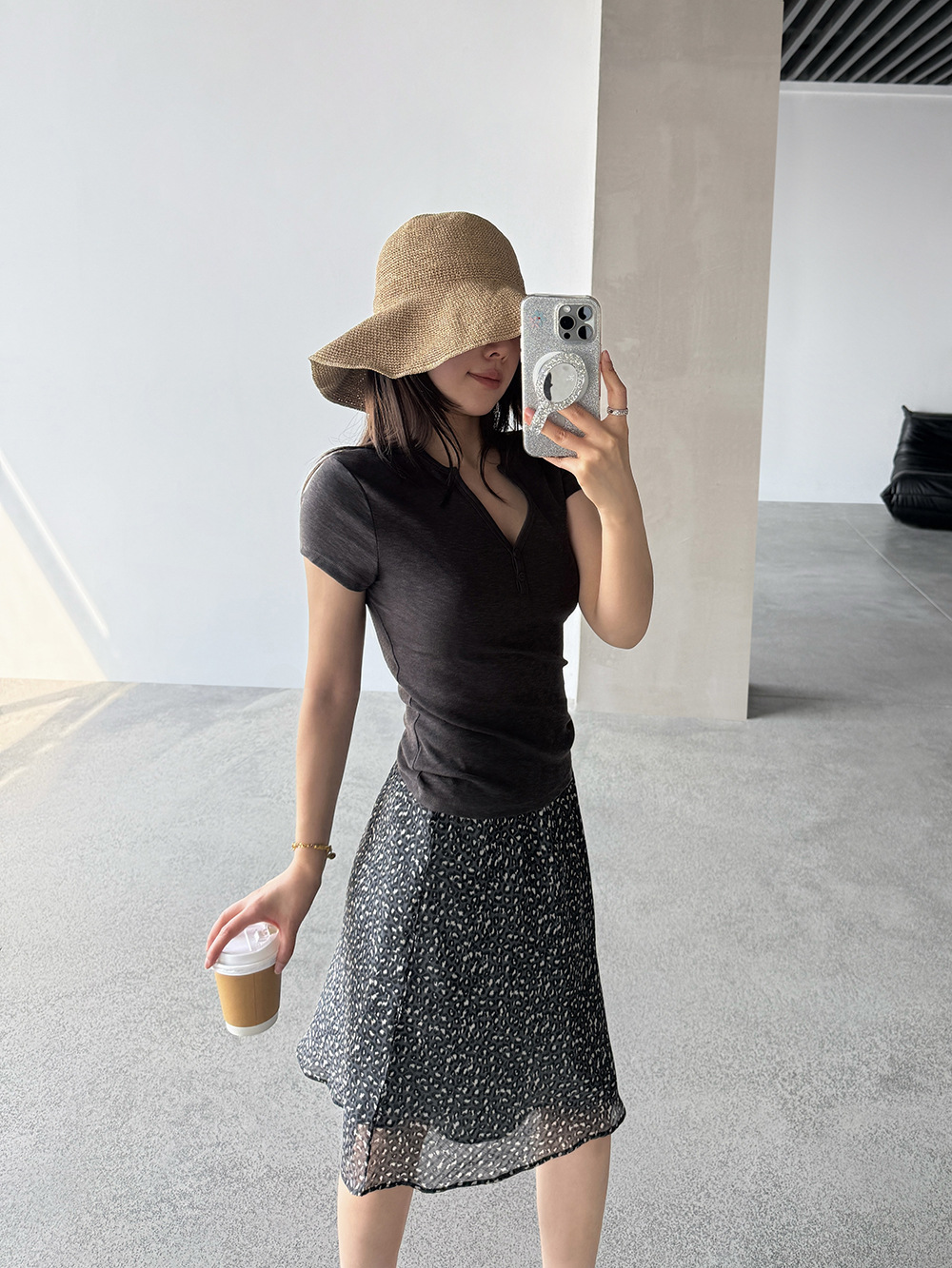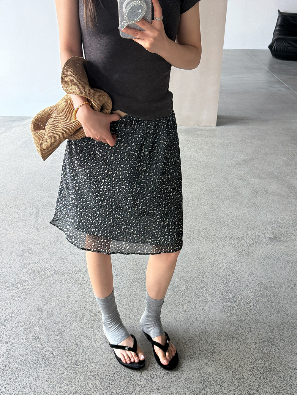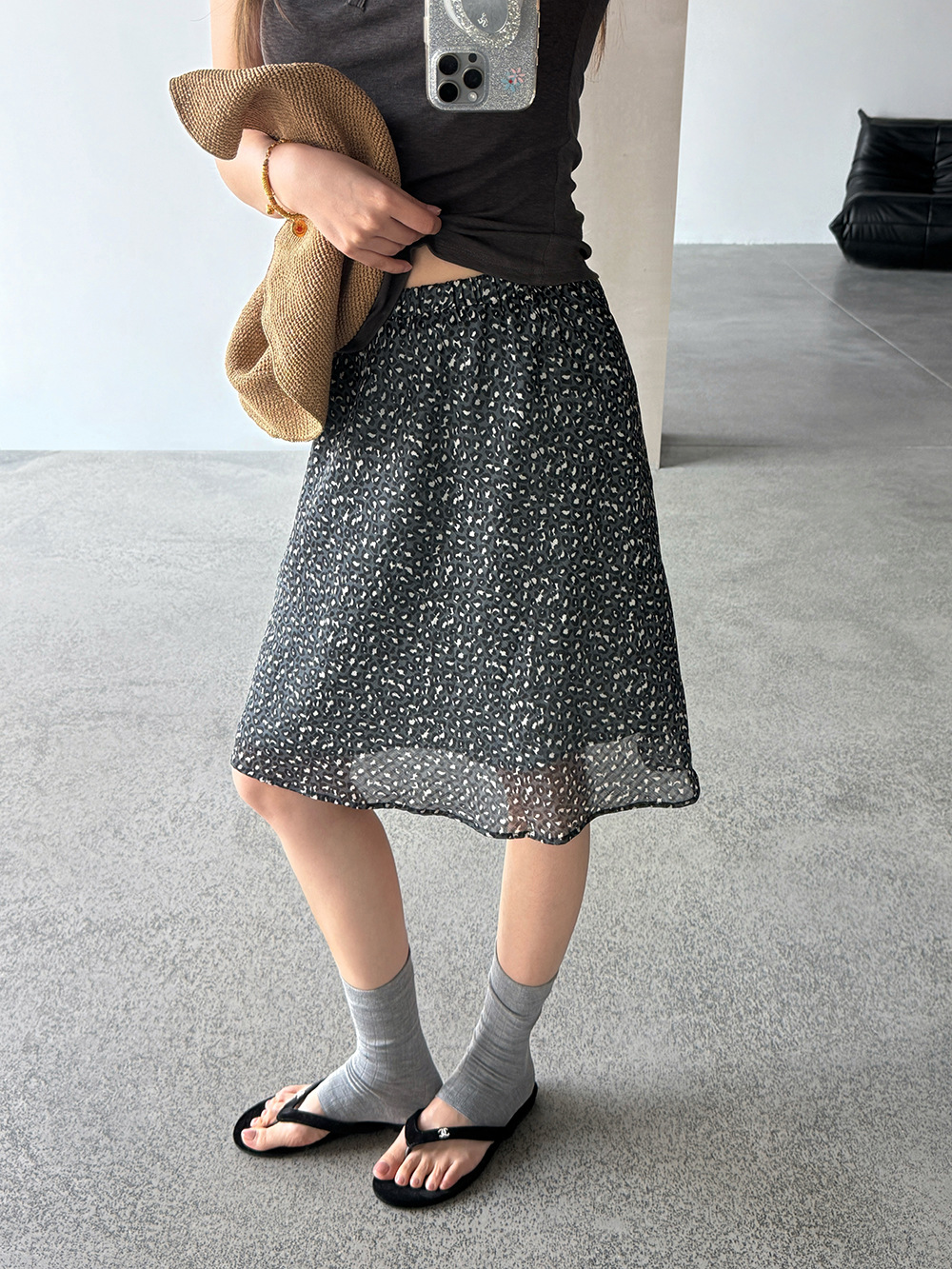 【王琪芝】韩系复古松紧腰网纱豹纹半身裙女春夏宽松中长裙WQ211