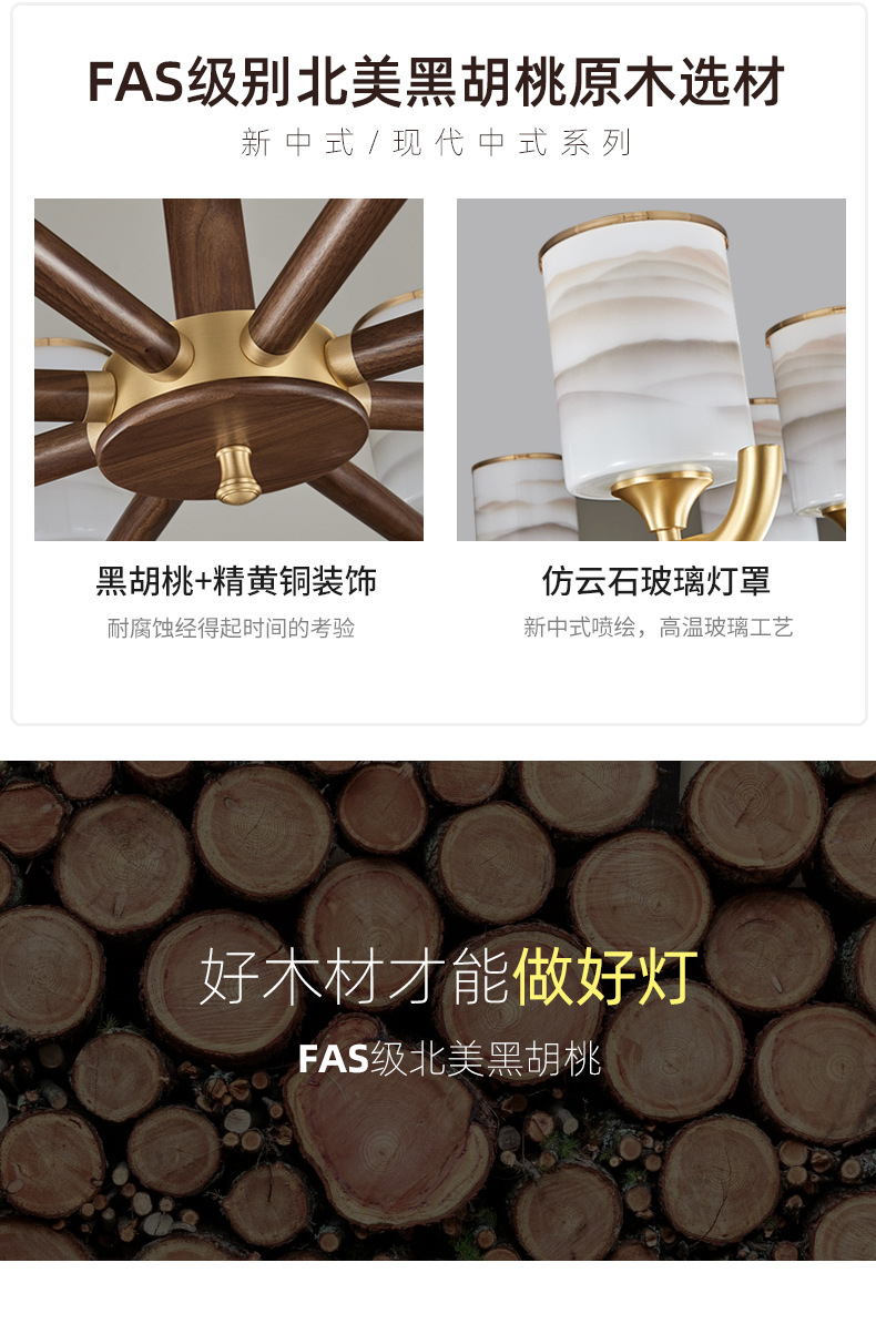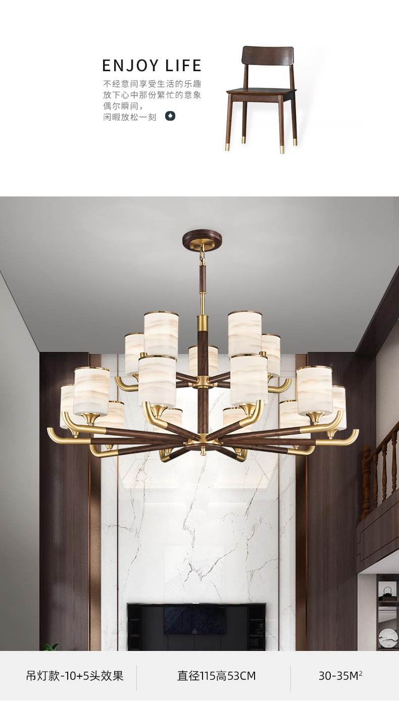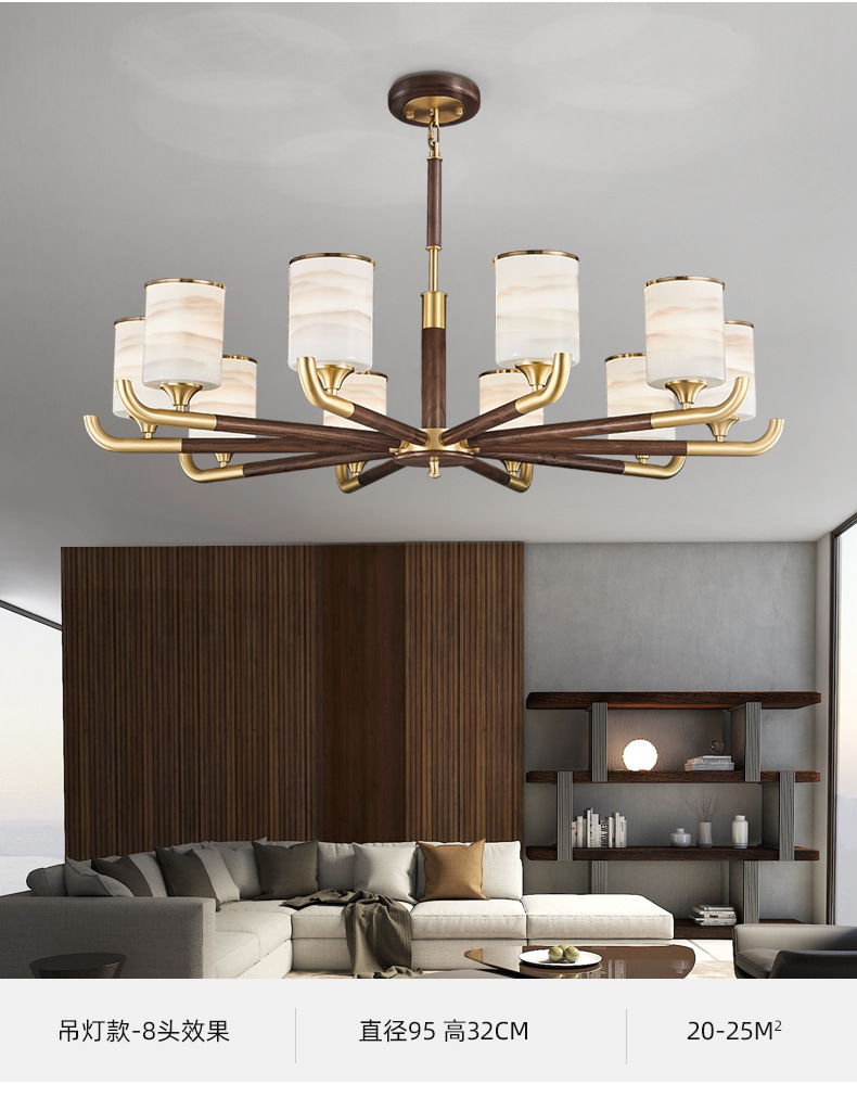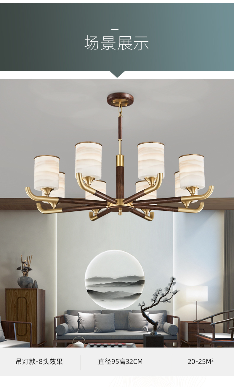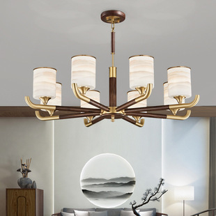 新中式吊灯具中国风木纹客厅灯led全铜仿古简约现代餐厅灯别墅灯