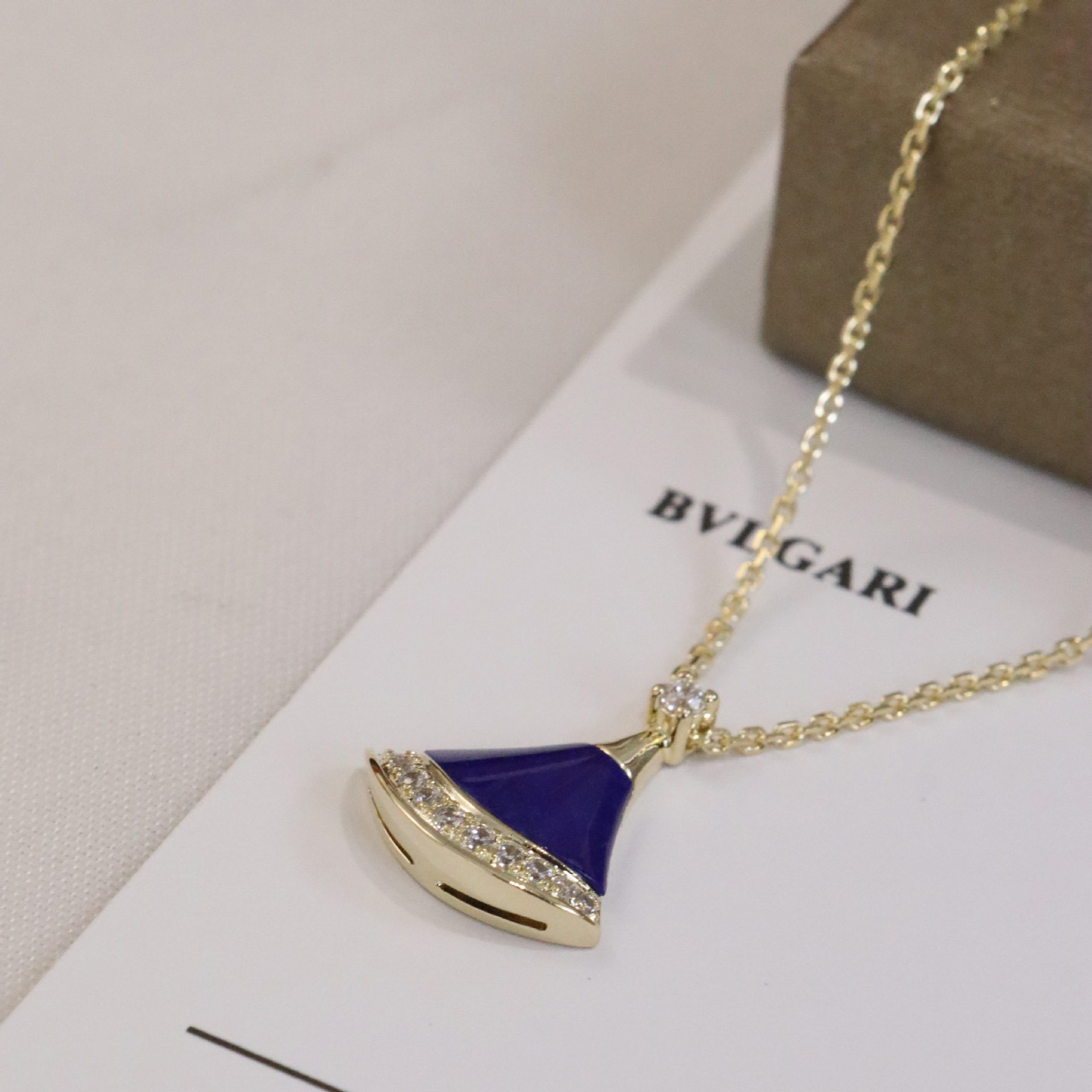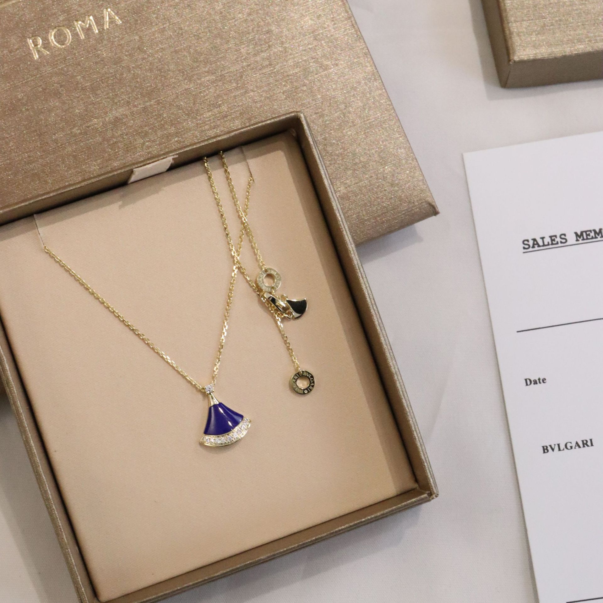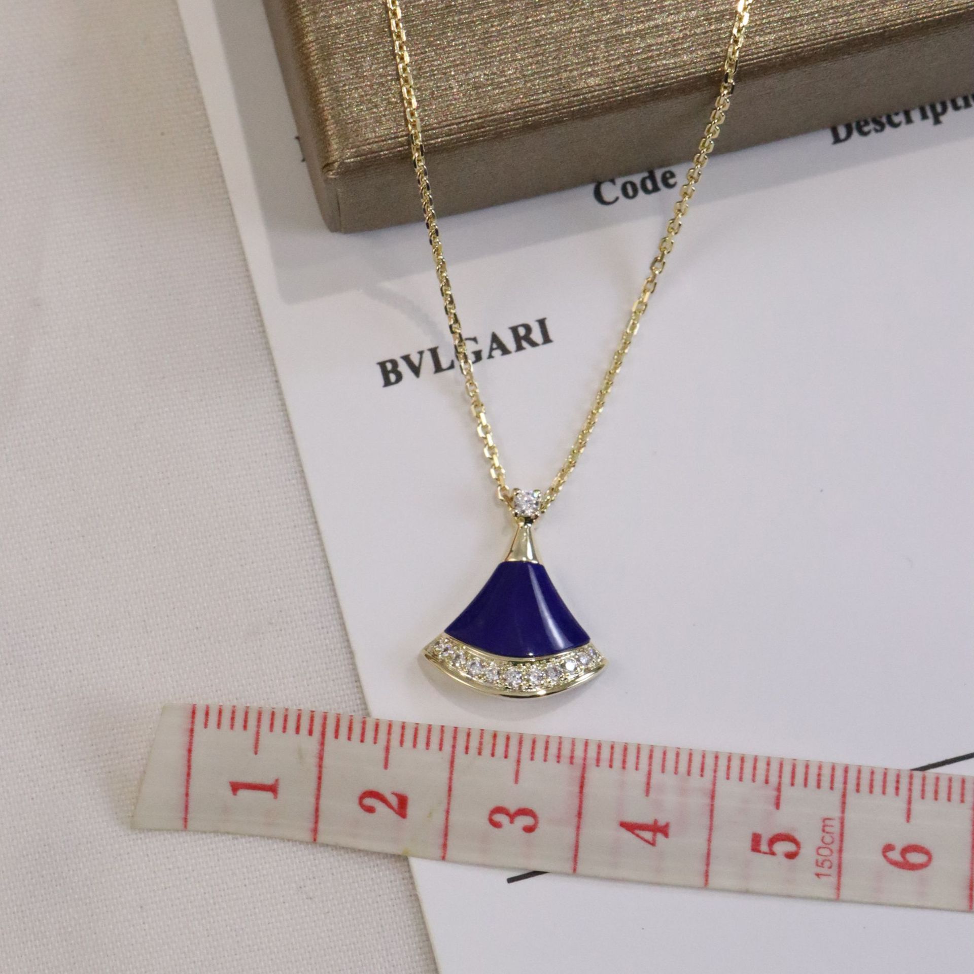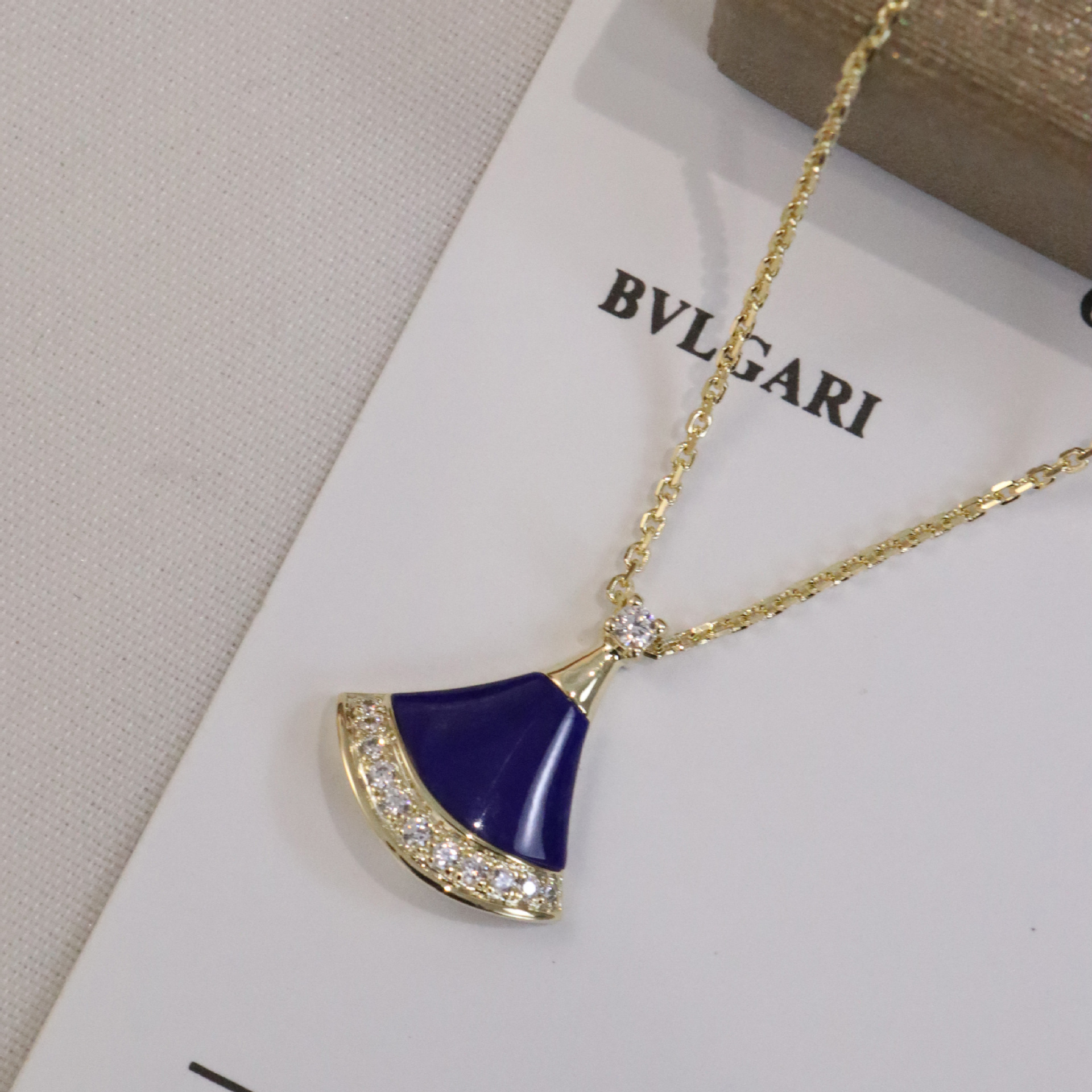 正确版新款蓝色小裙子项链女s925银镀18k玫瑰金蓝宝石扇子项链女