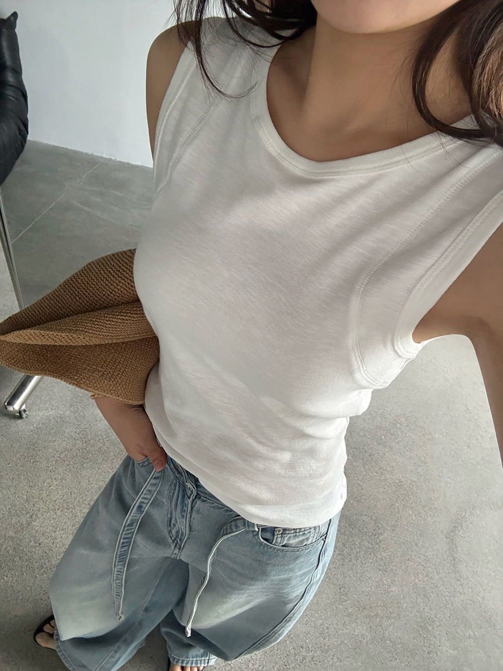 【王琪芝】基础款四季可搭打底背心女春简约圆领无袖t恤外穿WQ220