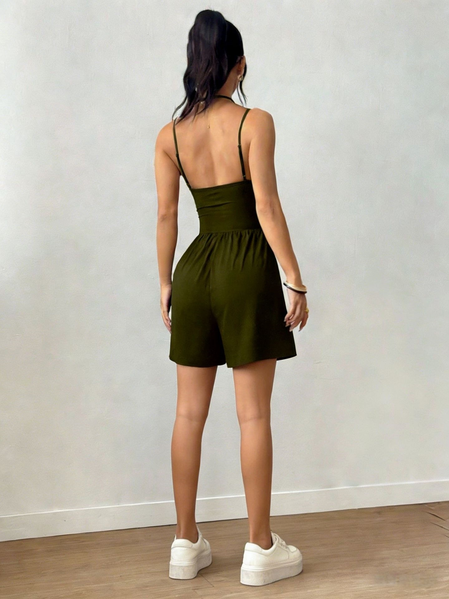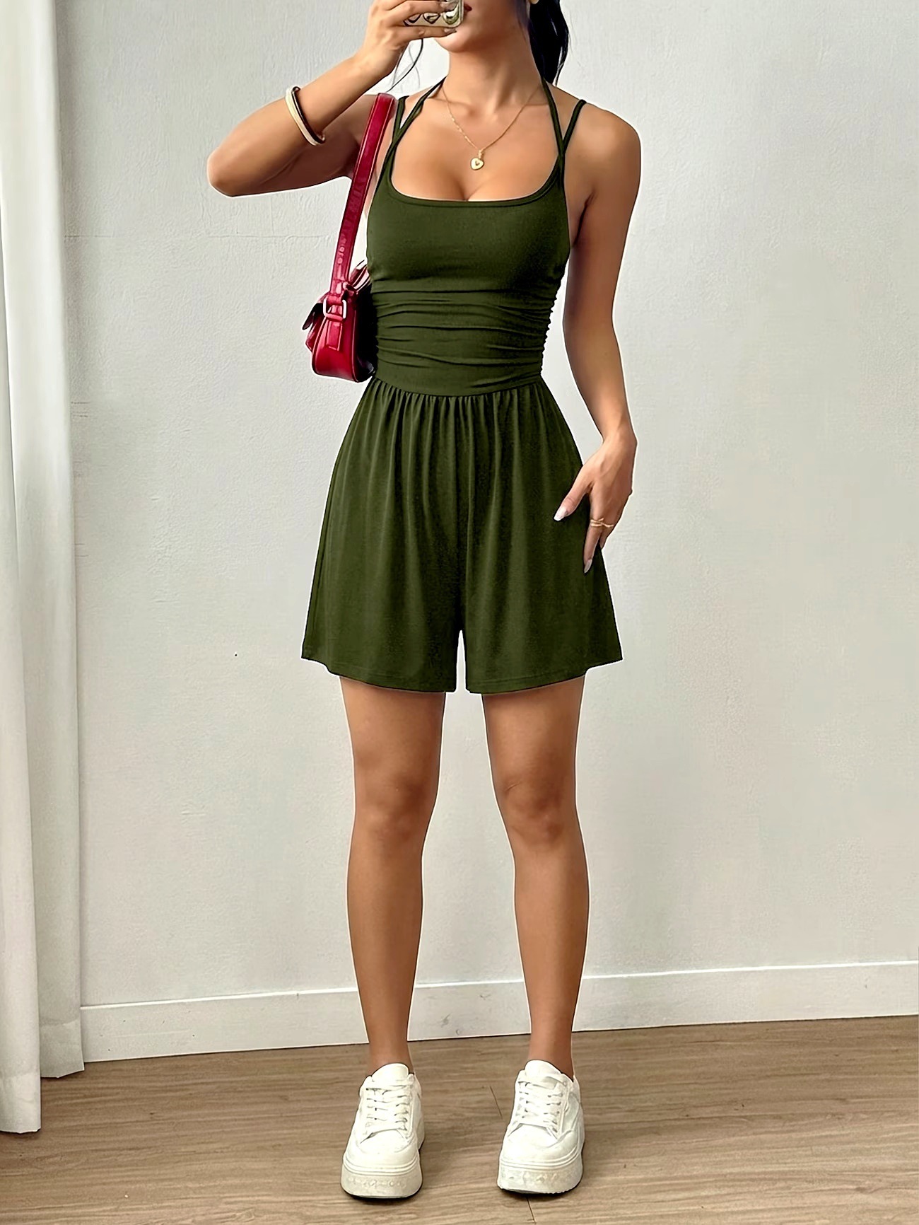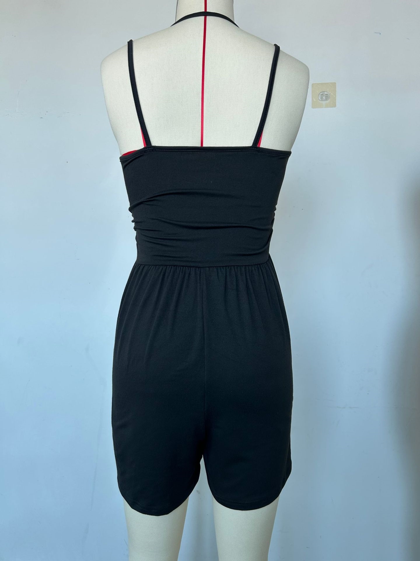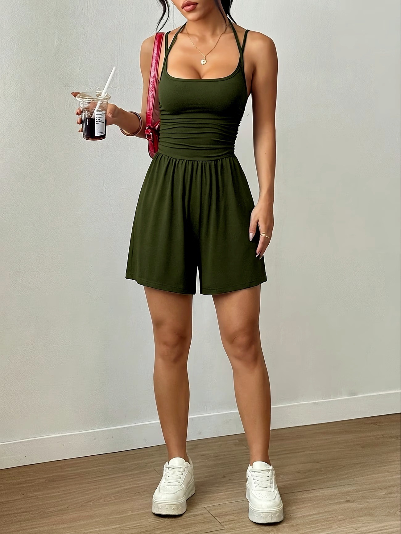 亚马逊2026夏季新款吊带女装纯色透气休闲裹胸连体裤短裤阔腿宽松