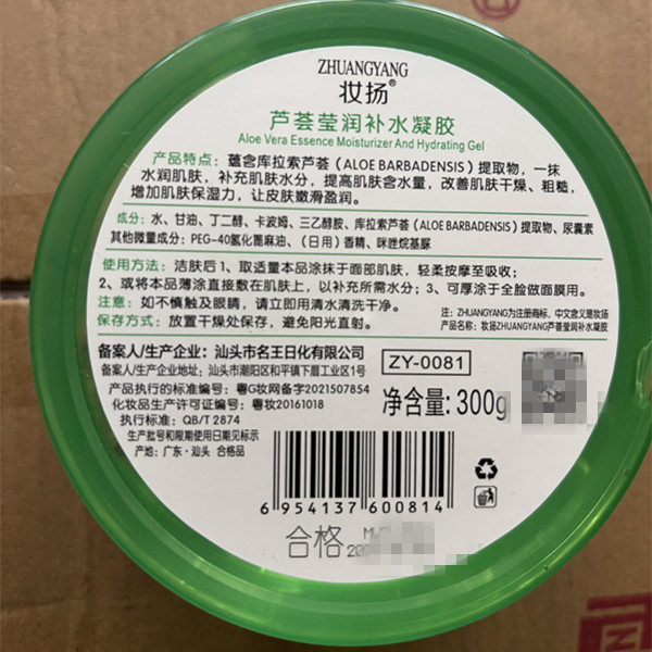 正品妆扬库拉索芦荟胶晒后补水保湿滋润芦荟凝胶面霜护肤品批发