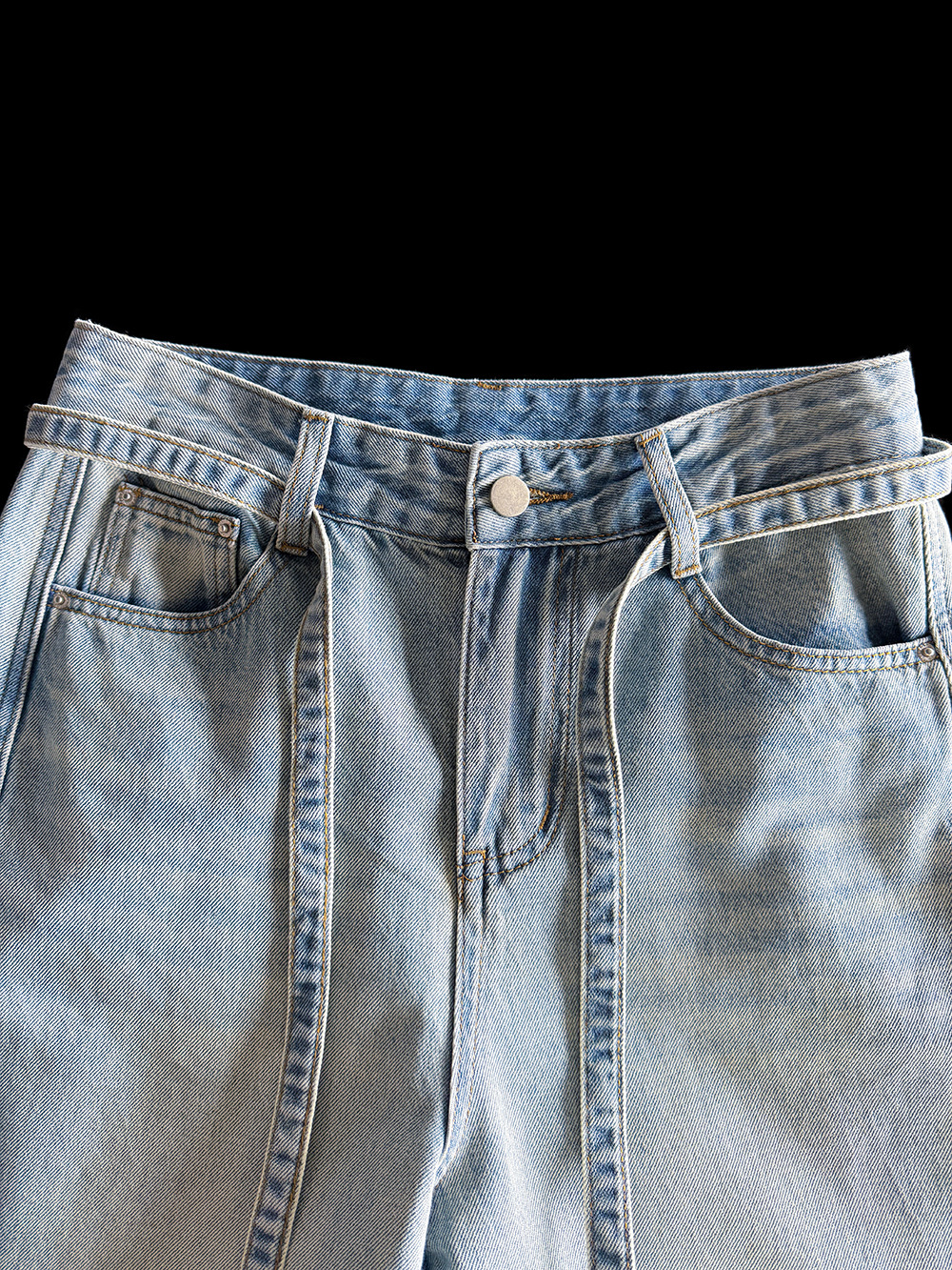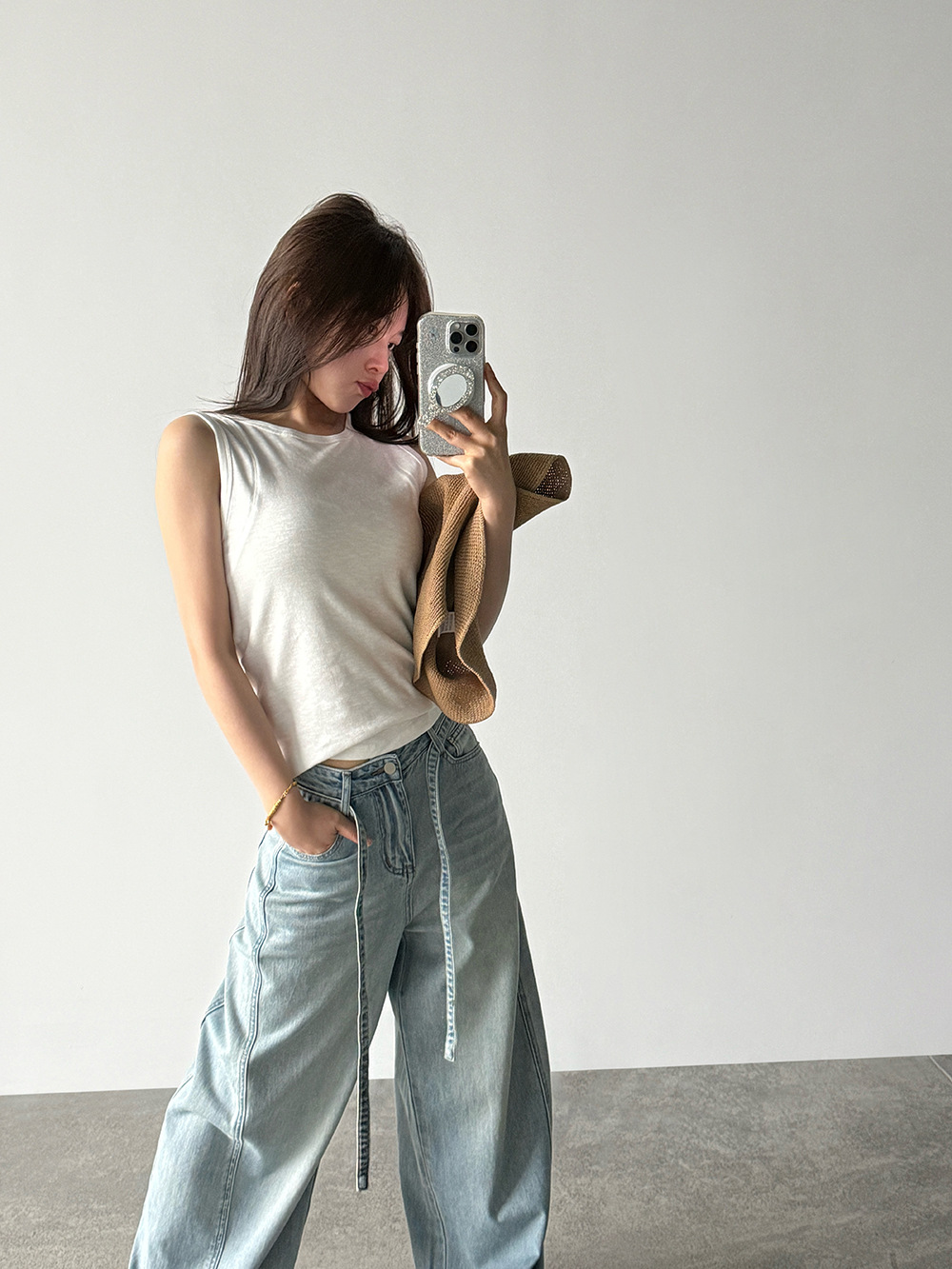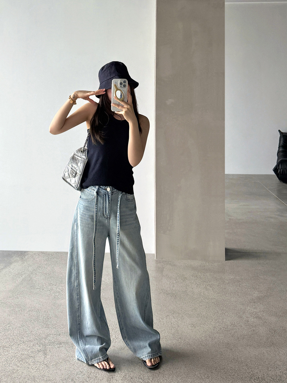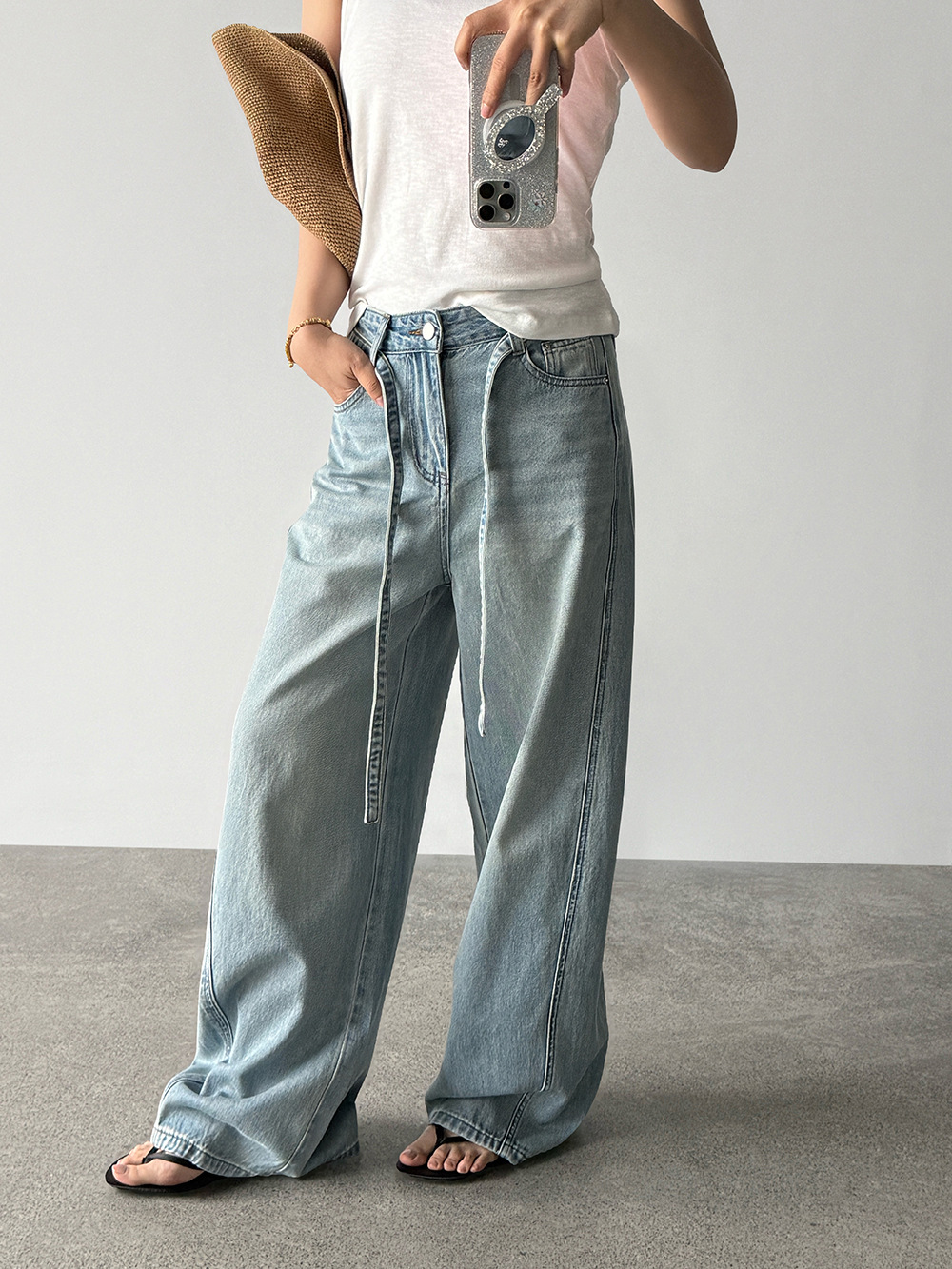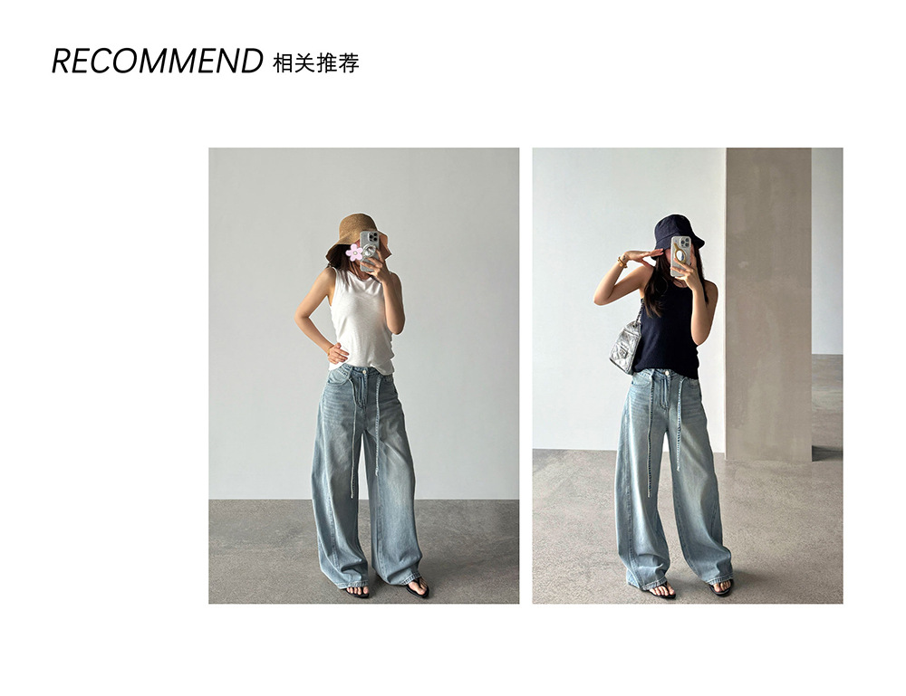【王琪芝】软牛仔高腰阔腿裤女春夏腰绳宽松显瘦复古休闲裤WQ218