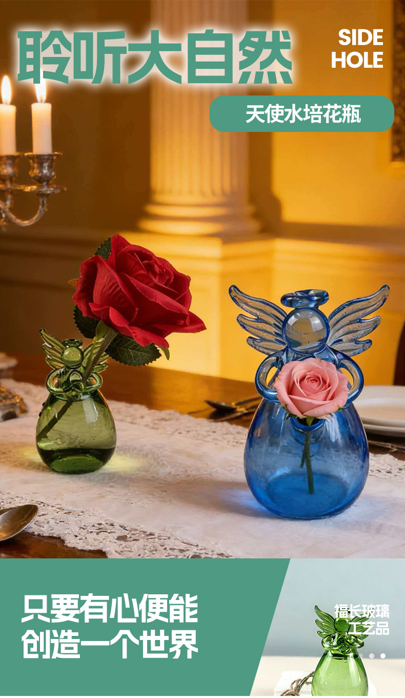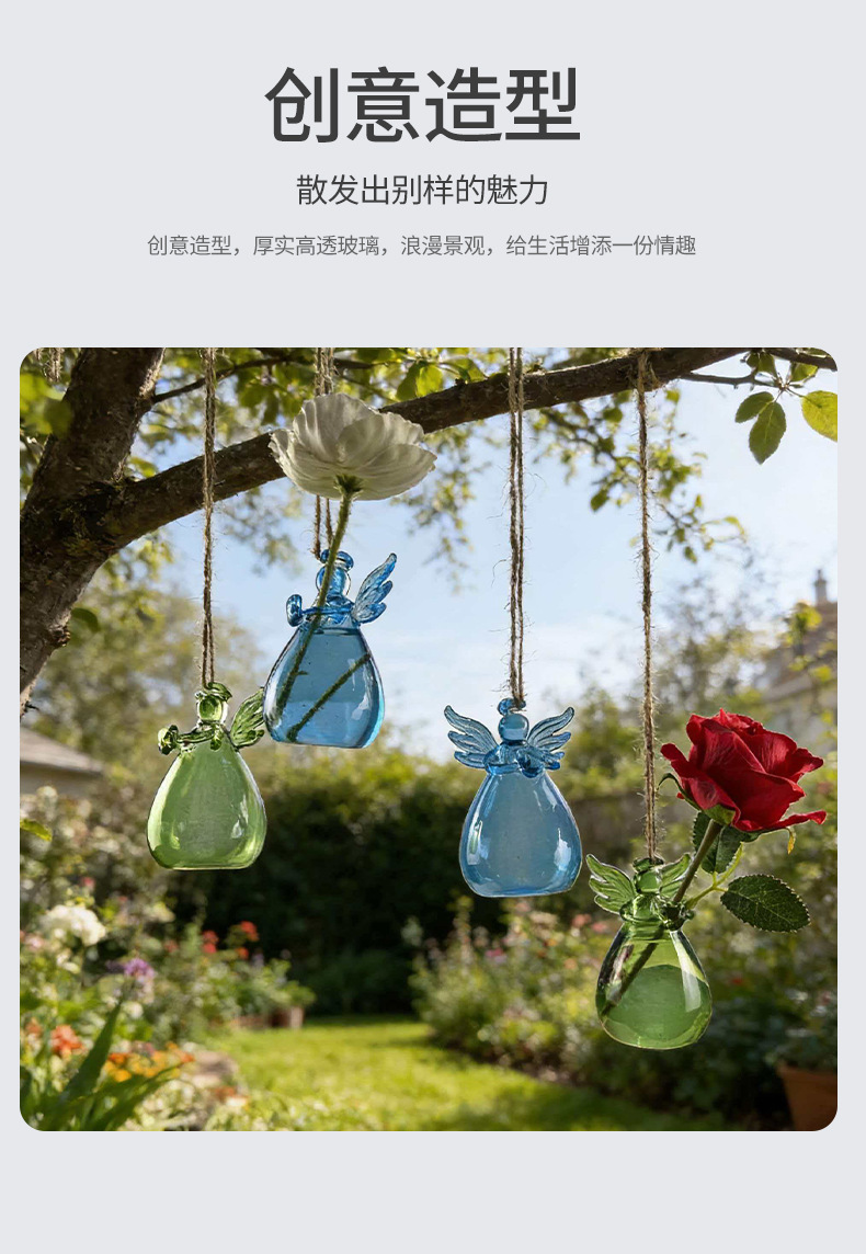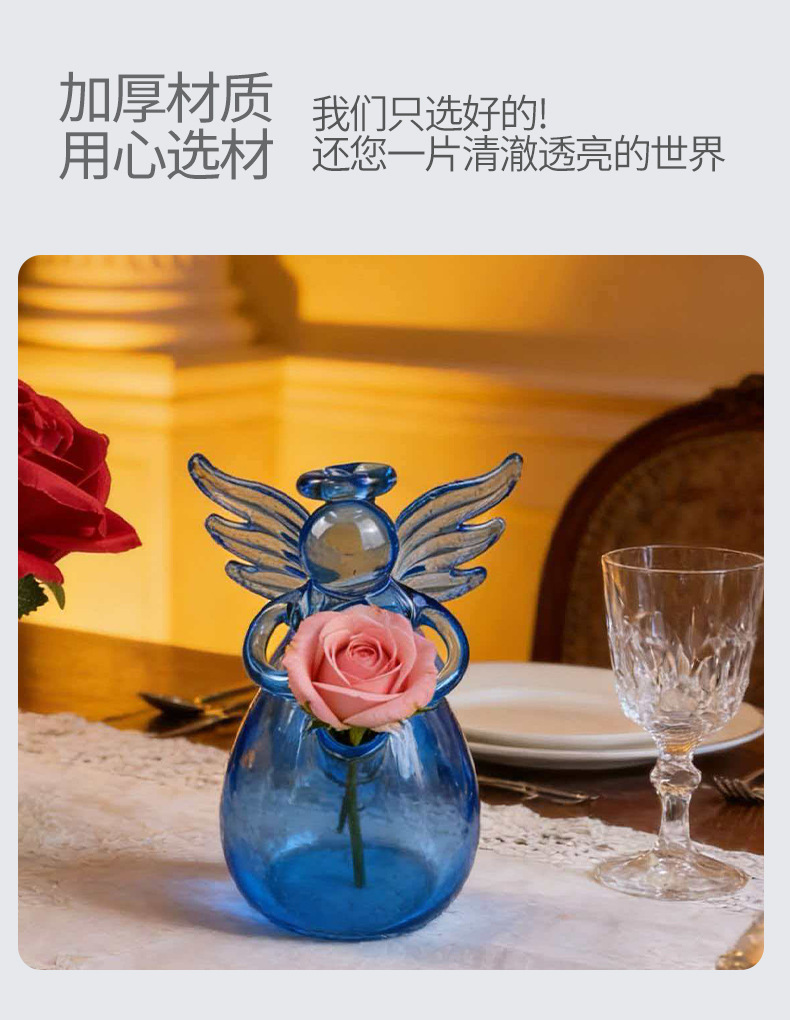 创意天使水培花瓶彩色透明玻璃水培花瓶家居装饰特色玻璃瓶摆件