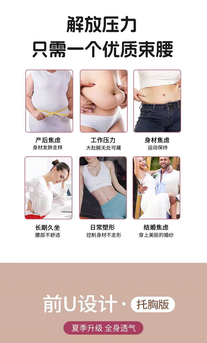 夏季薄款束腰带女收腹塑形显腰线前U托胸透气收腰塑型腰封