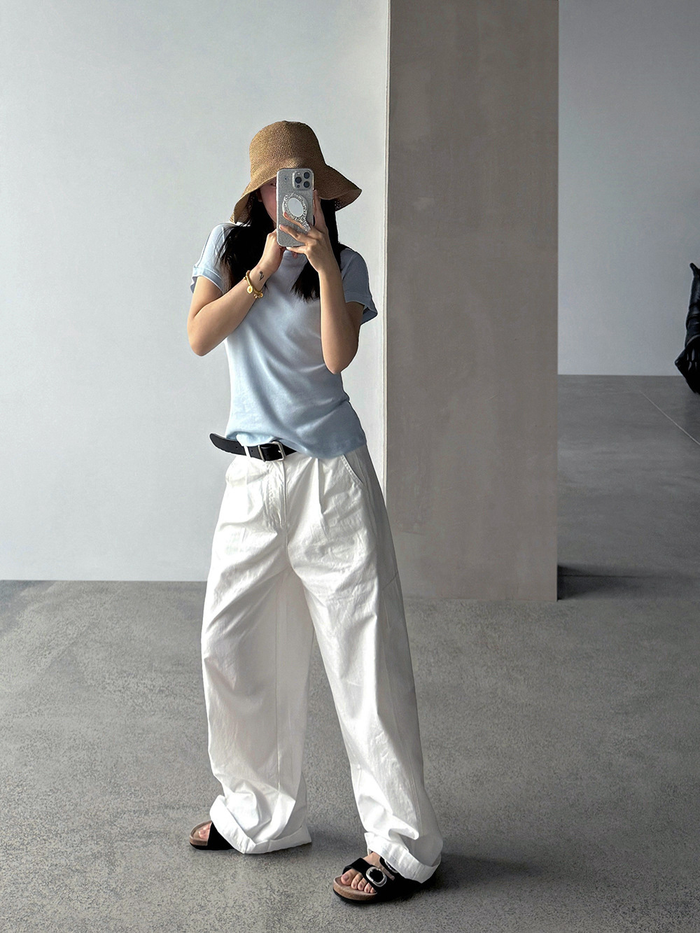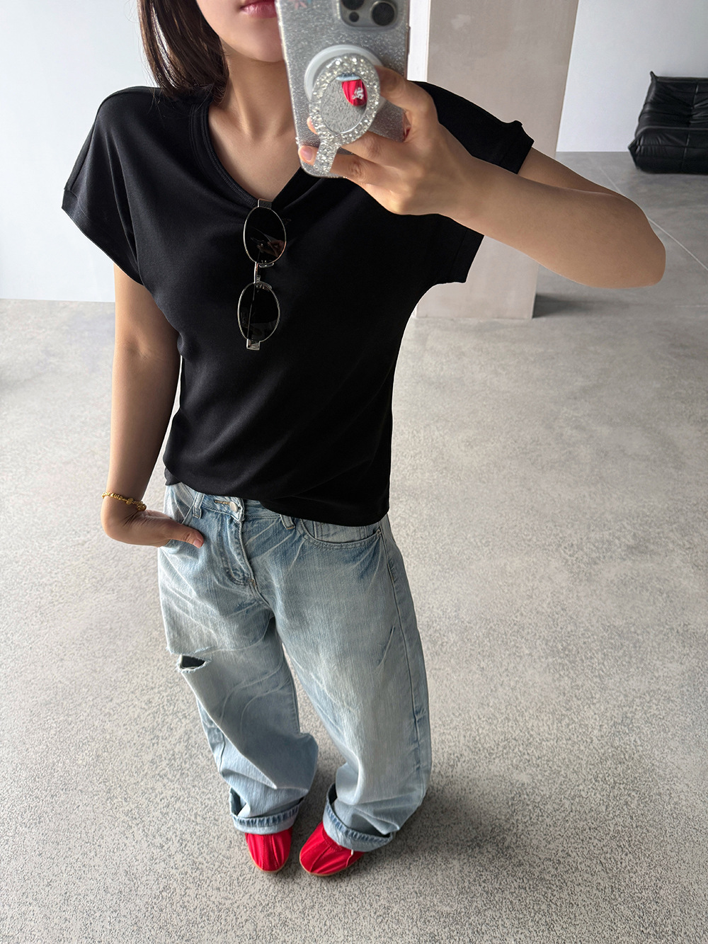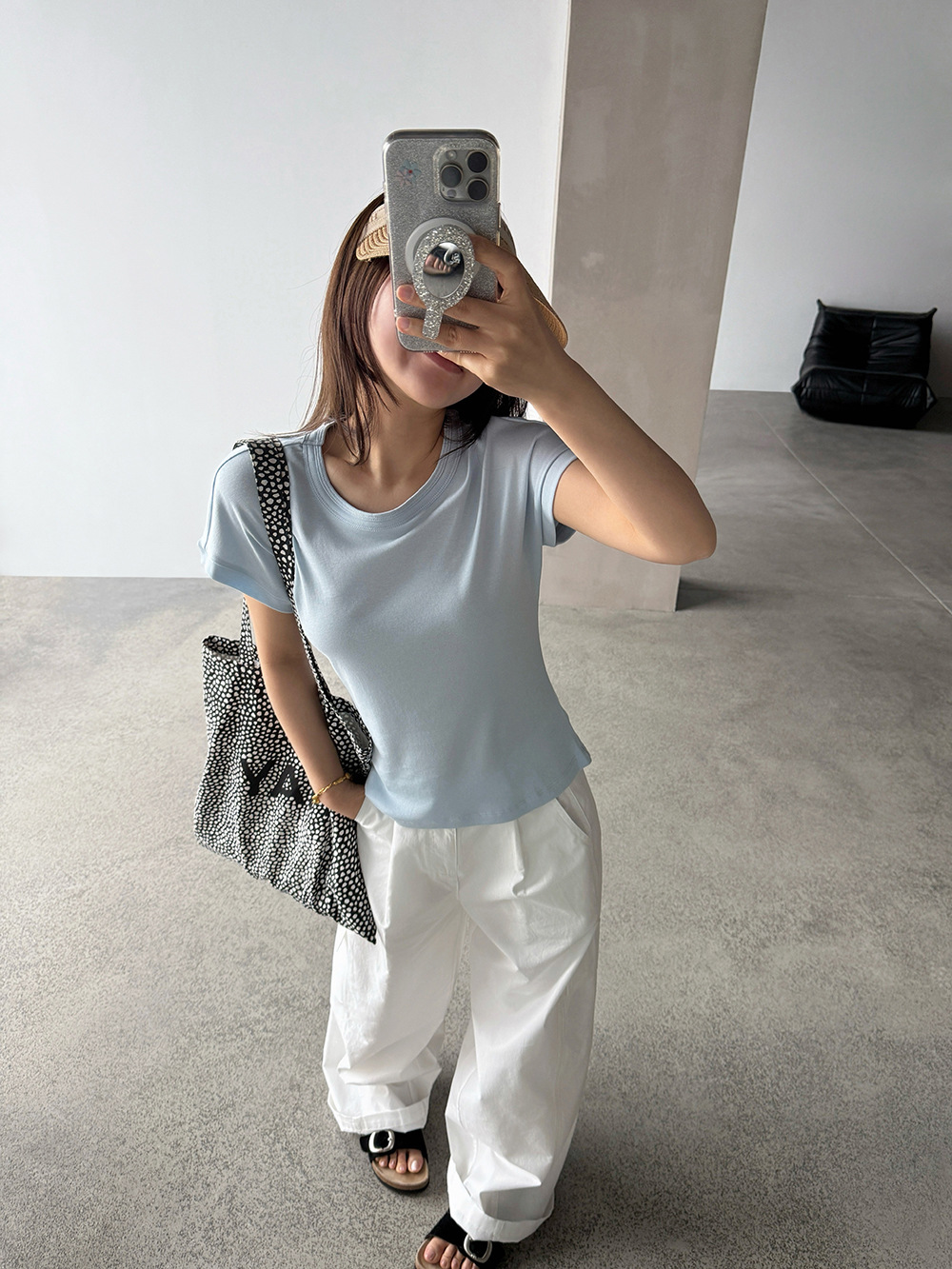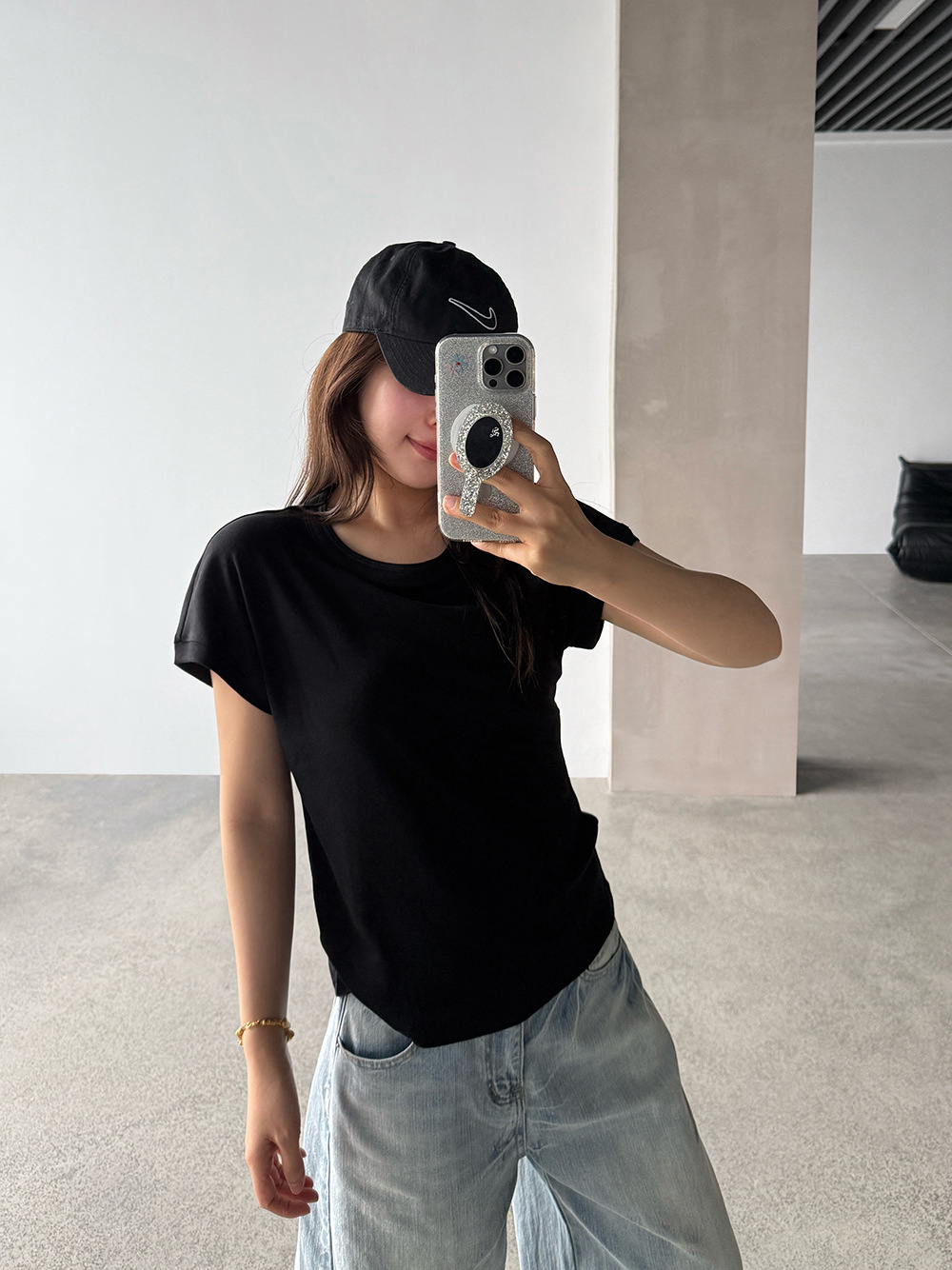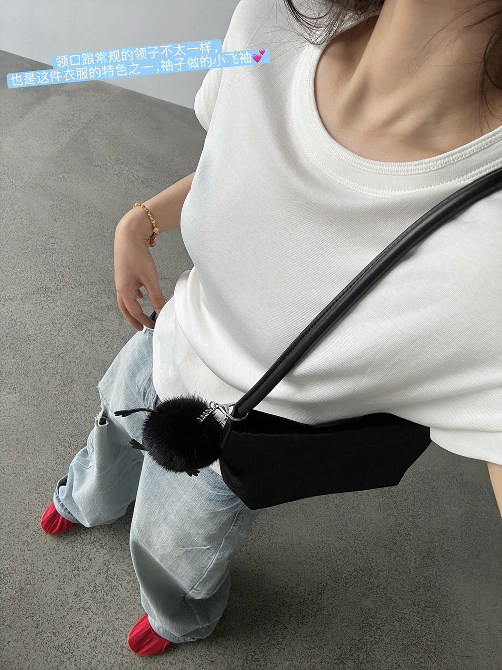 【王琪芝】小飞袖冰凉感圆领短袖t恤女打底内搭落肩修身上衣WQ223