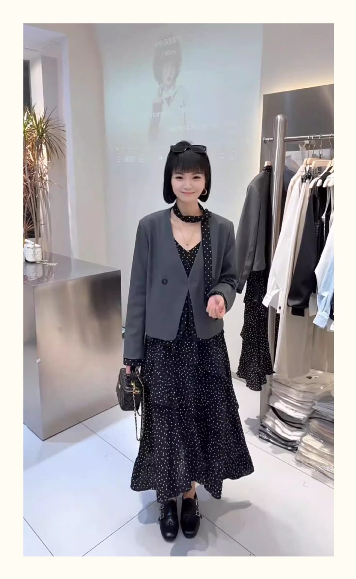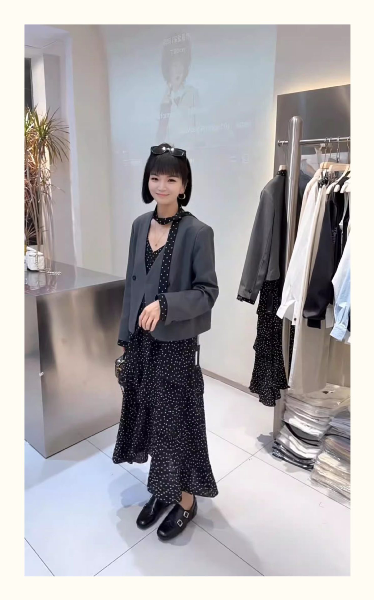 欧货波点飘带V领撞色拼接西装外套女2026春秋新款设计感西服上衣