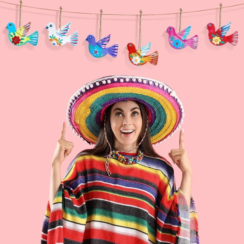 跨境新品12件墨西哥风格彩色鸟装饰挂件 五五节派装饰品,批发价,价格:4.2,厂家直销,跨境新品12件墨西哥风格彩色鸟装饰挂件 五五节派装饰品,免费拿样。