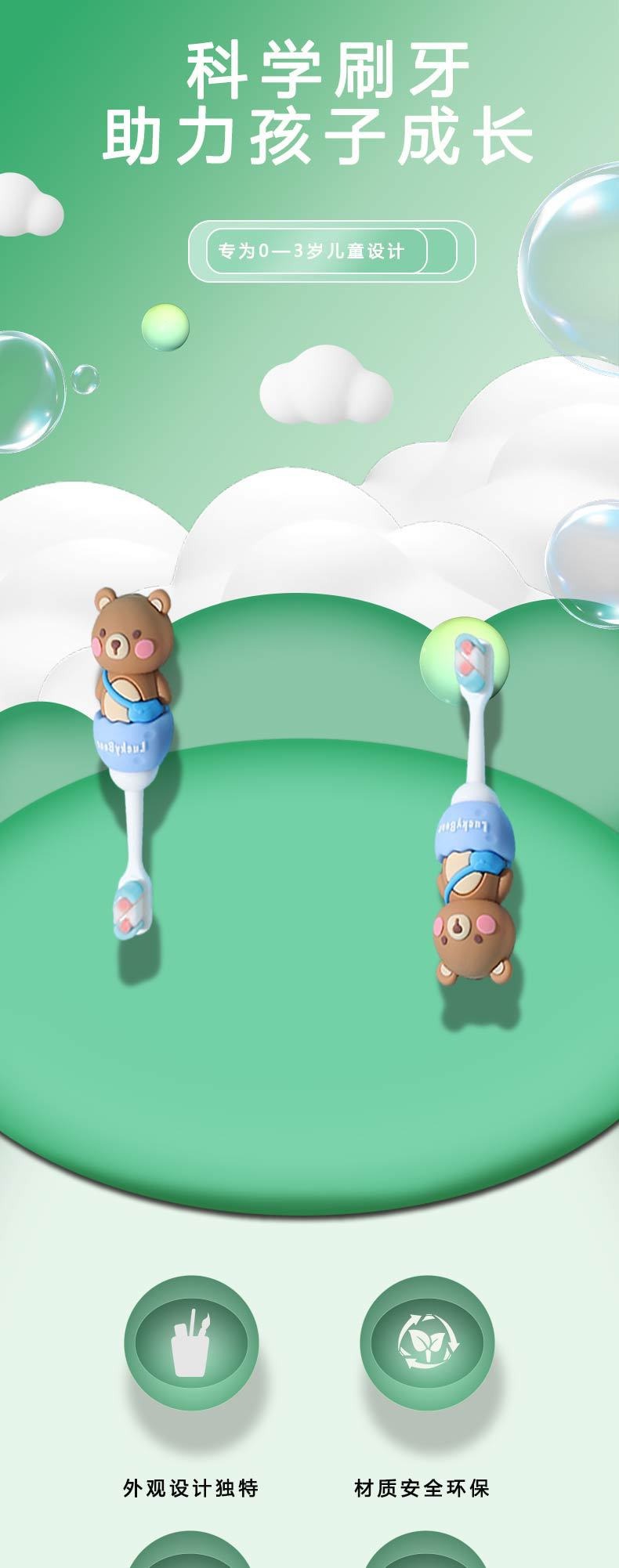 儿童软毛牙刷超软细毛3~6岁宝宝儿童清洁牙刷卡通熊短款软毛牙刷