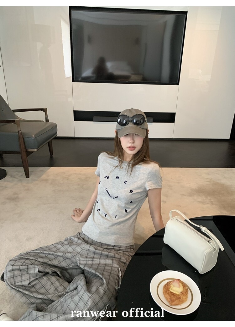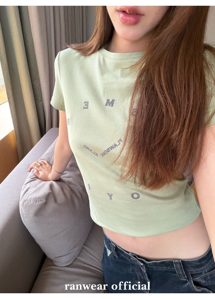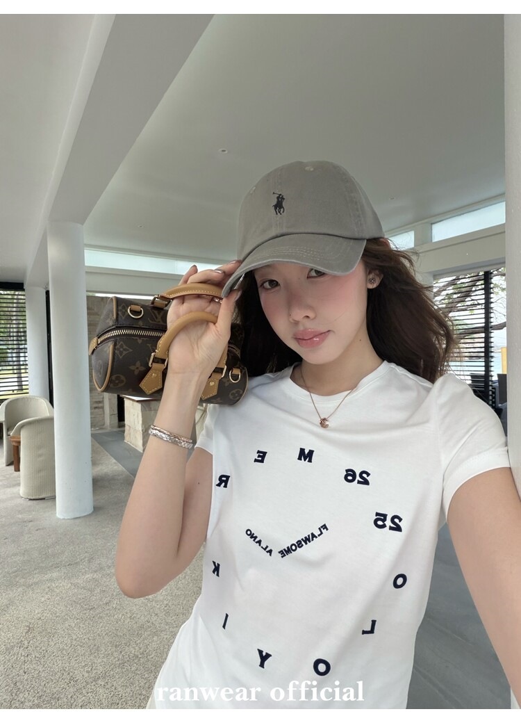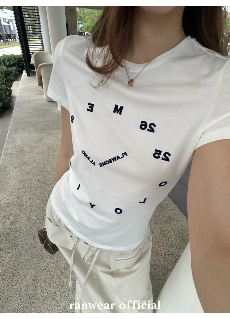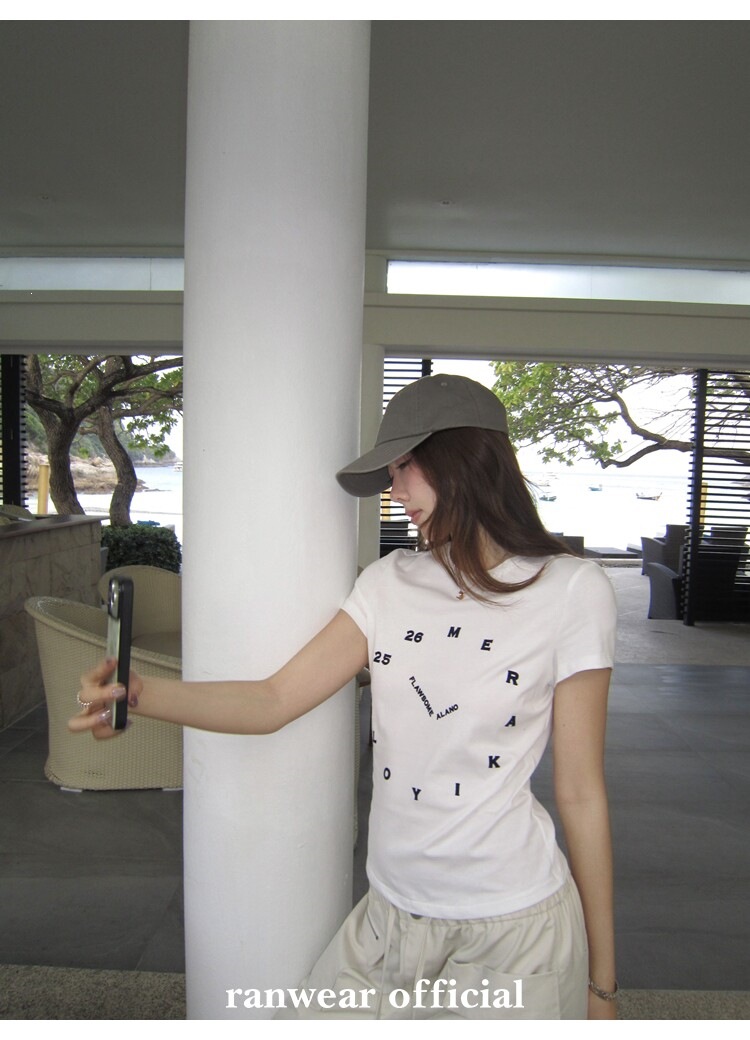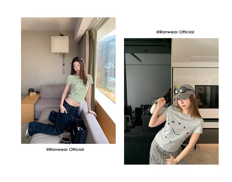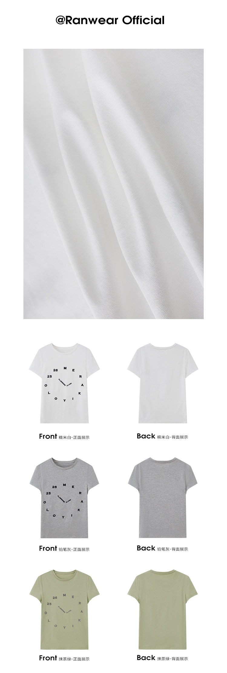 Ranwear'私服t'百搭圆领休闲字母印花修身显身材短短袖T恤